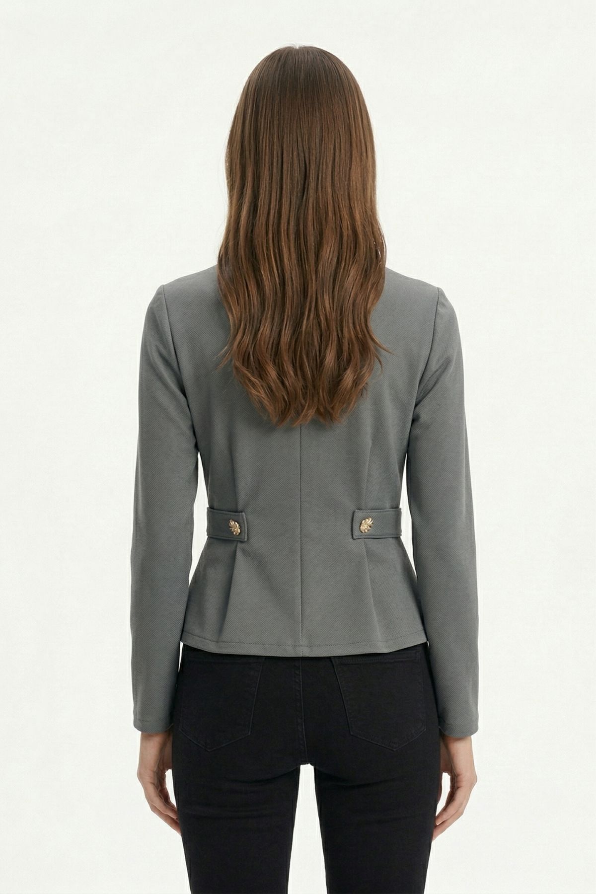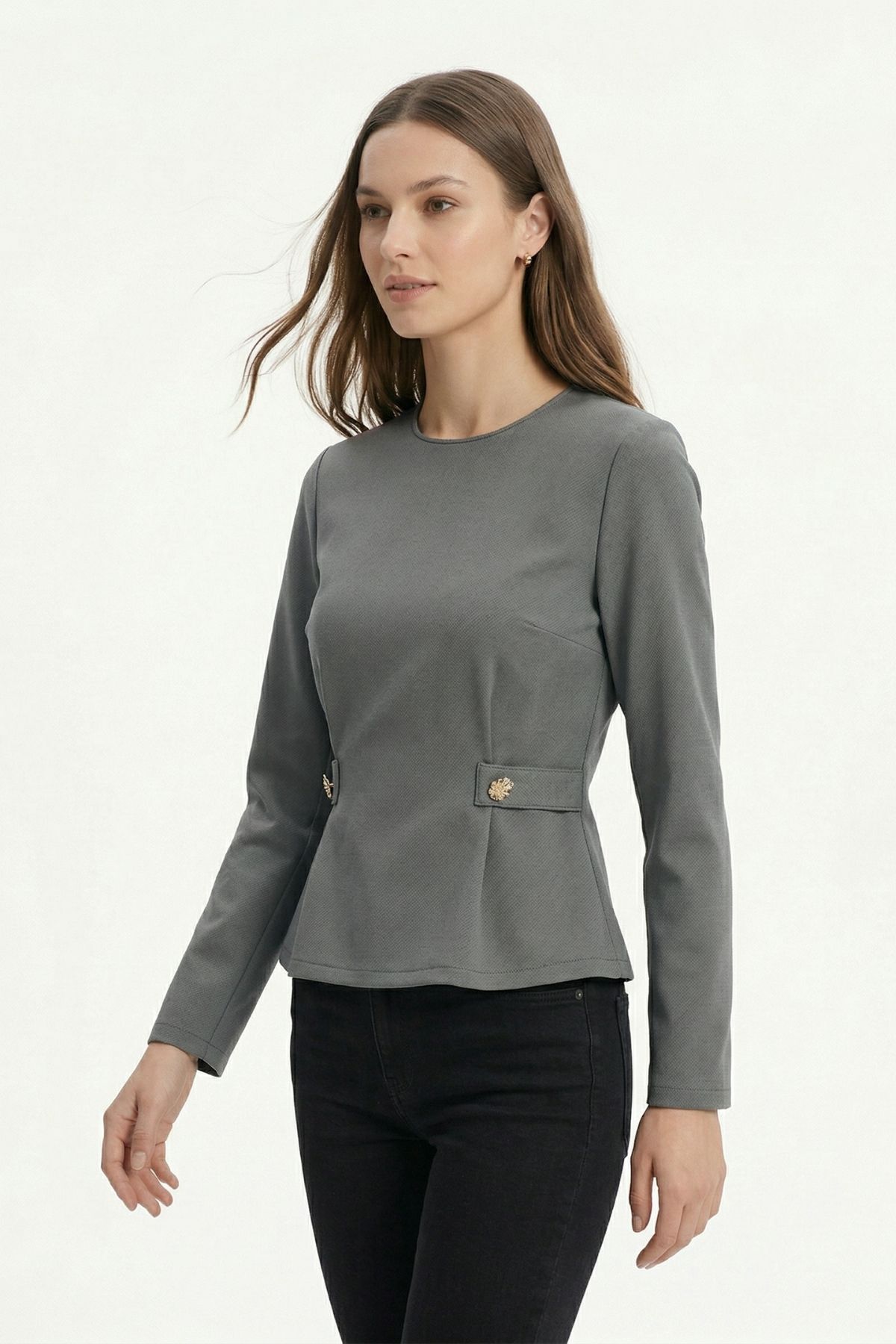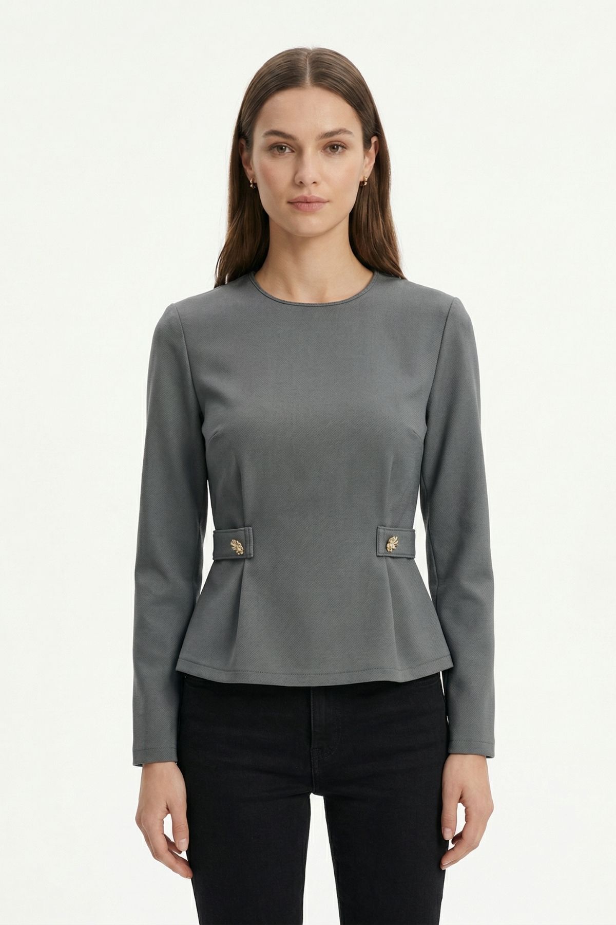 Antrasit Bisiklet Yaka Uzun Kol Düğmeli Bluz 8492A
