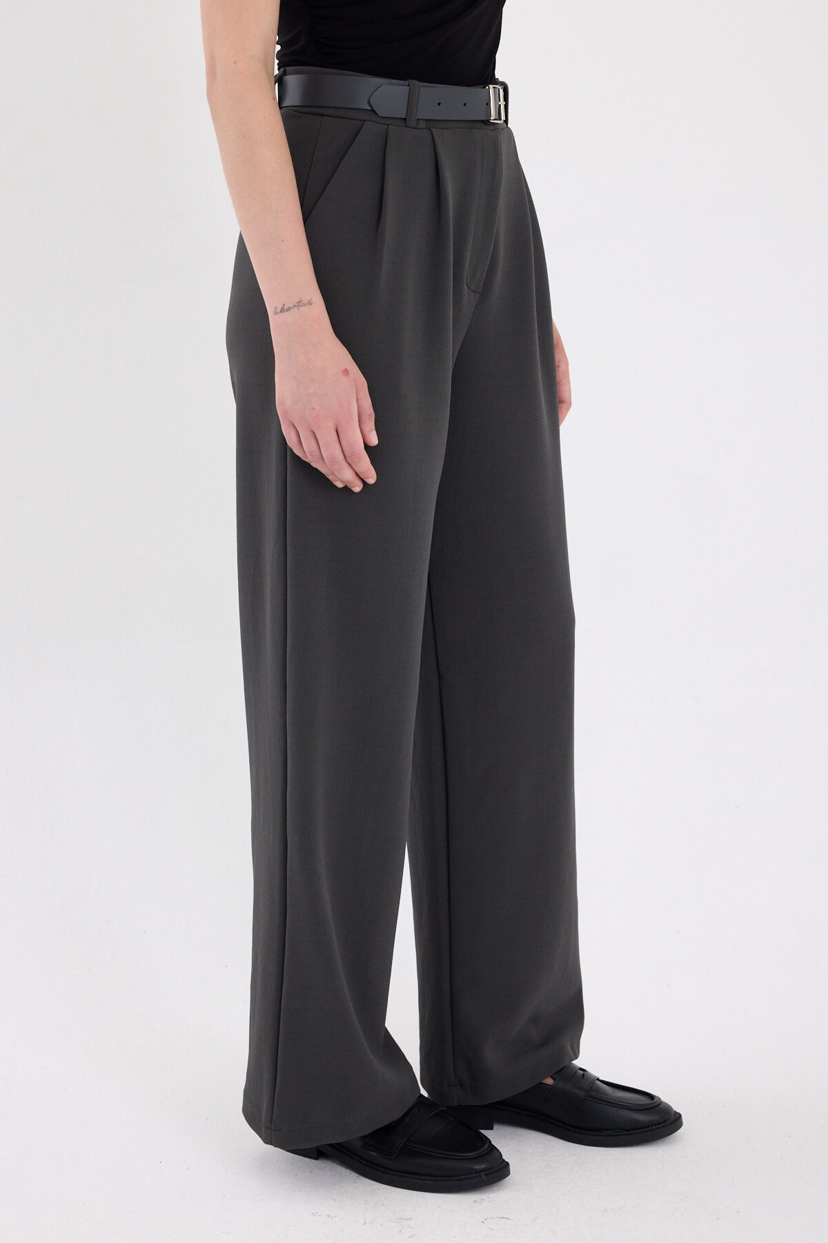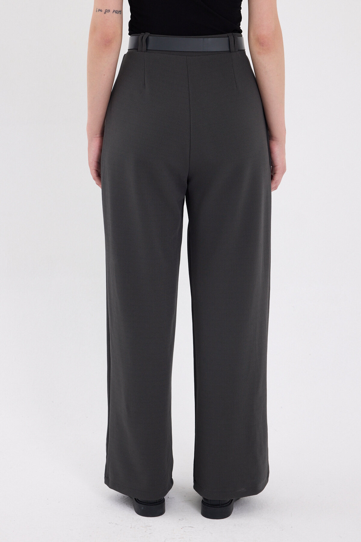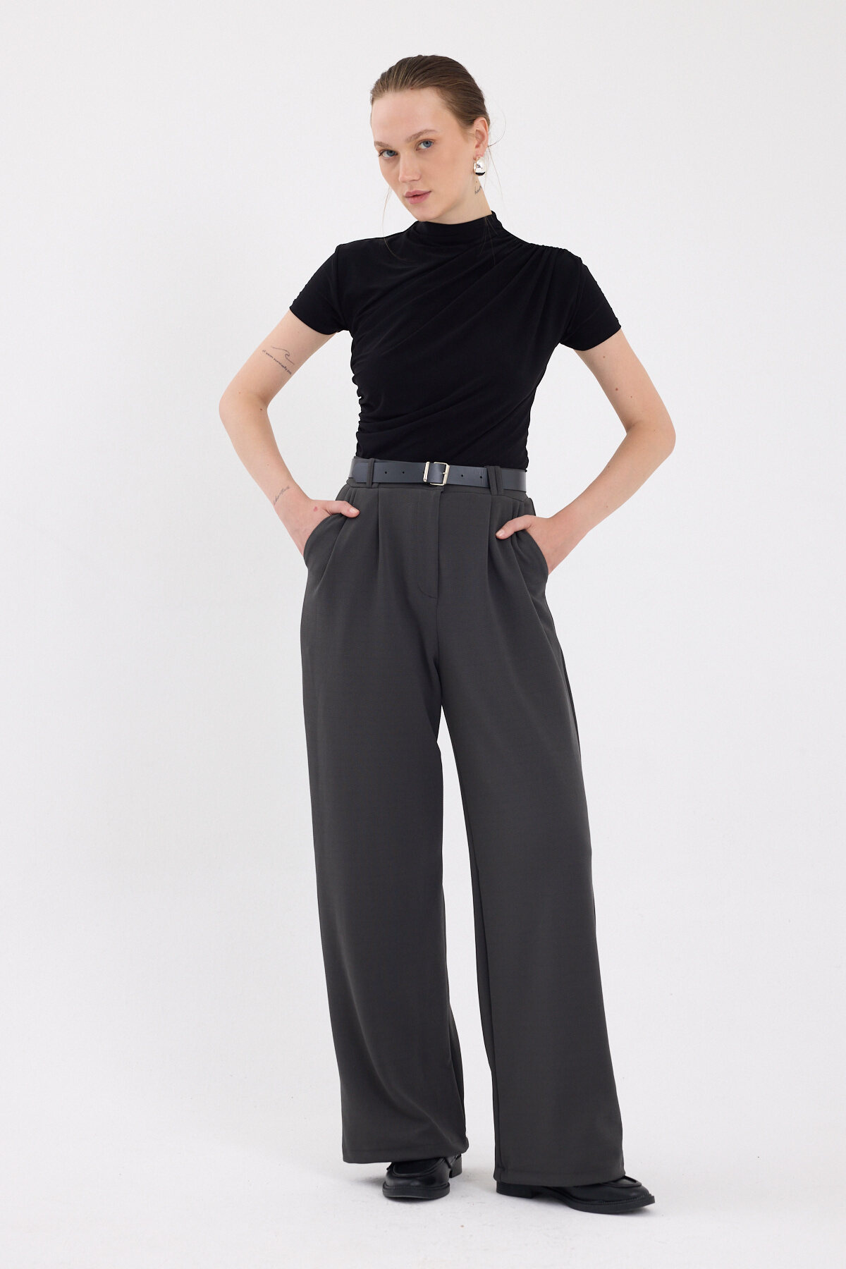 Antrasit Çift Pile Detay Kemerli Kadın Pantolon 5009