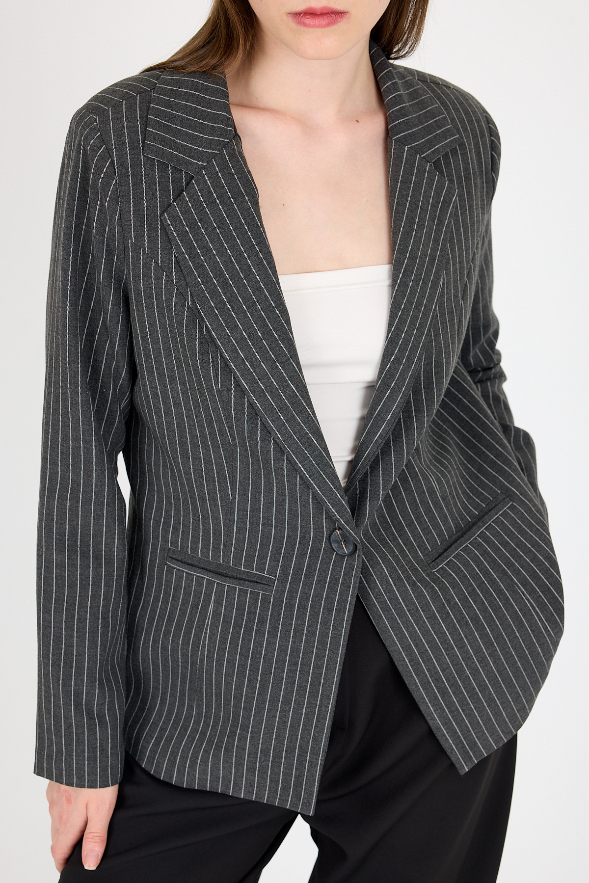 Antrasit Çizgili Tek Düğmeli Blazer Ceket 4594A