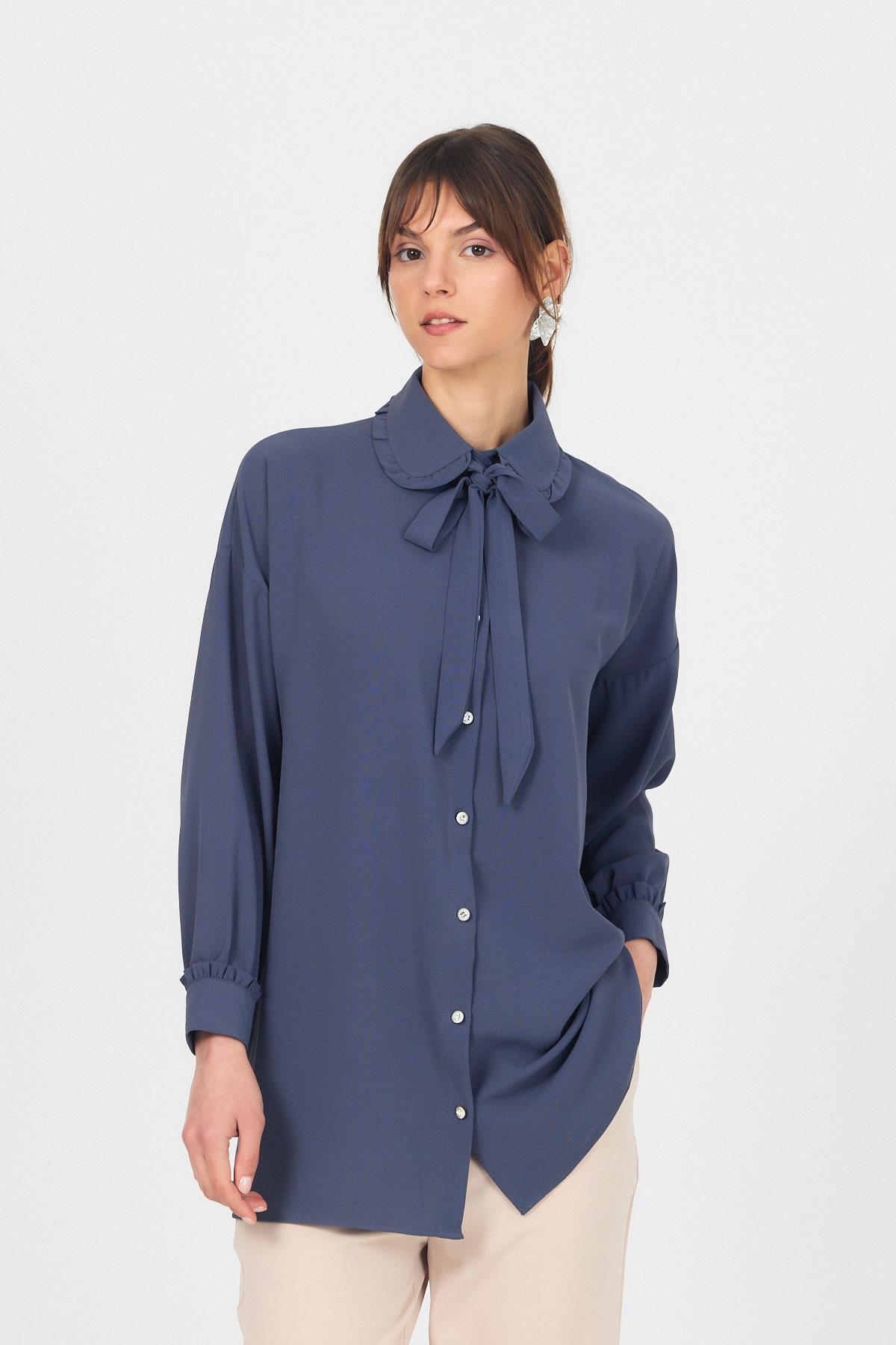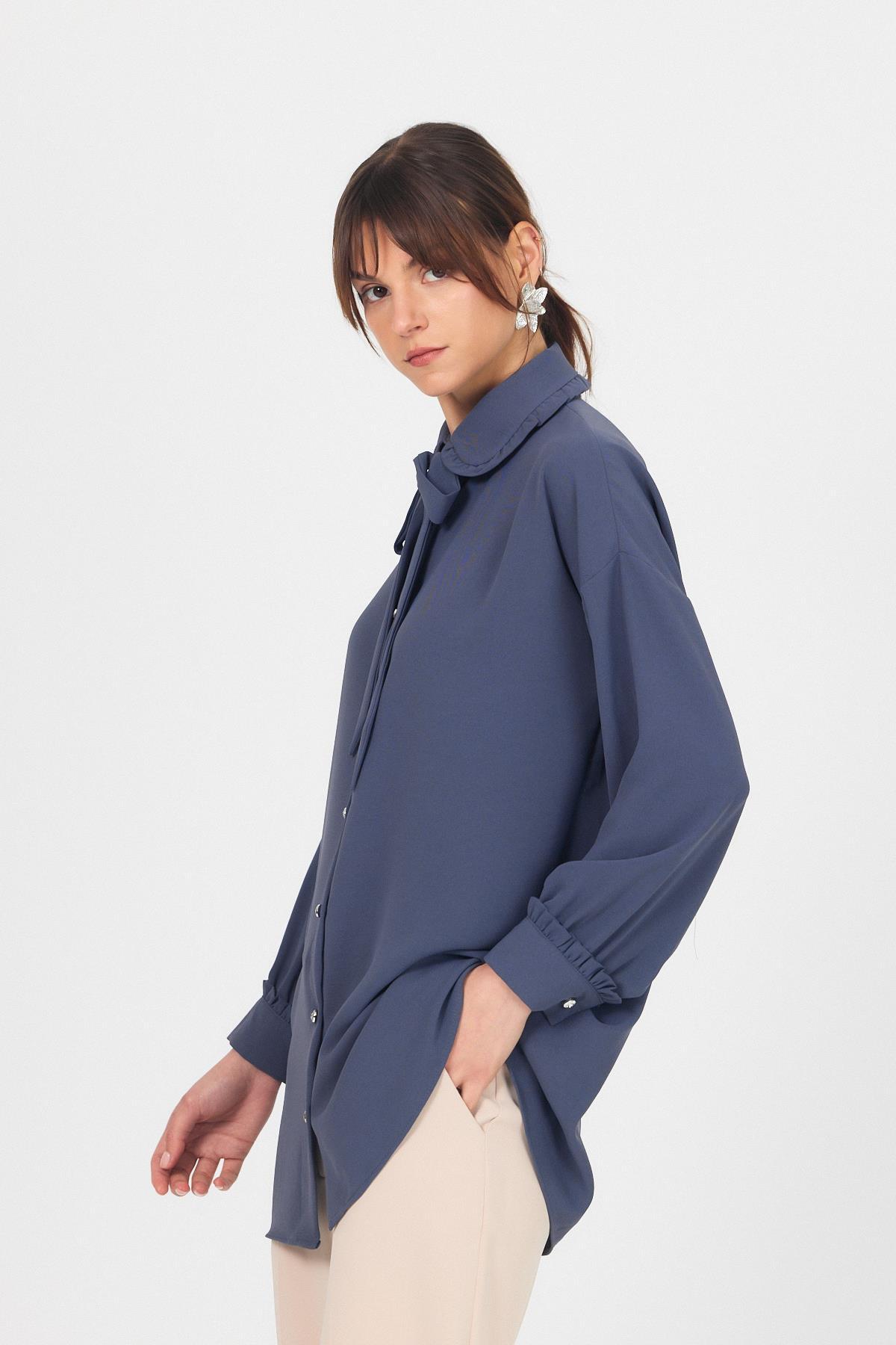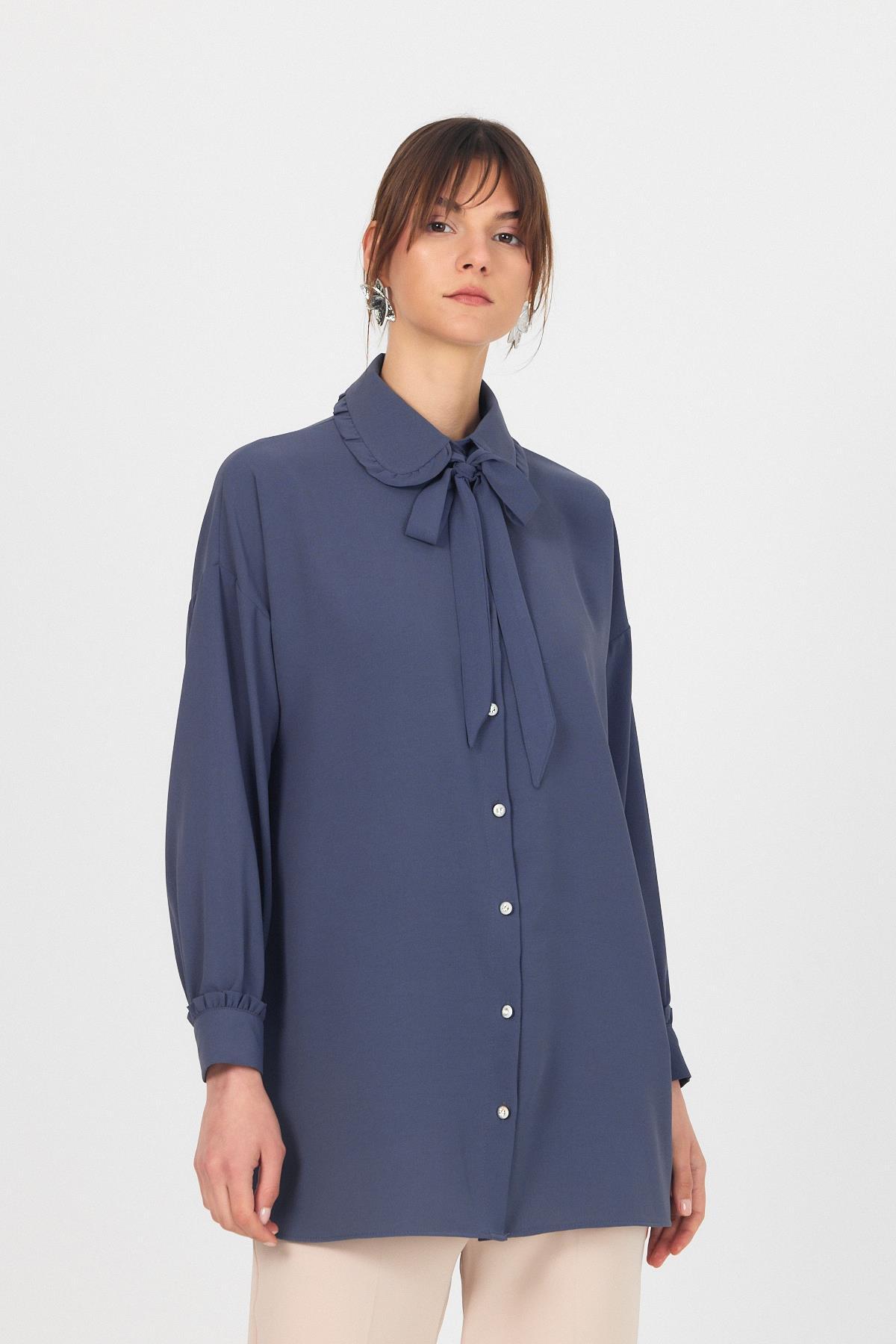 Antrasit Fırfır Yaka Detaylı Bağlamalı Tunik 4856A