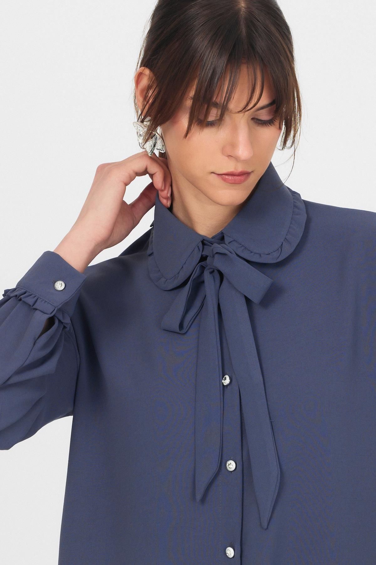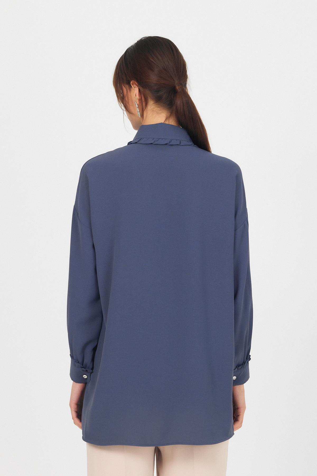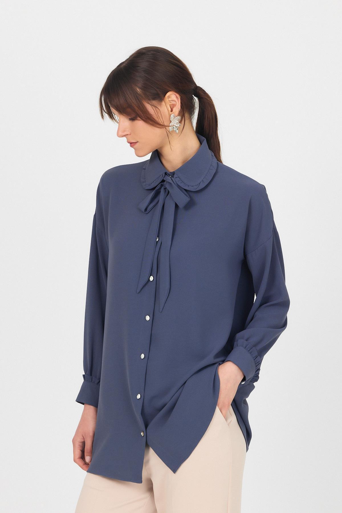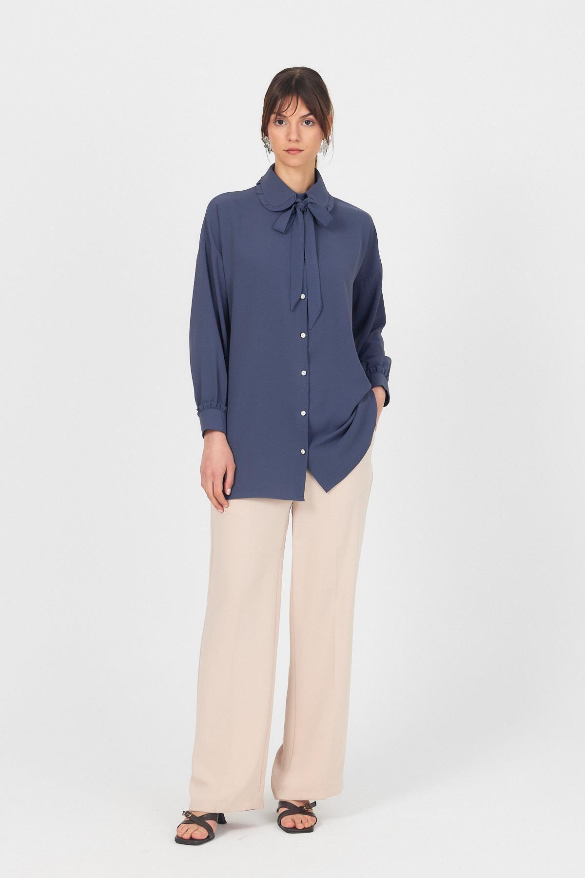 Antrasit Fırfır Yaka Detaylı Bağlamalı Tunik 4856A