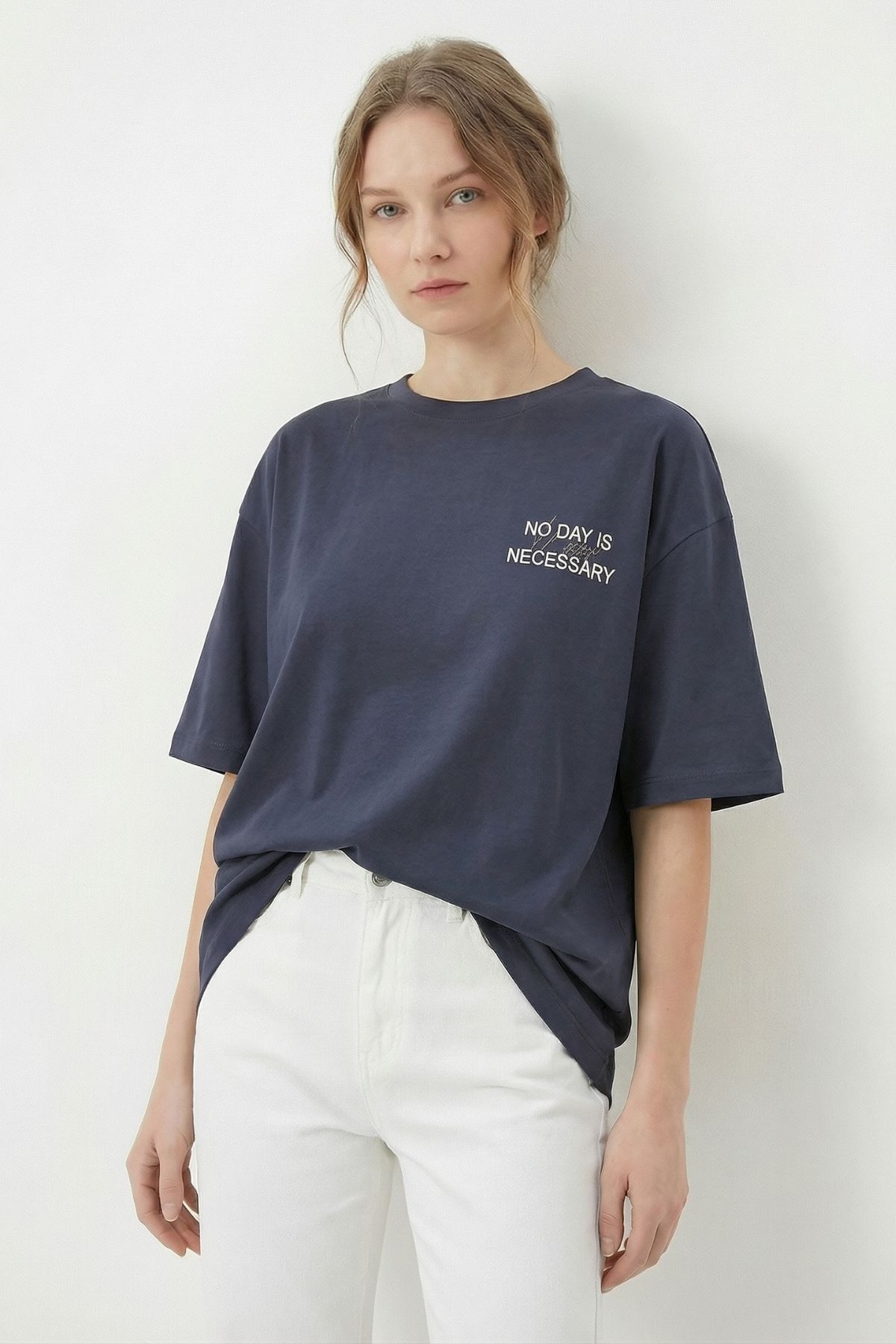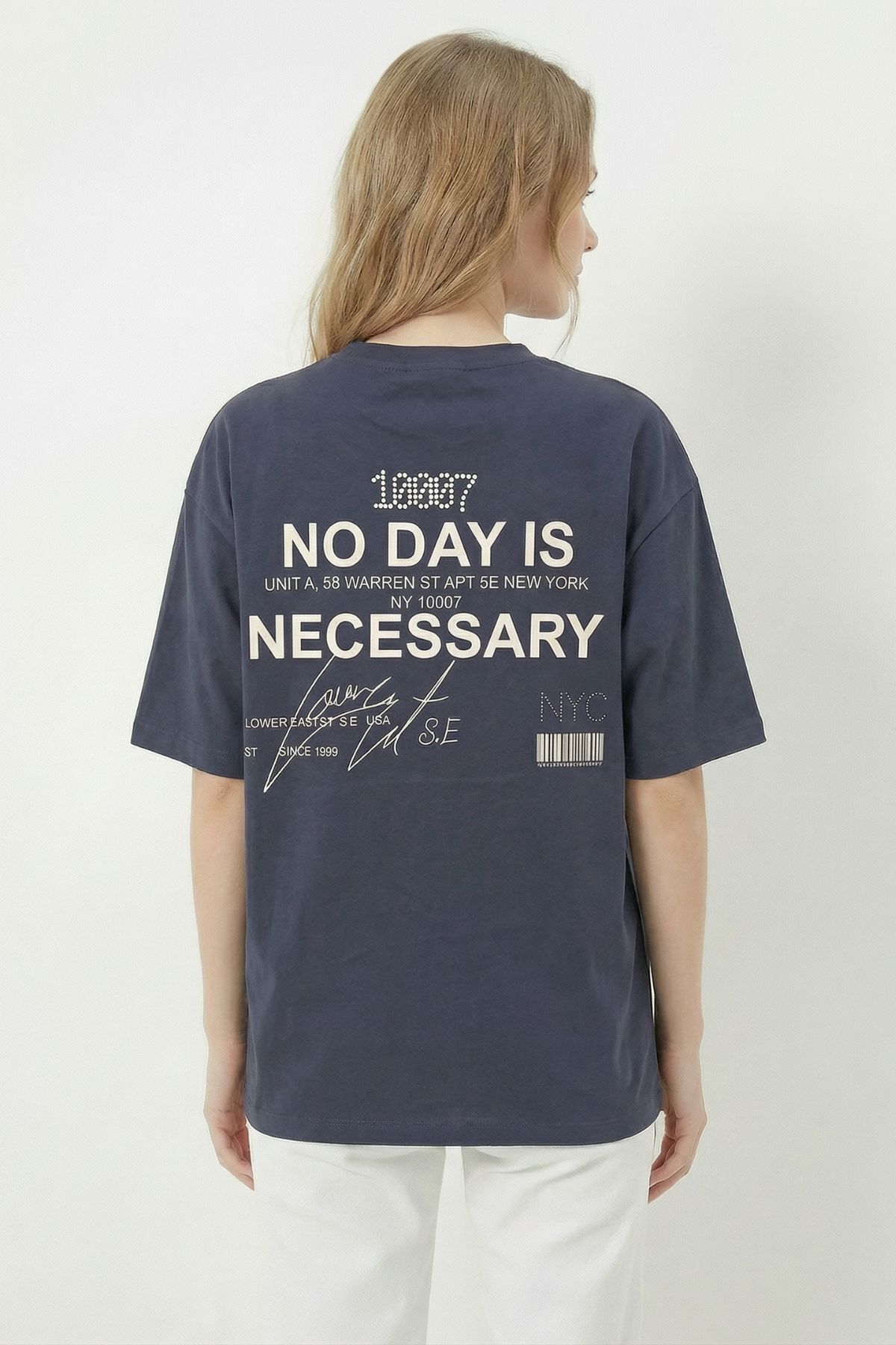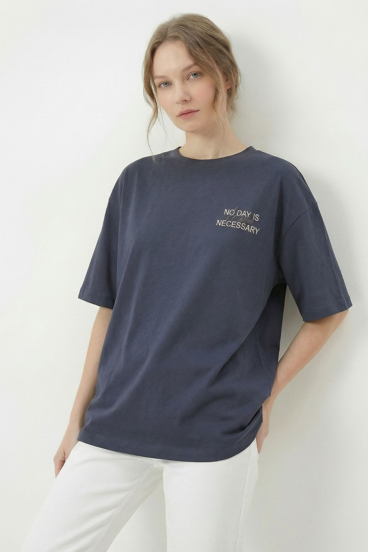 Antrasit Ön Arka Yazı Baskılı Tişört 8150