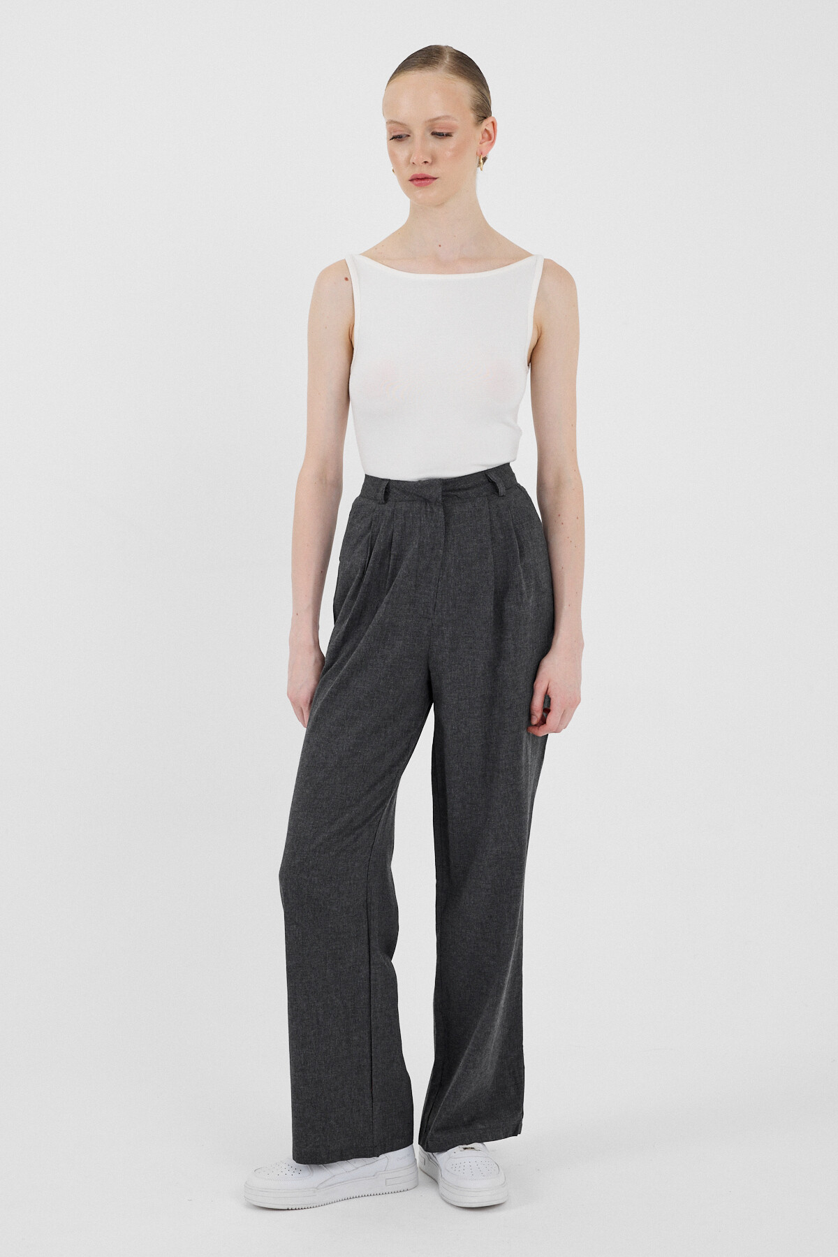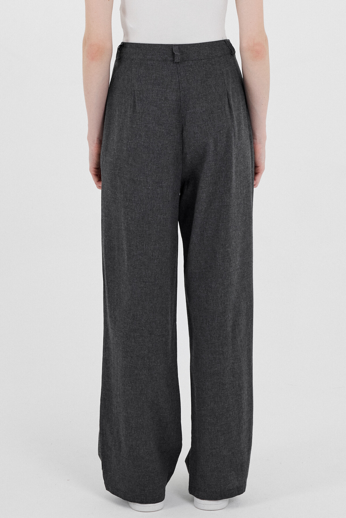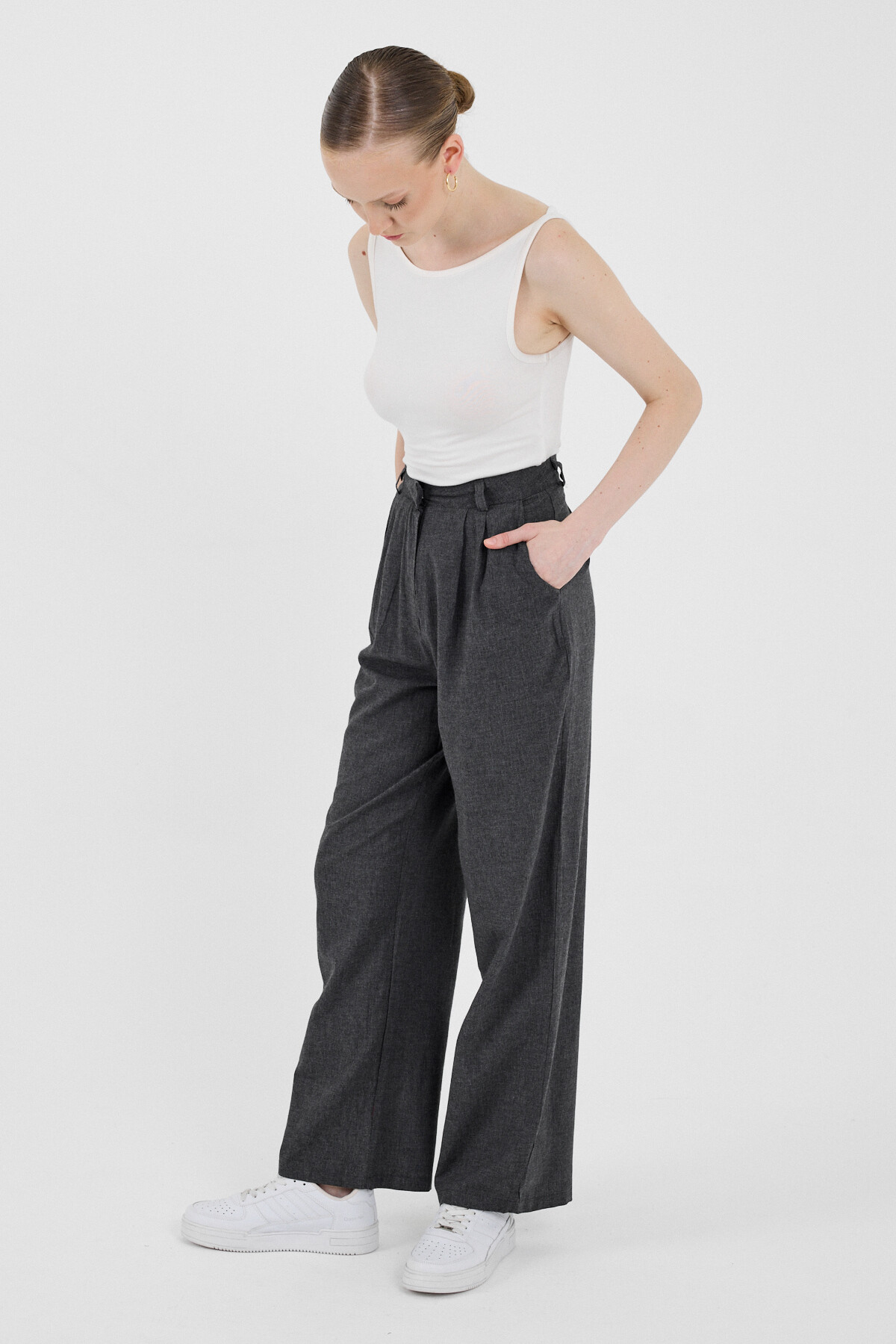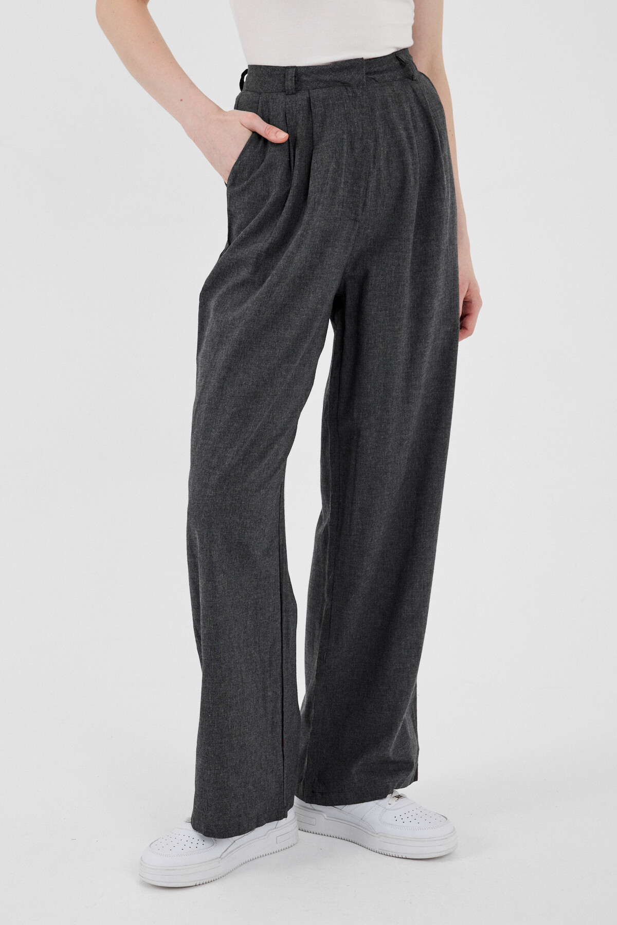 Antrasit Pile Detaylı Bol Paça/Palazzo Pantolon 4757A