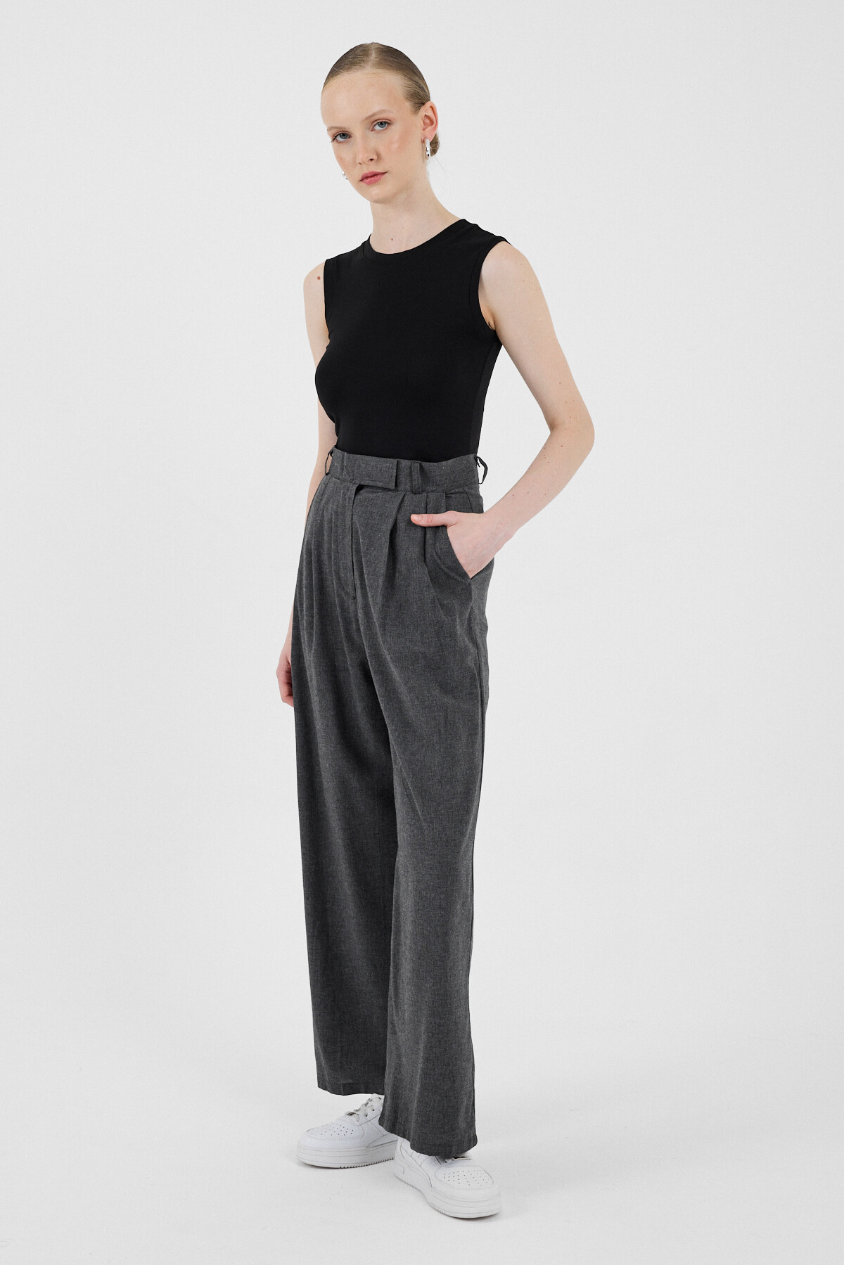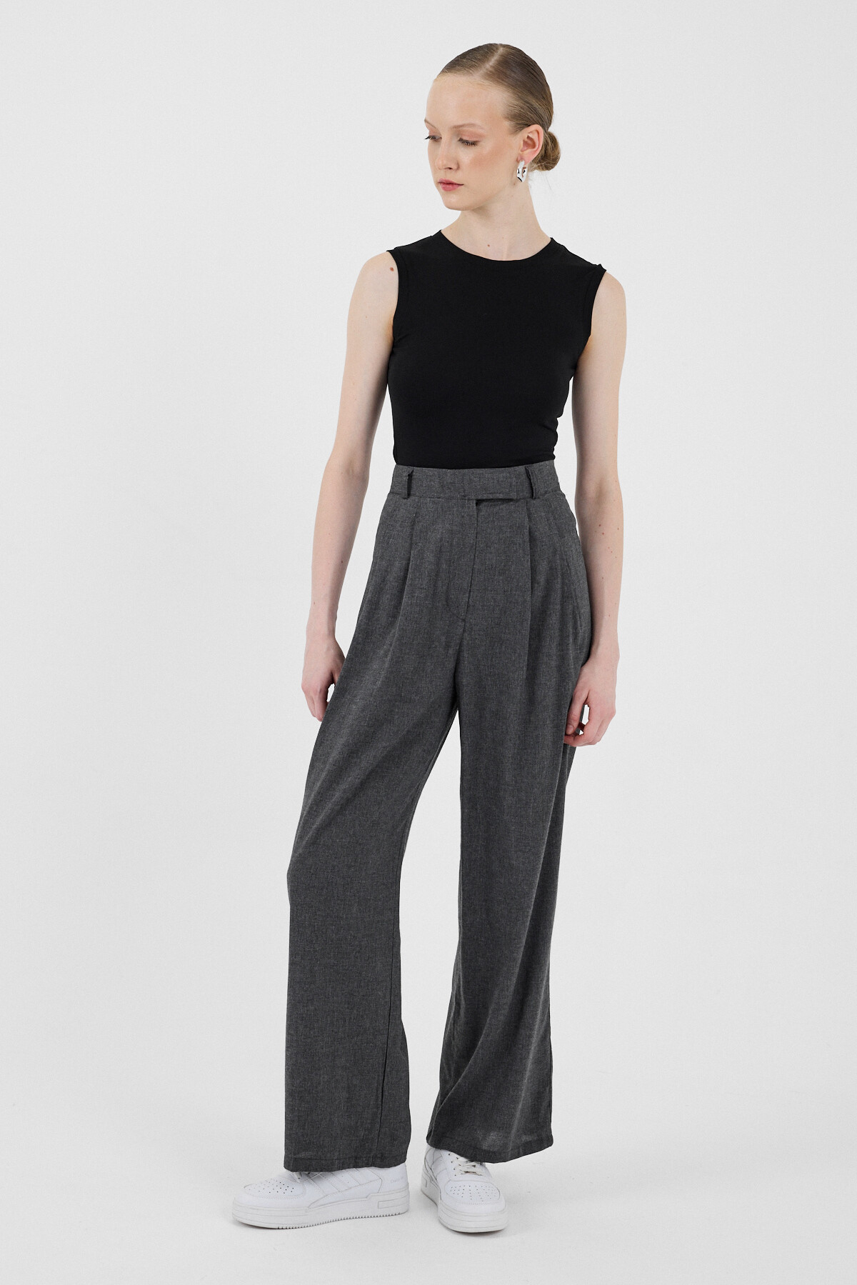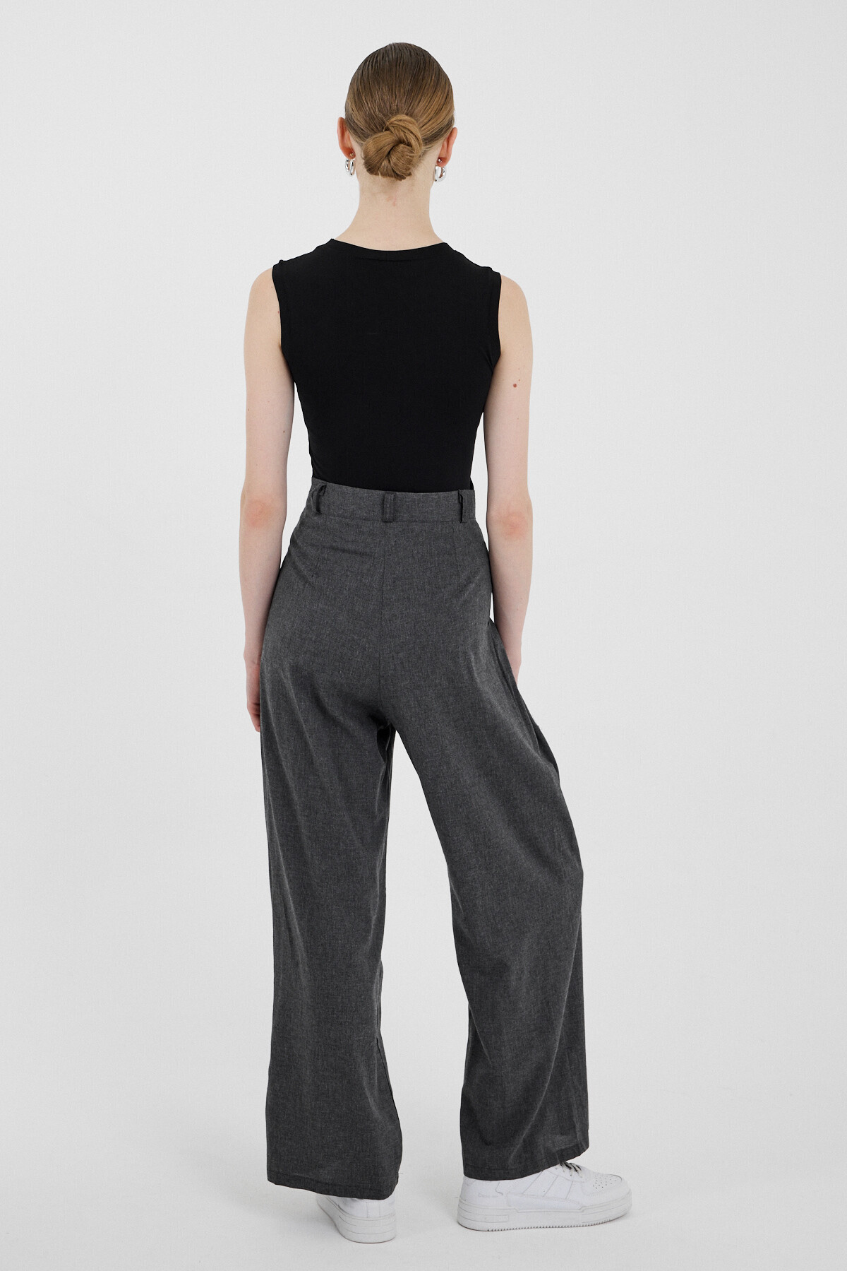 Antrasit Yüksek Bel Cırt Kapama Detaylı Pamuklu Palazzo Pantolon 8062A