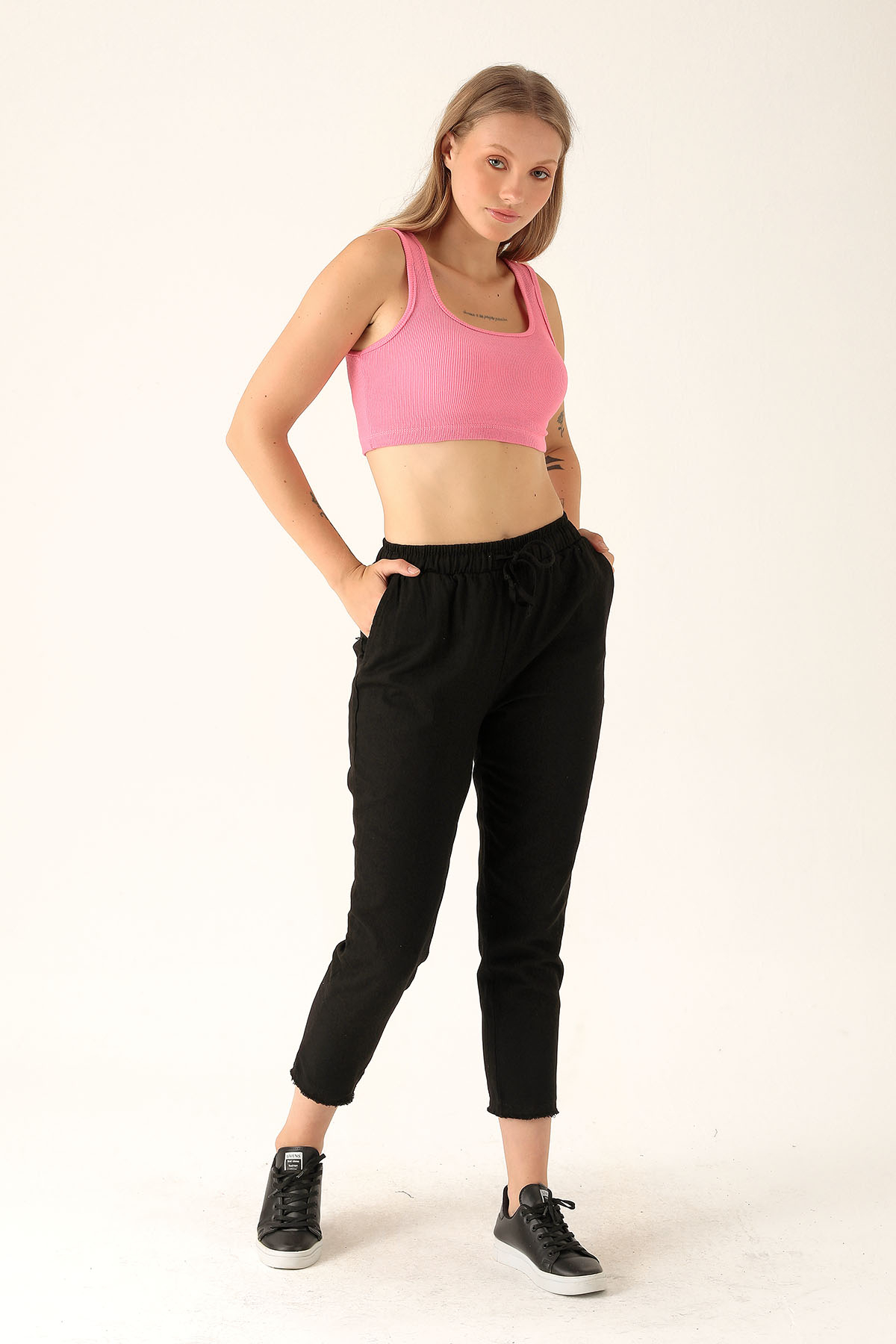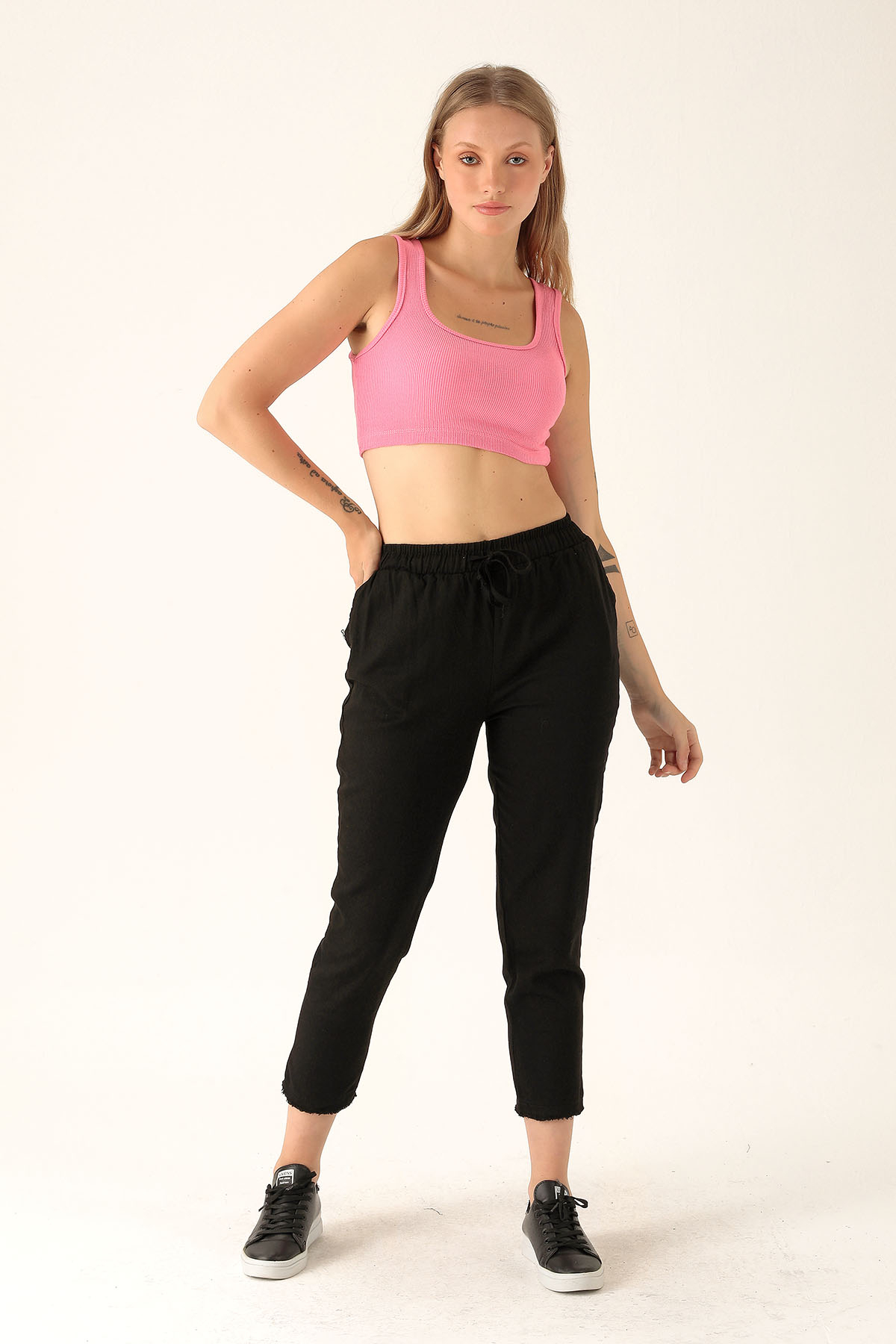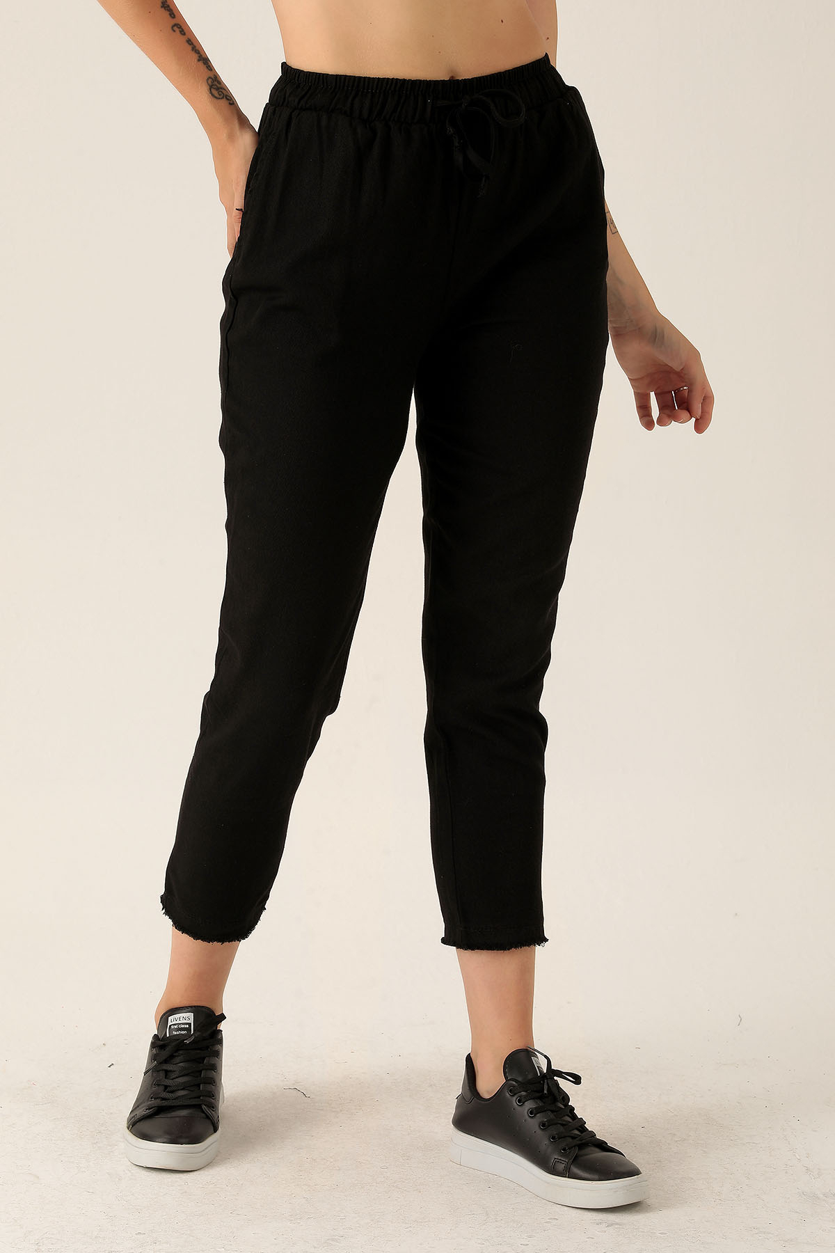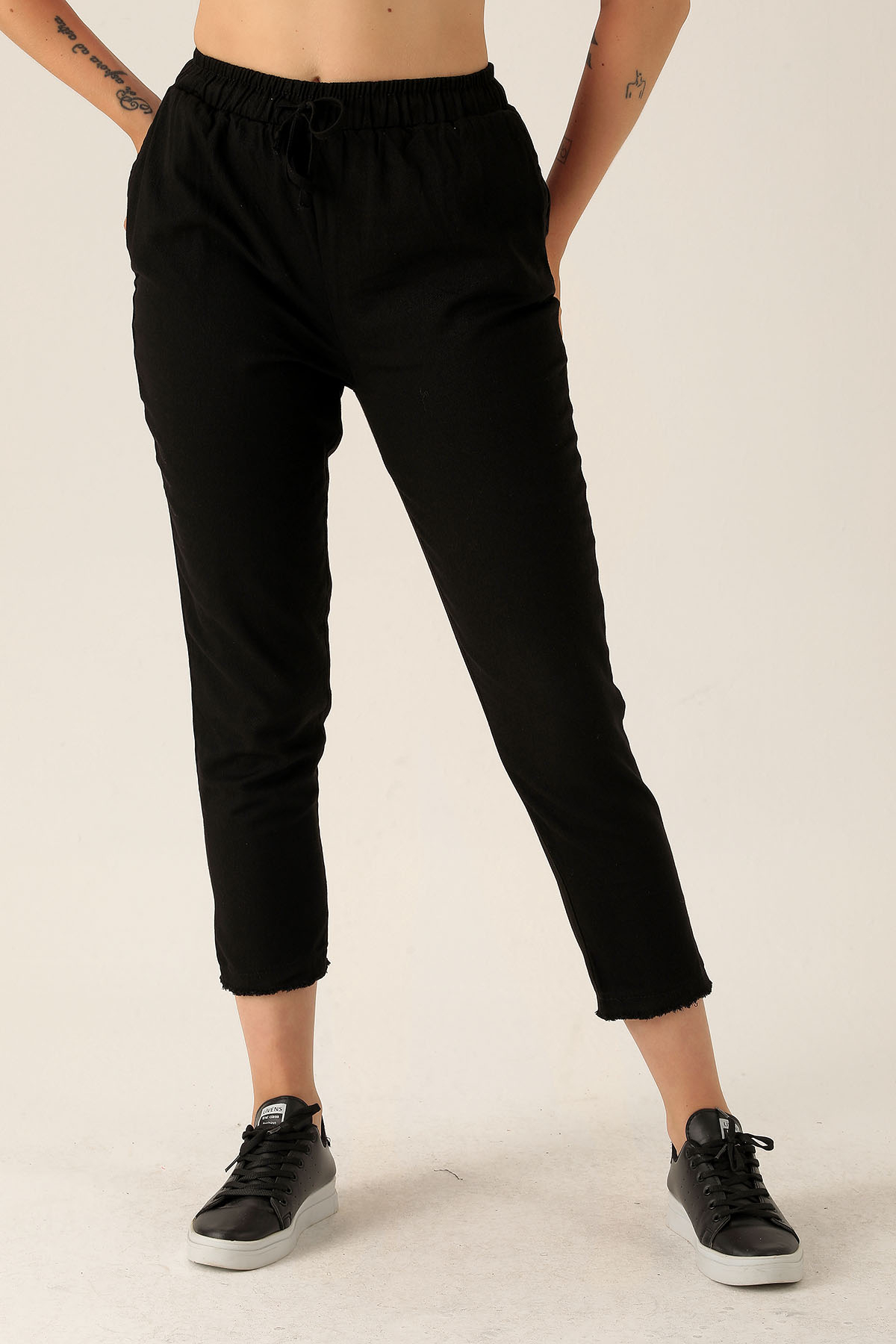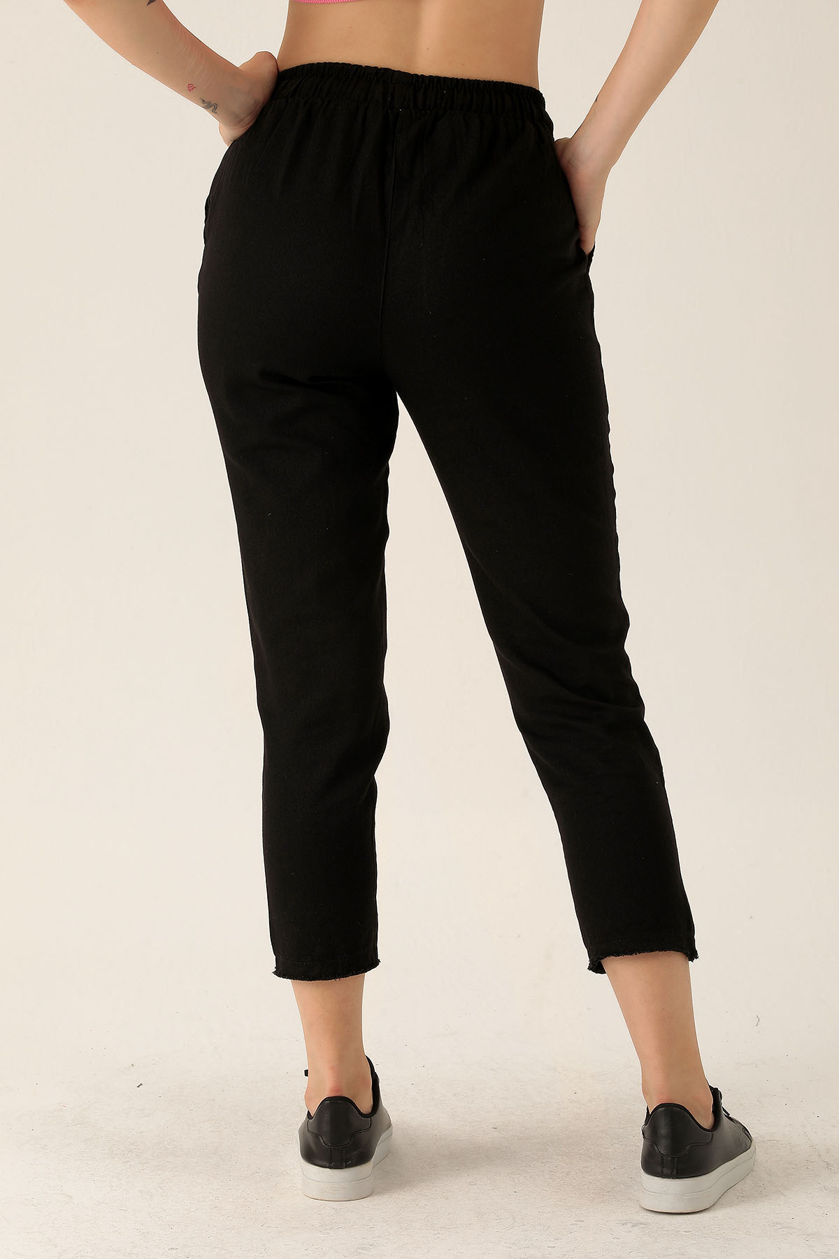 Bağcık Detay Püsküllü Bayan Pantolon - 001 Siyah