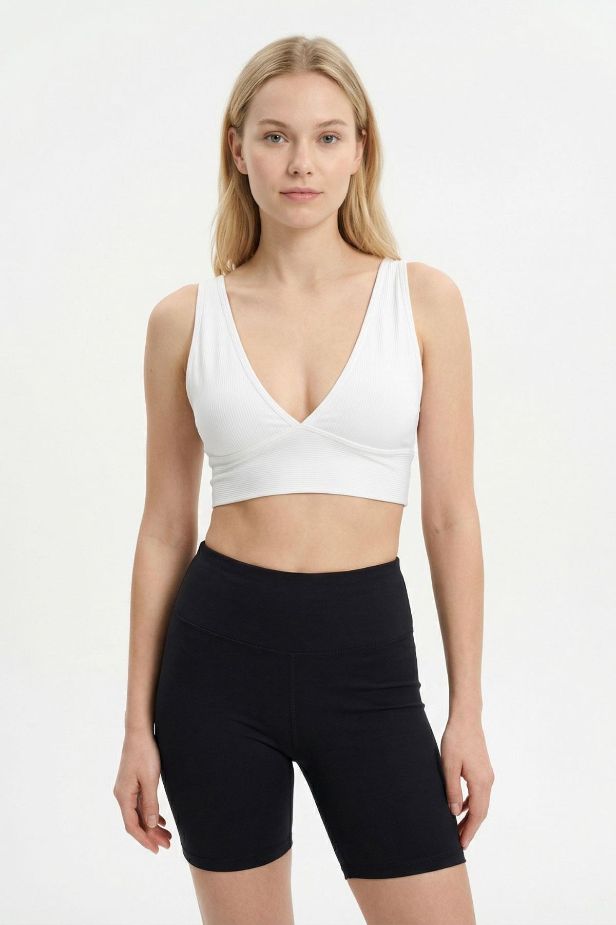 Beyaz V Yaka Fitilli Büstiyer 9036