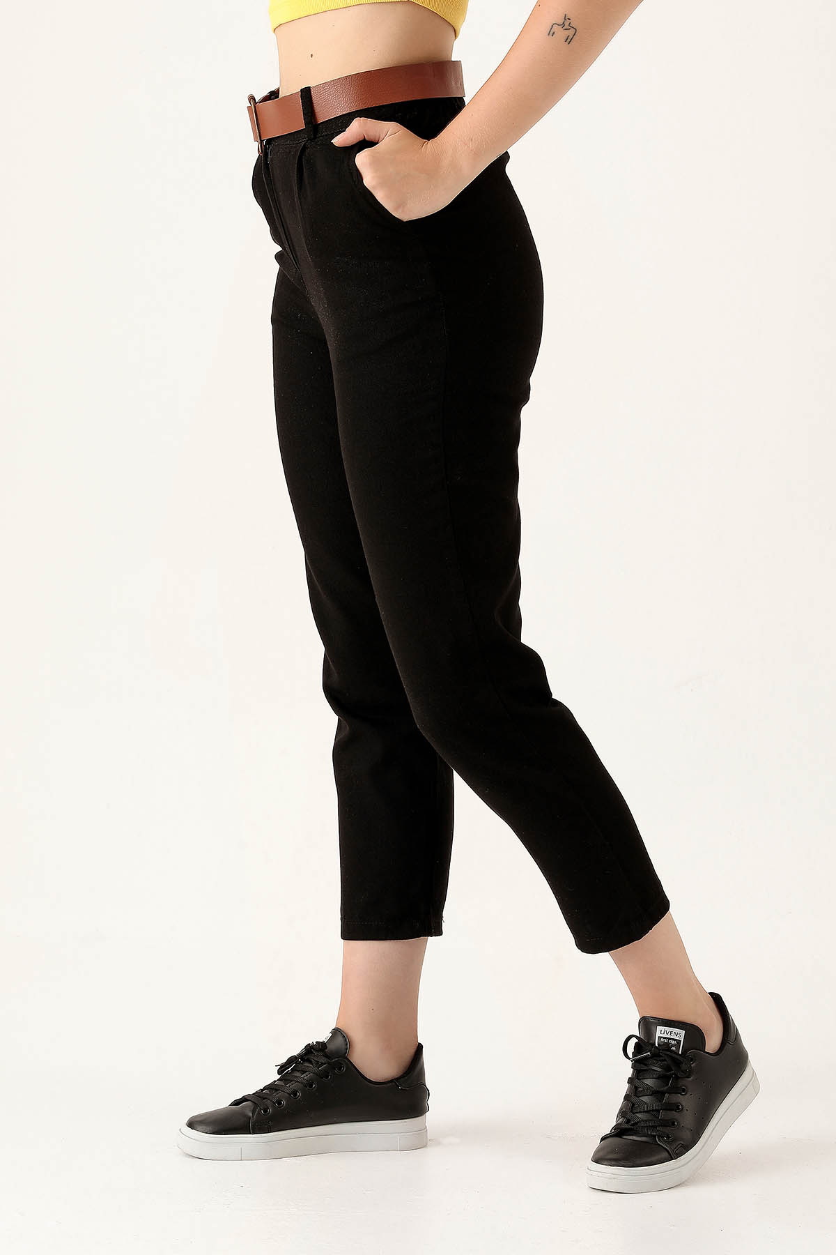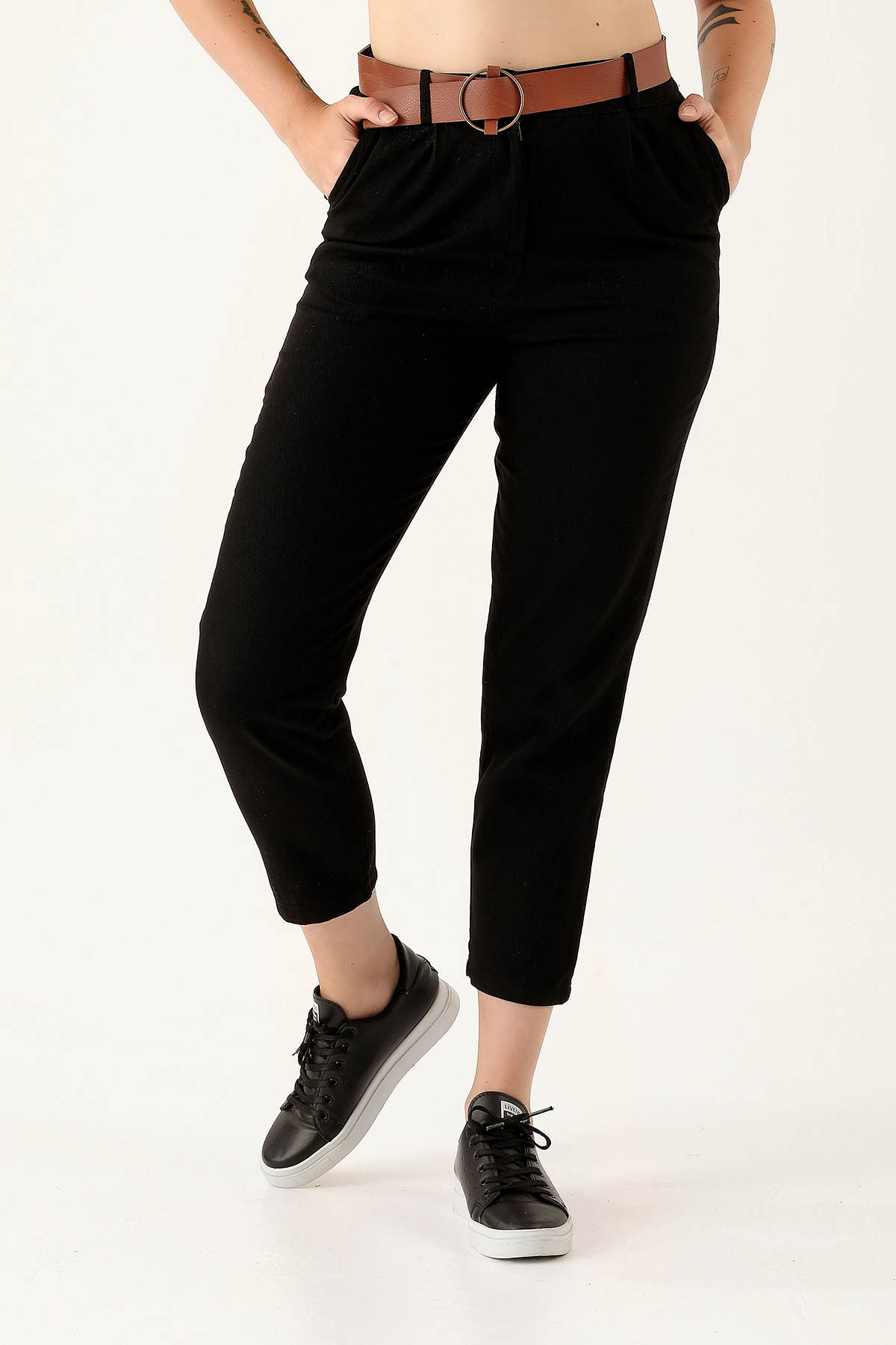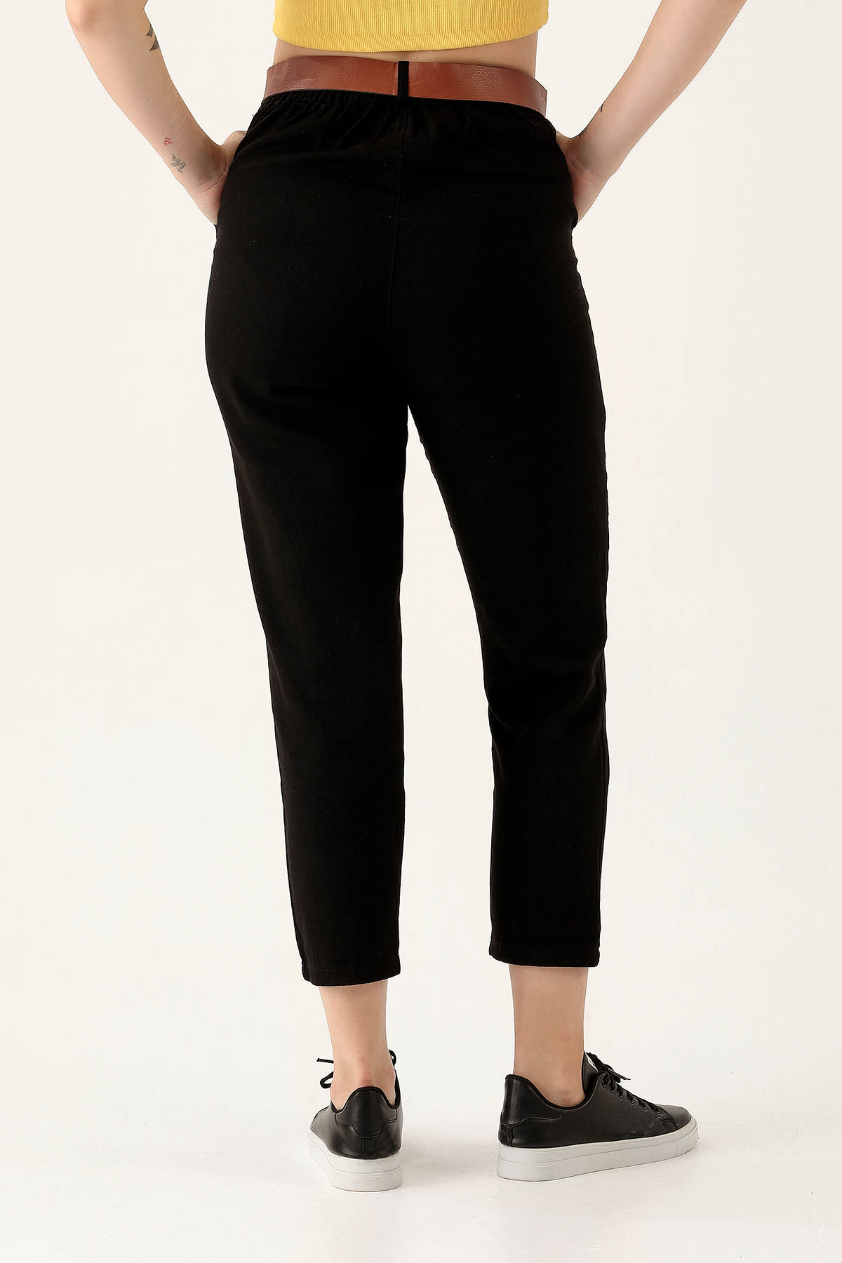 Bayan Kemer Detay Gabardin Bayan Pantolon - 5925 Siyah