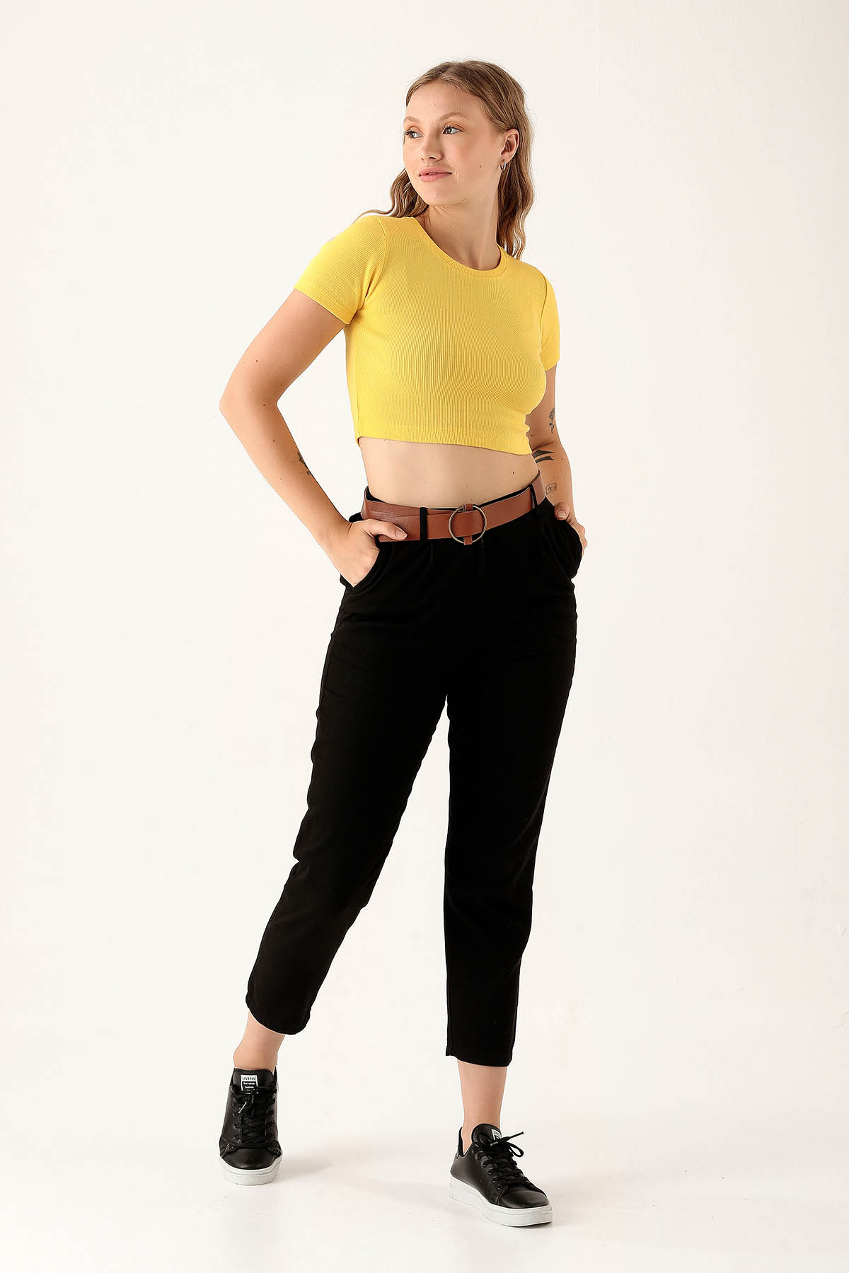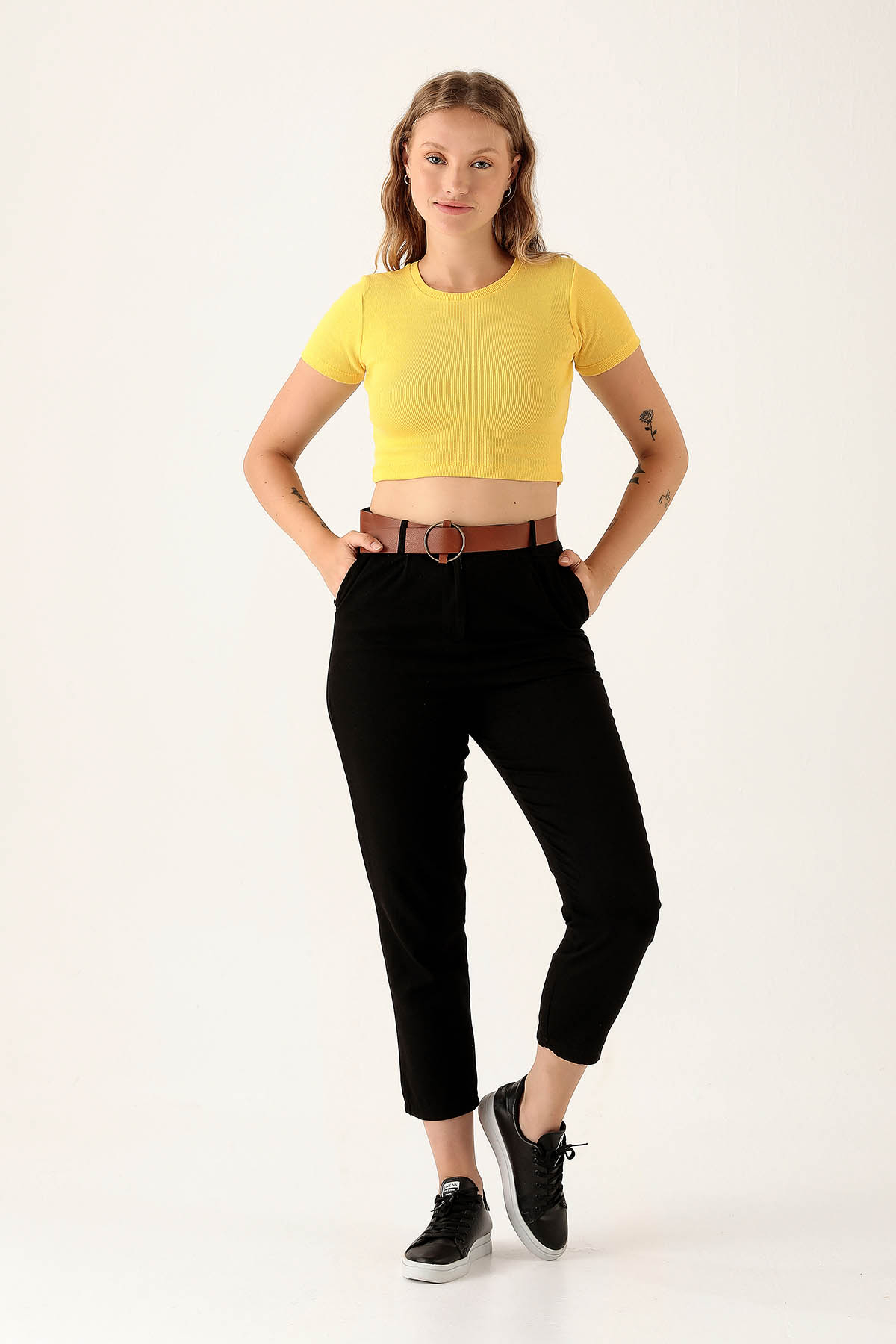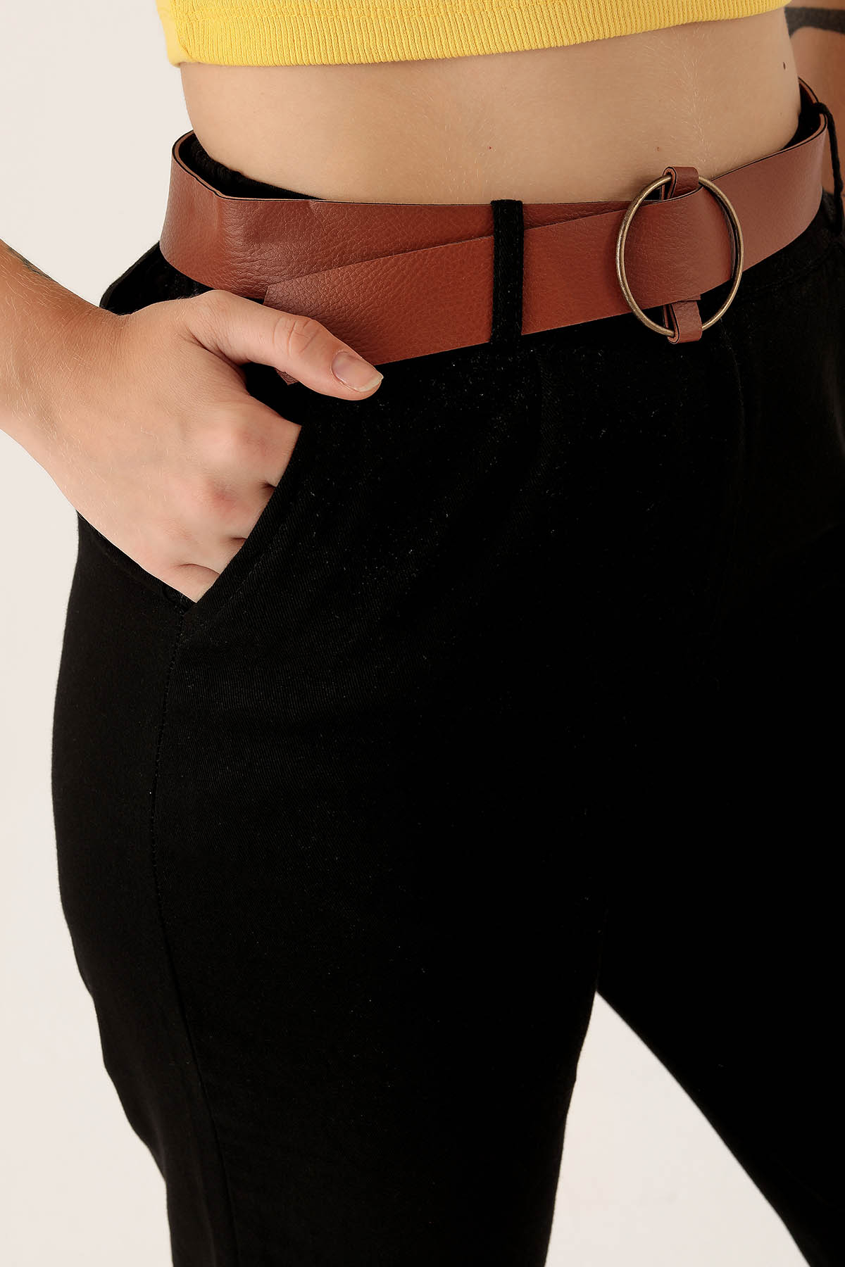 Bayan Kemer Detay Gabardin Bayan Pantolon - 5925 Siyah