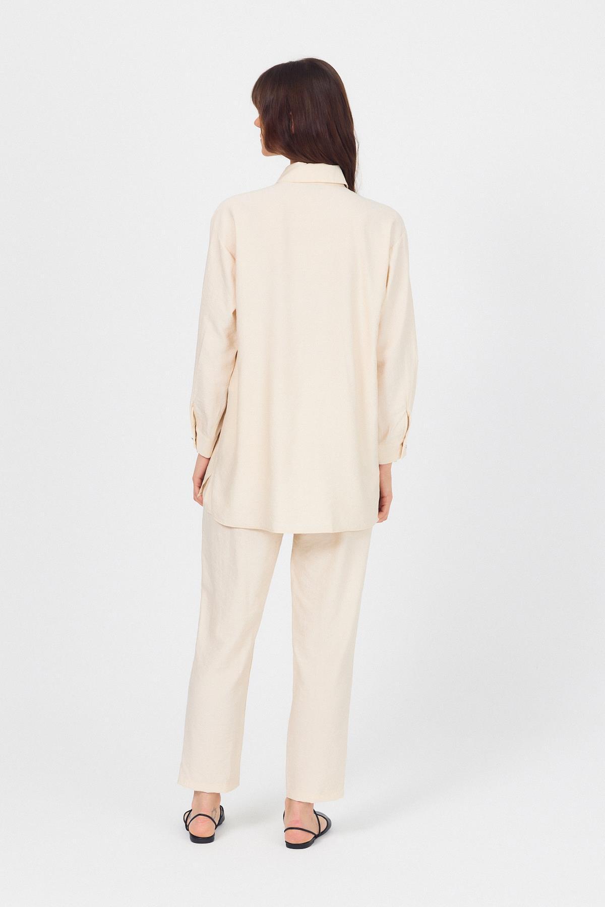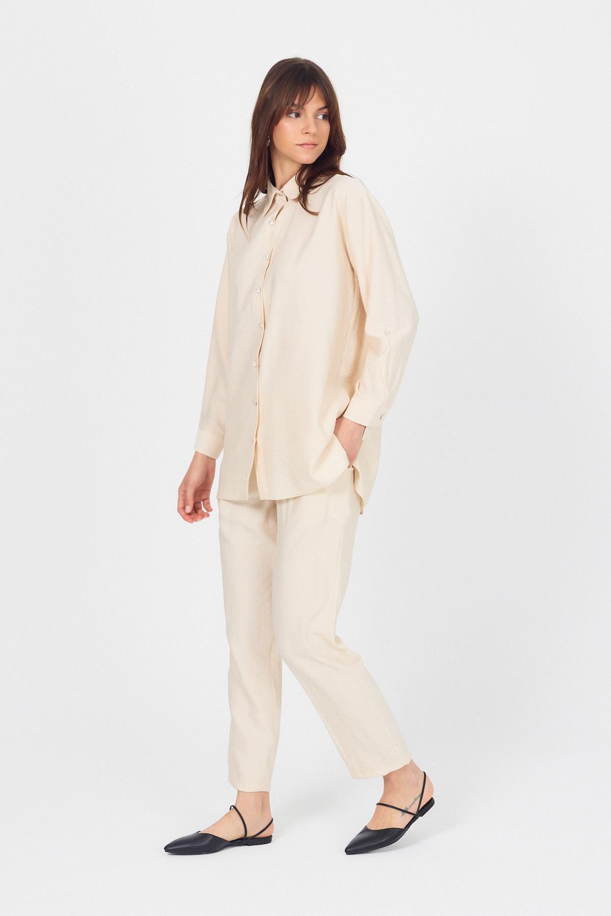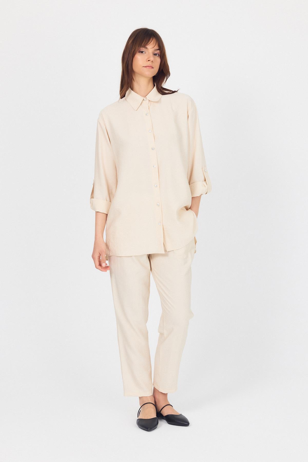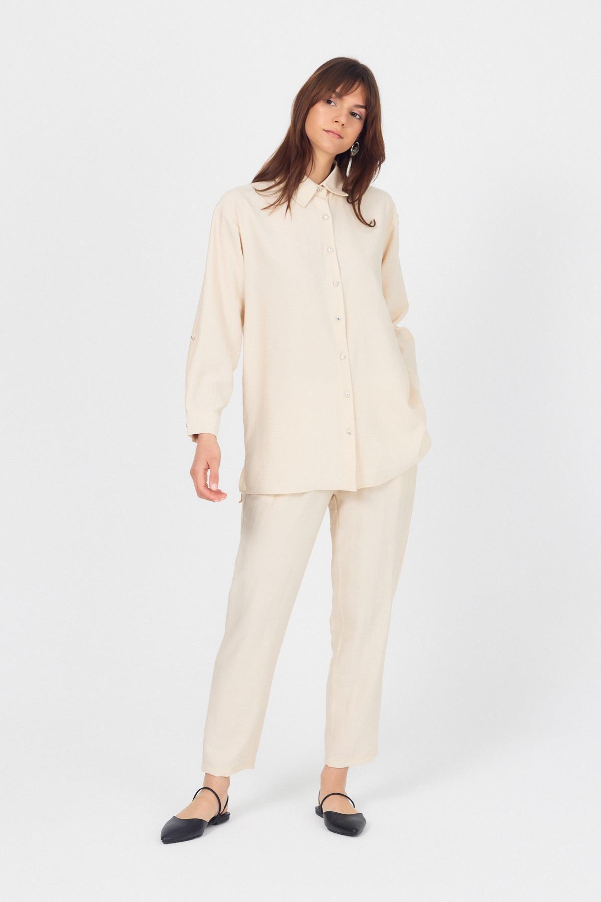 Bej Dokuma Gömlek Pantolon İkili Takım 4607A