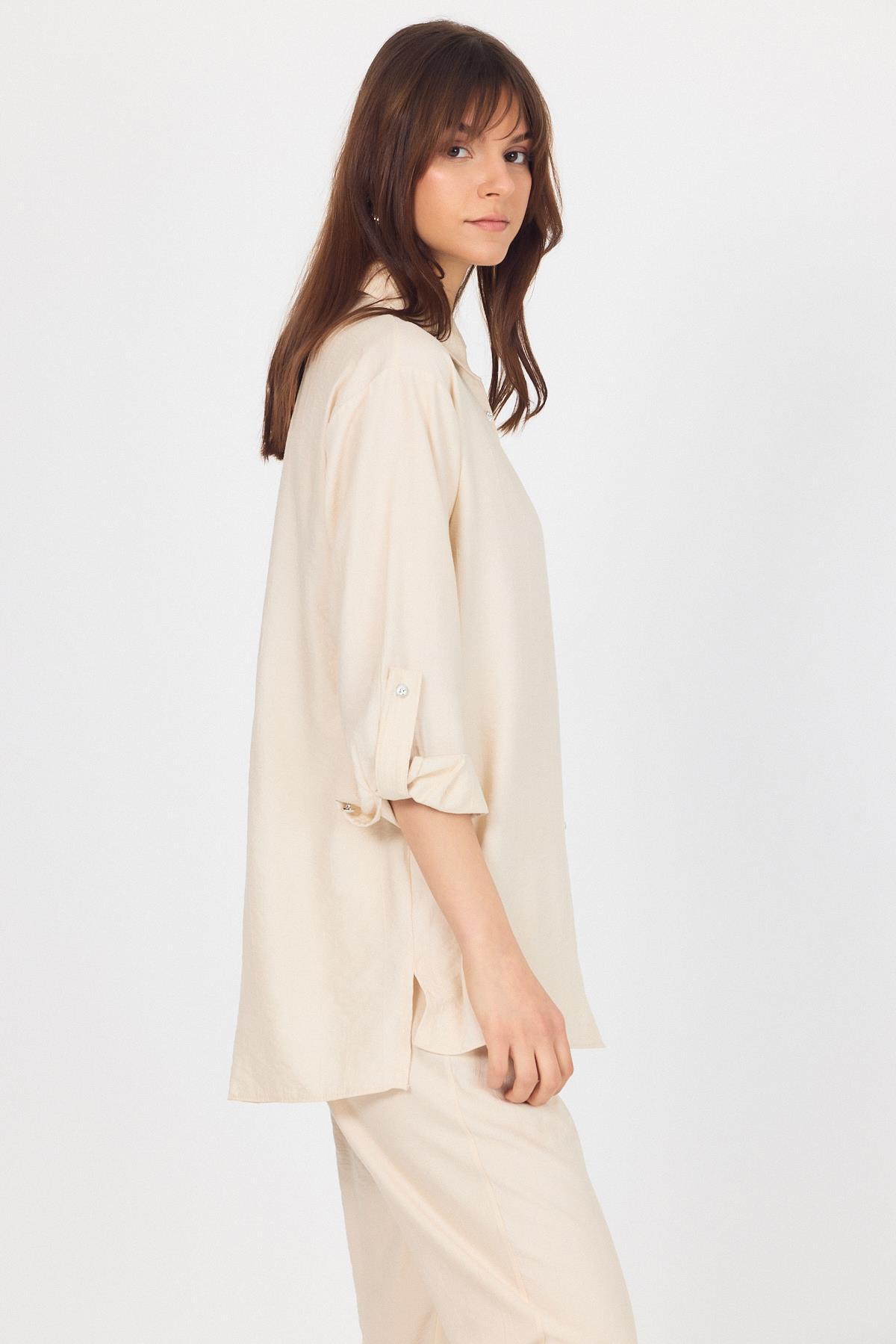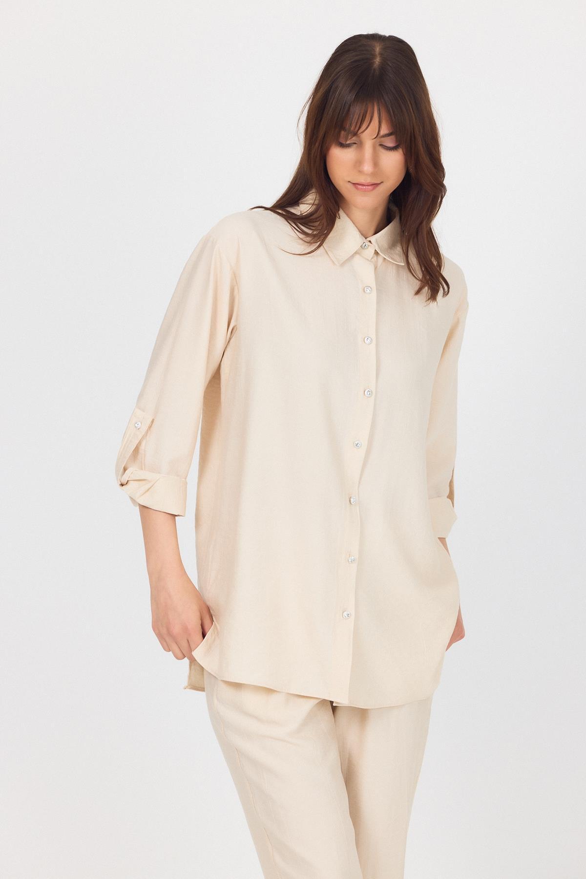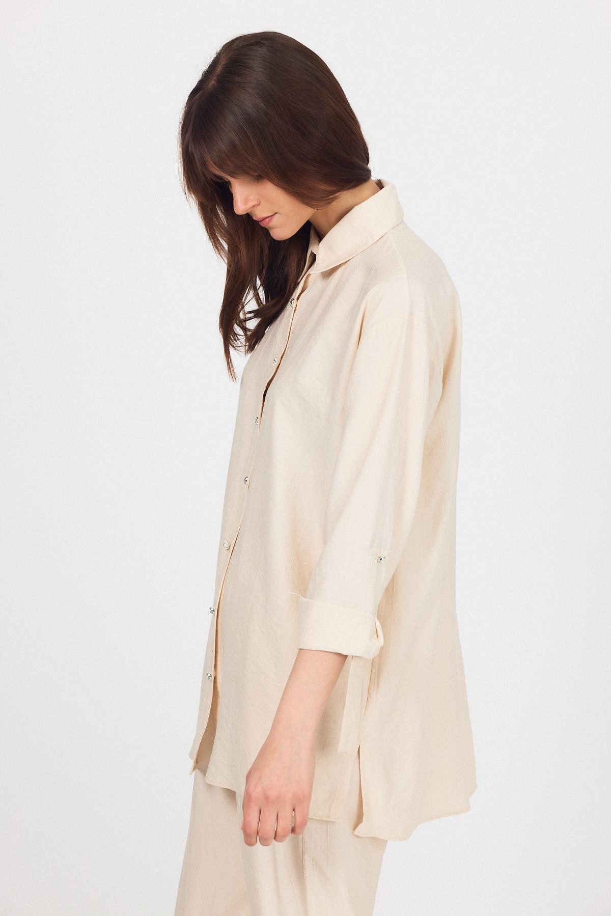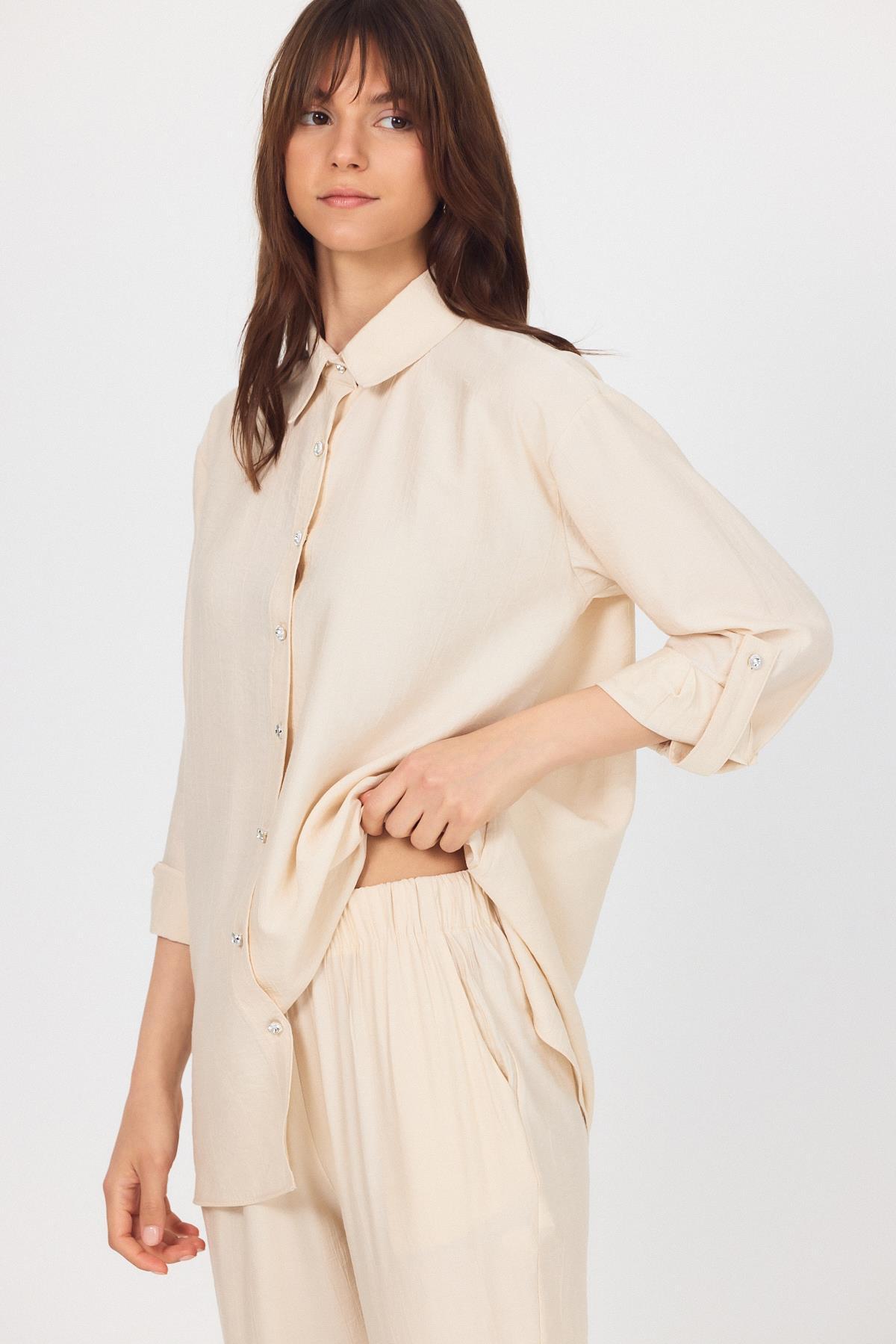 Bej Dokuma Gömlek Pantolon İkili Takım 4607A