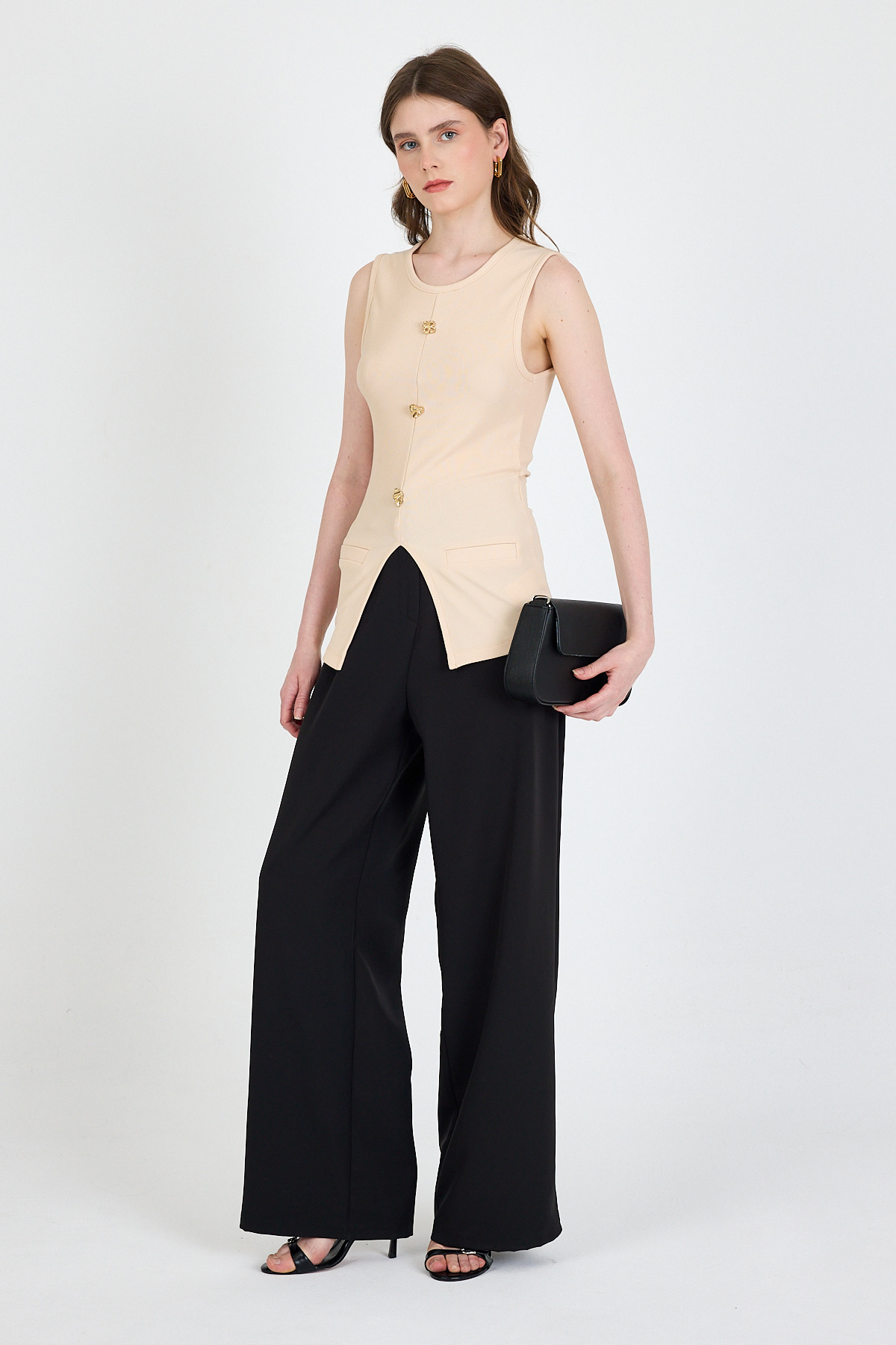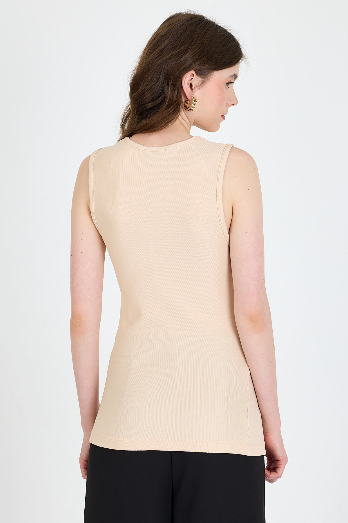 Bej Kolsuz Düğme Detaylı Cep Detaylı Bluz 017