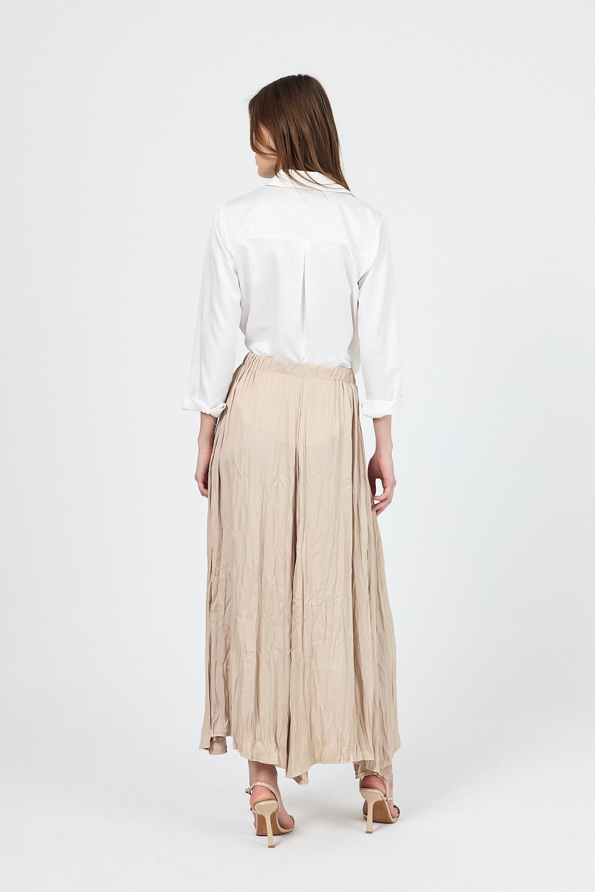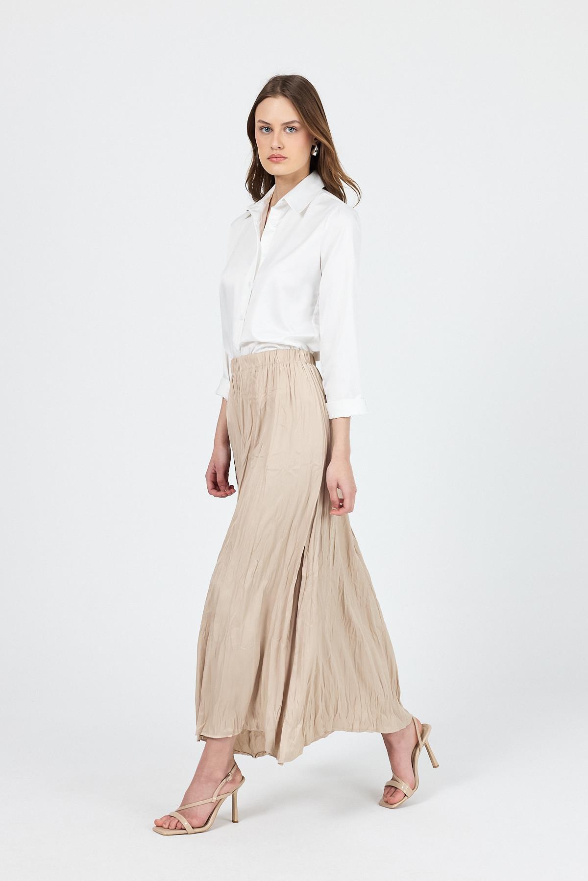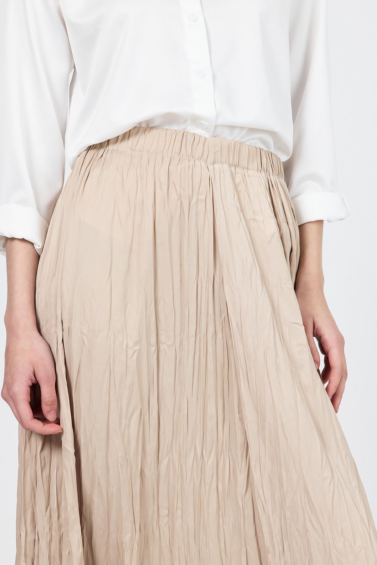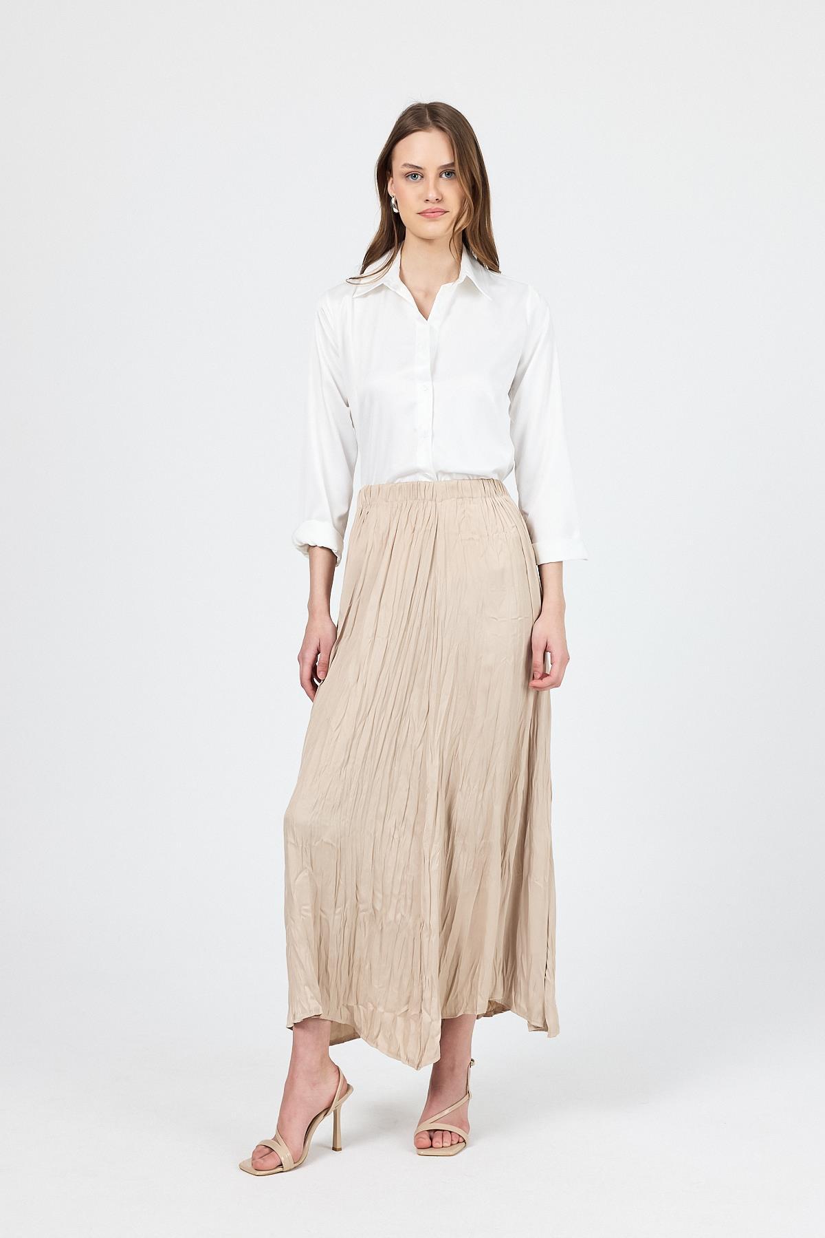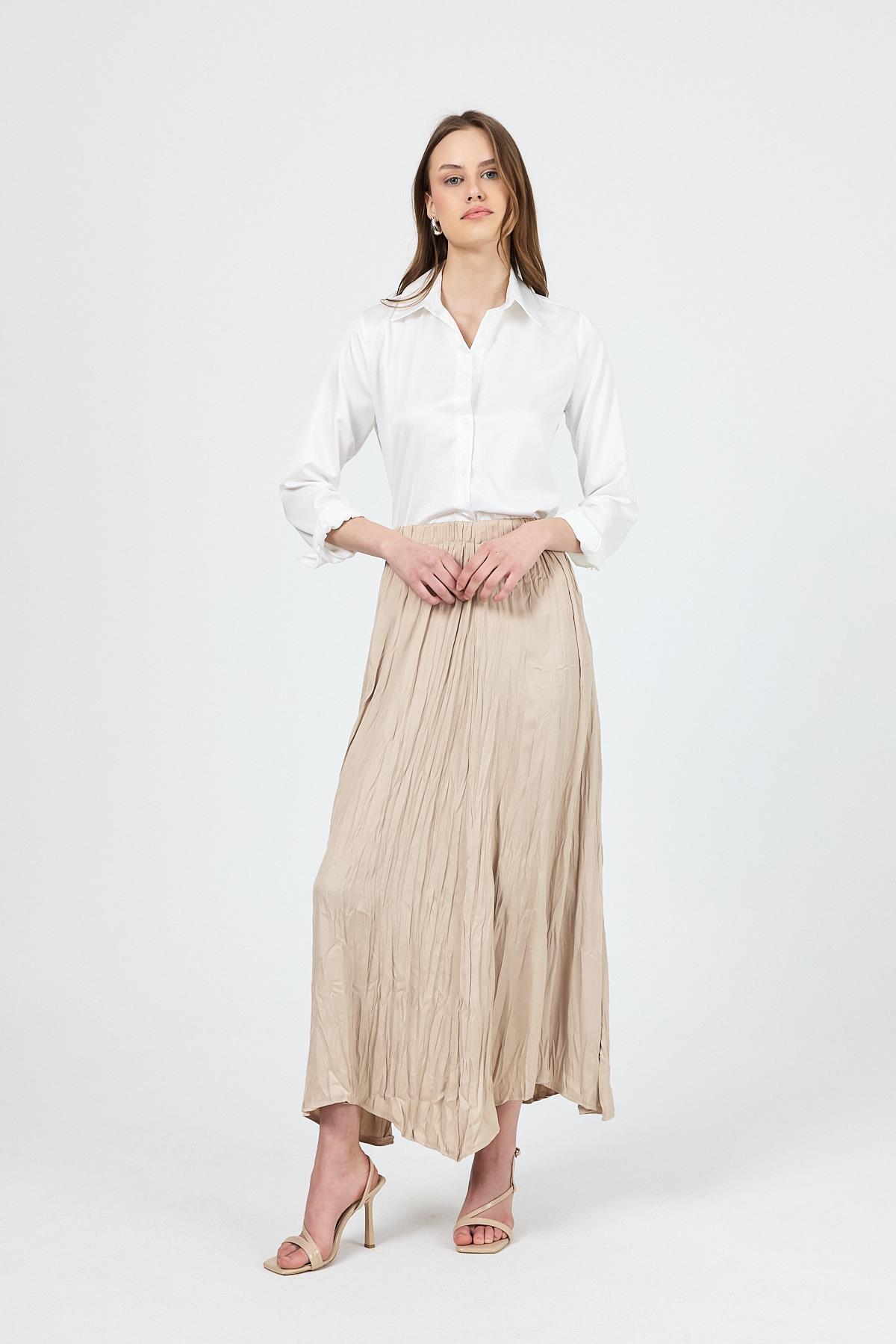 Bej Kraşlı Kırışık Kumaş Etek 9470
