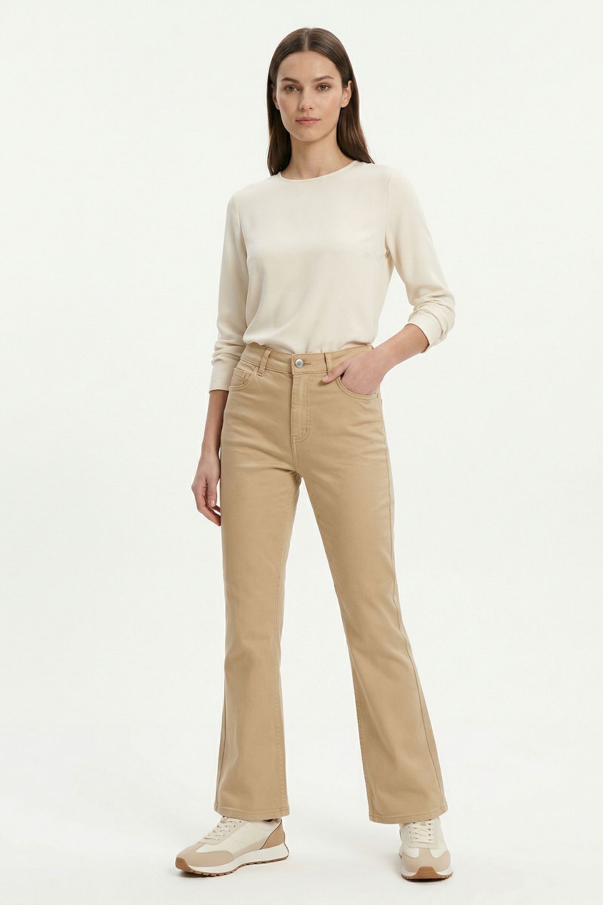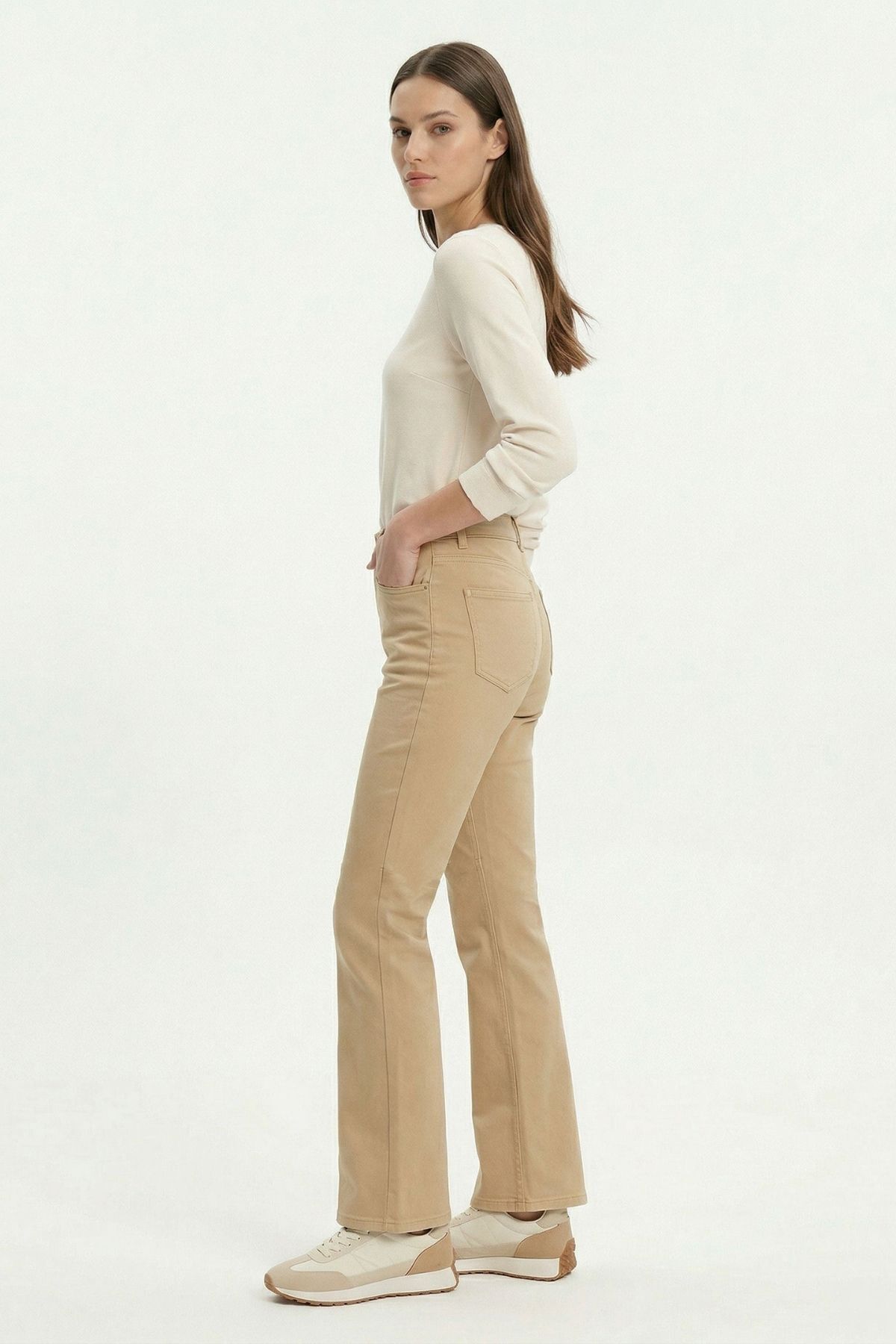 Bej Likralı Palazzo Pantolon 807