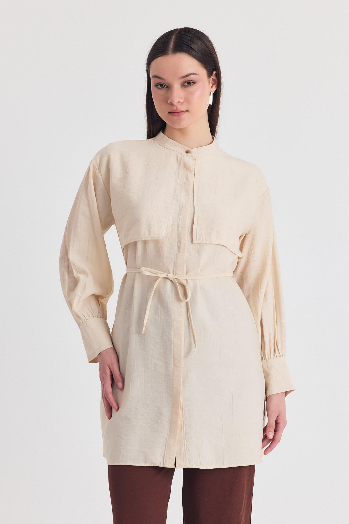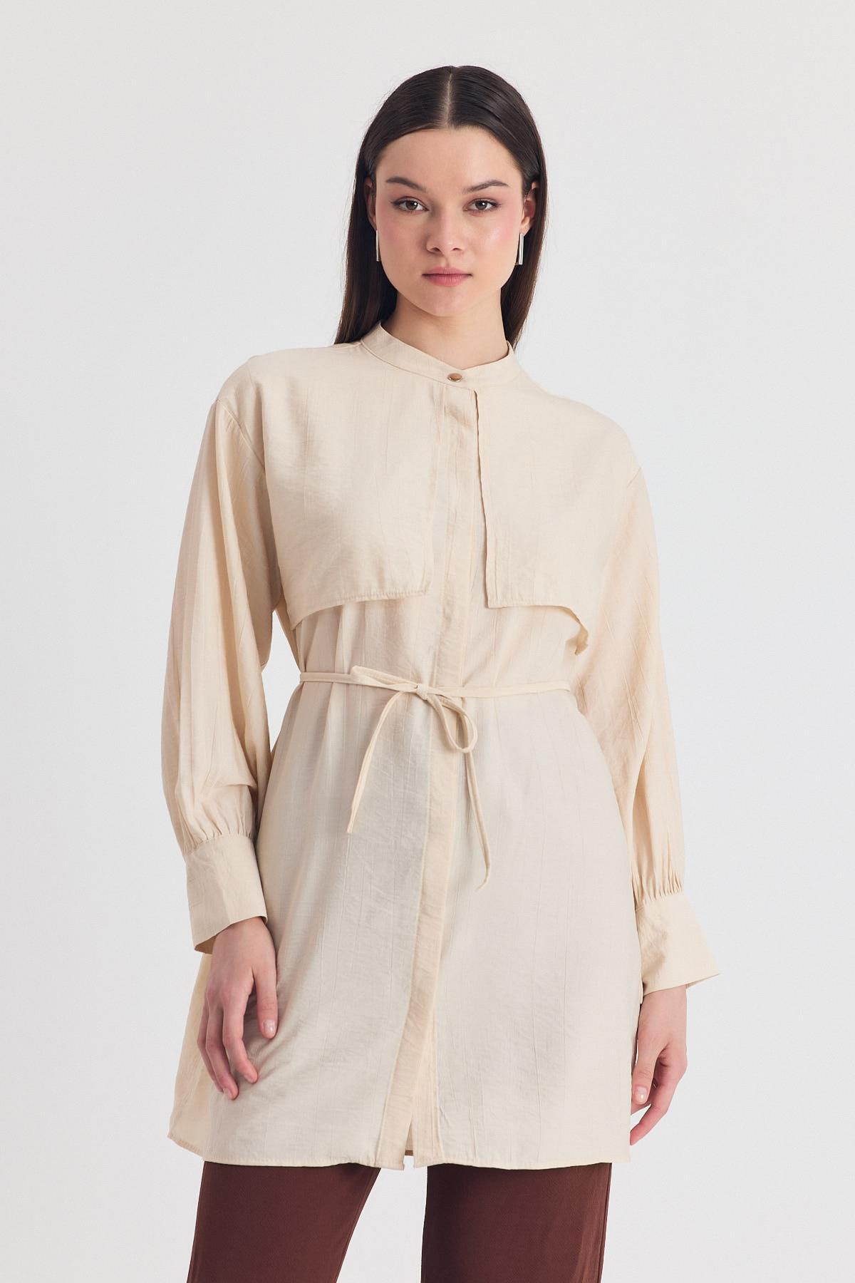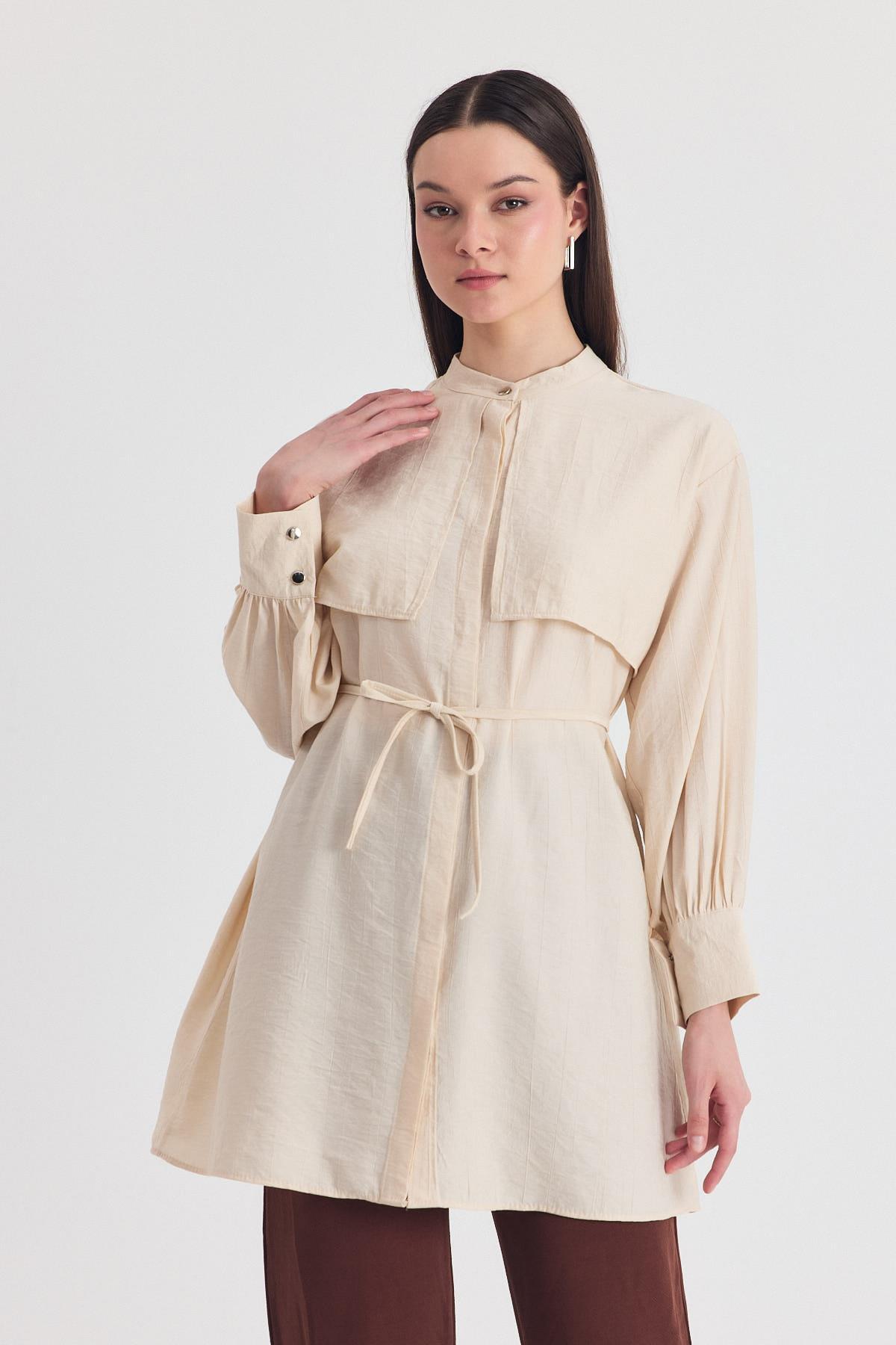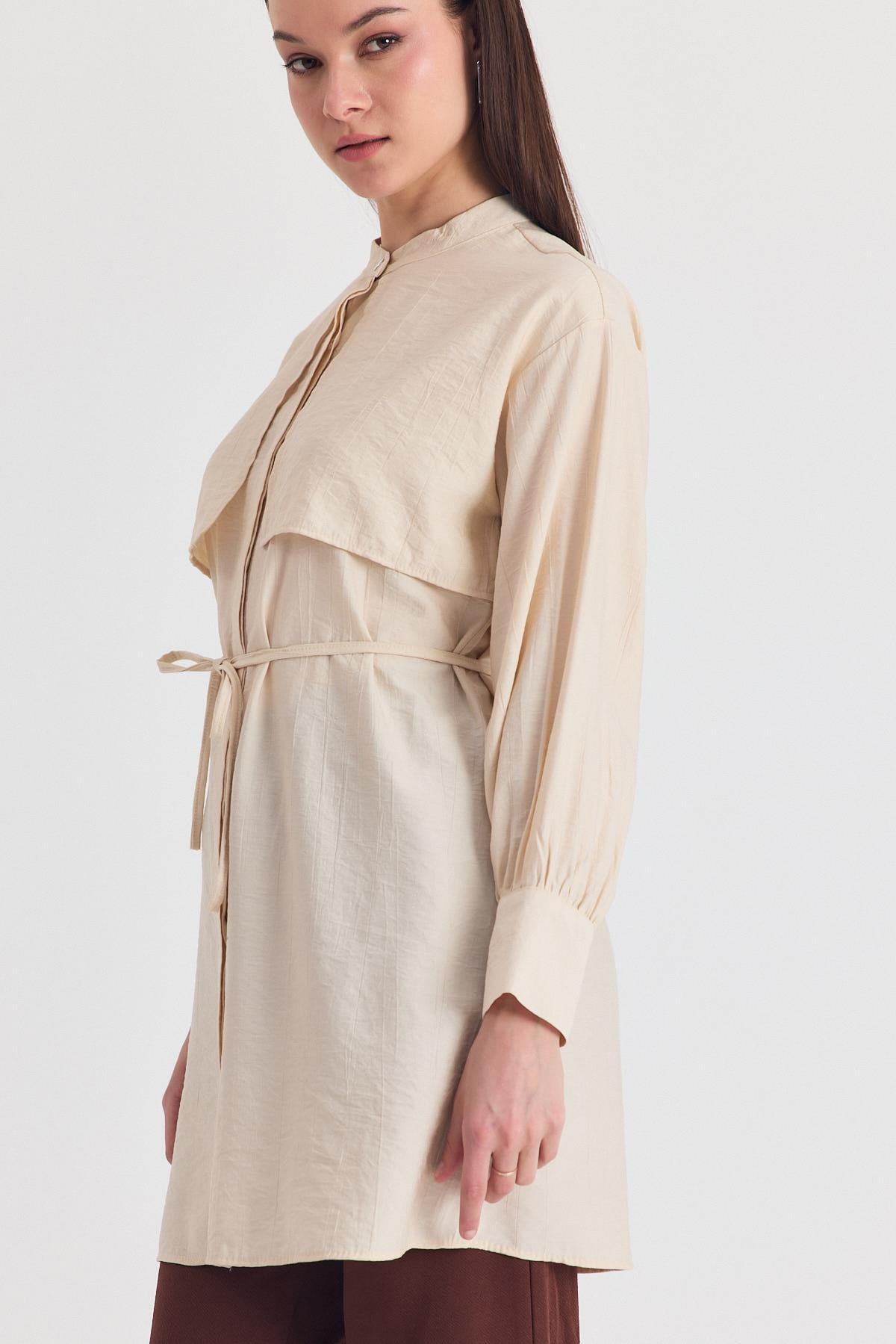 Bej Parça Detaylı İp Bağcıklı Gömlek 4553A