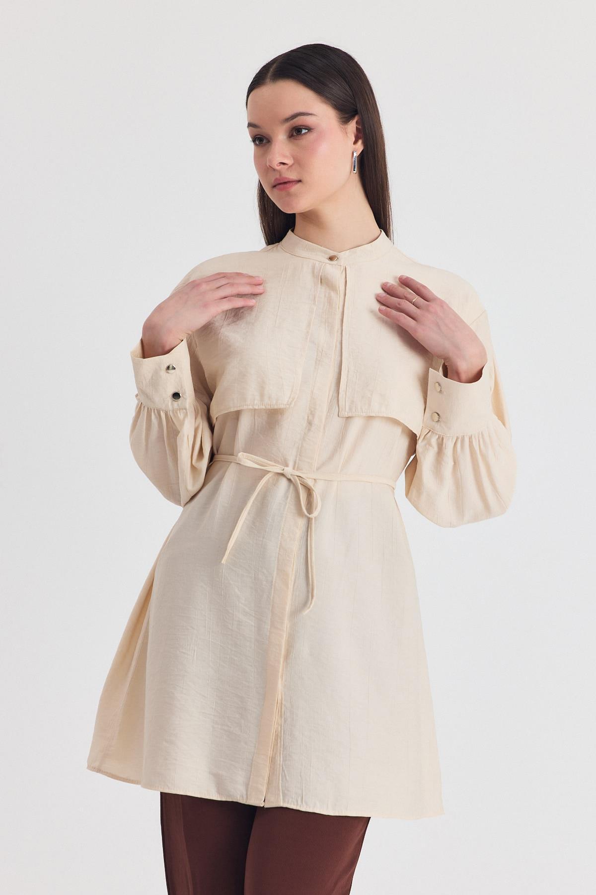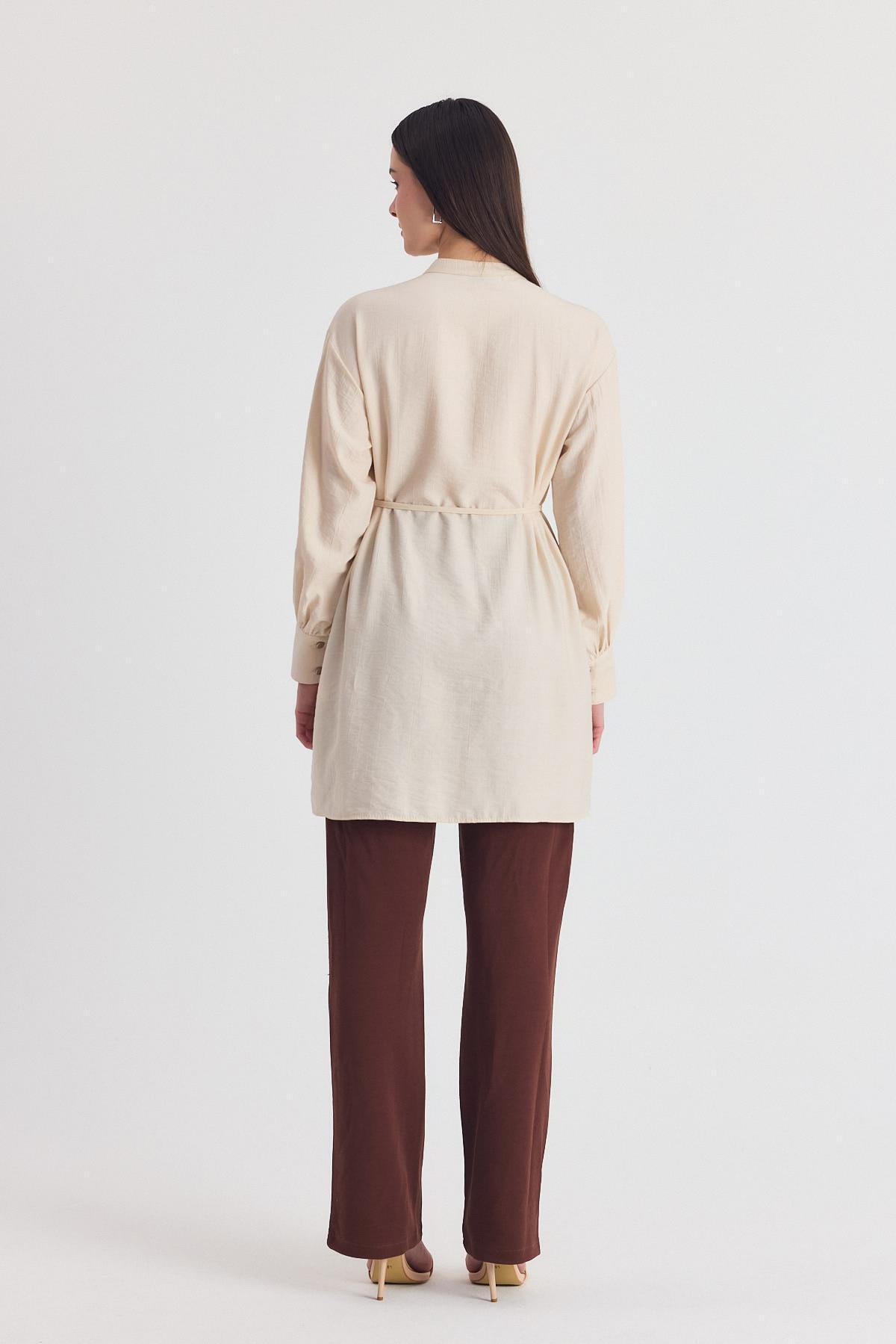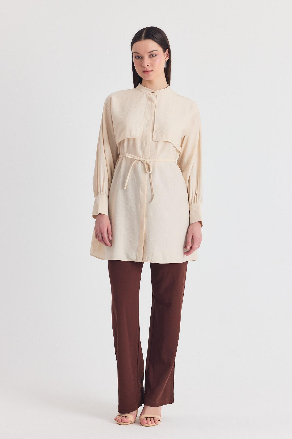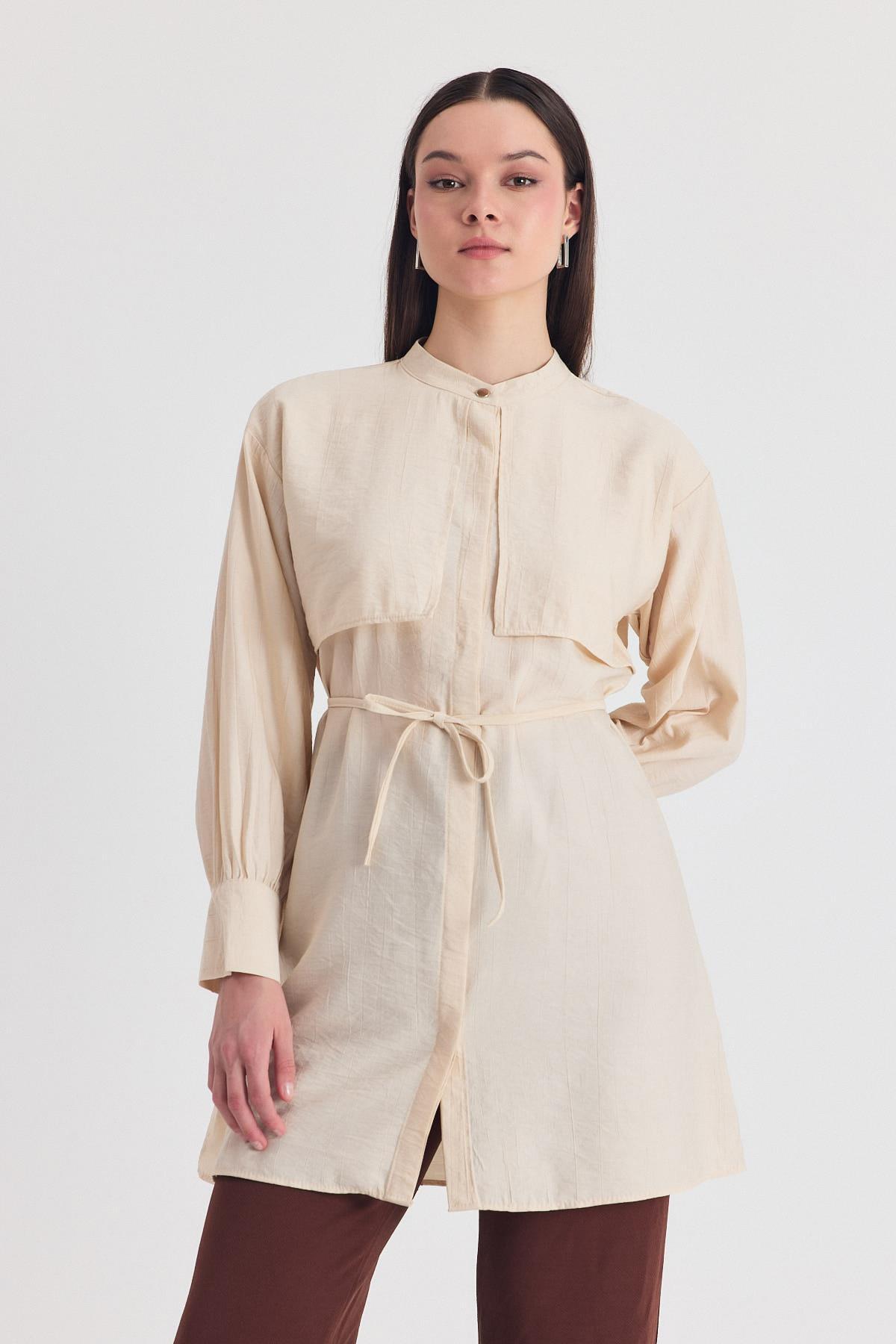 Bej Parça Detaylı İp Bağcıklı Gömlek 4553A