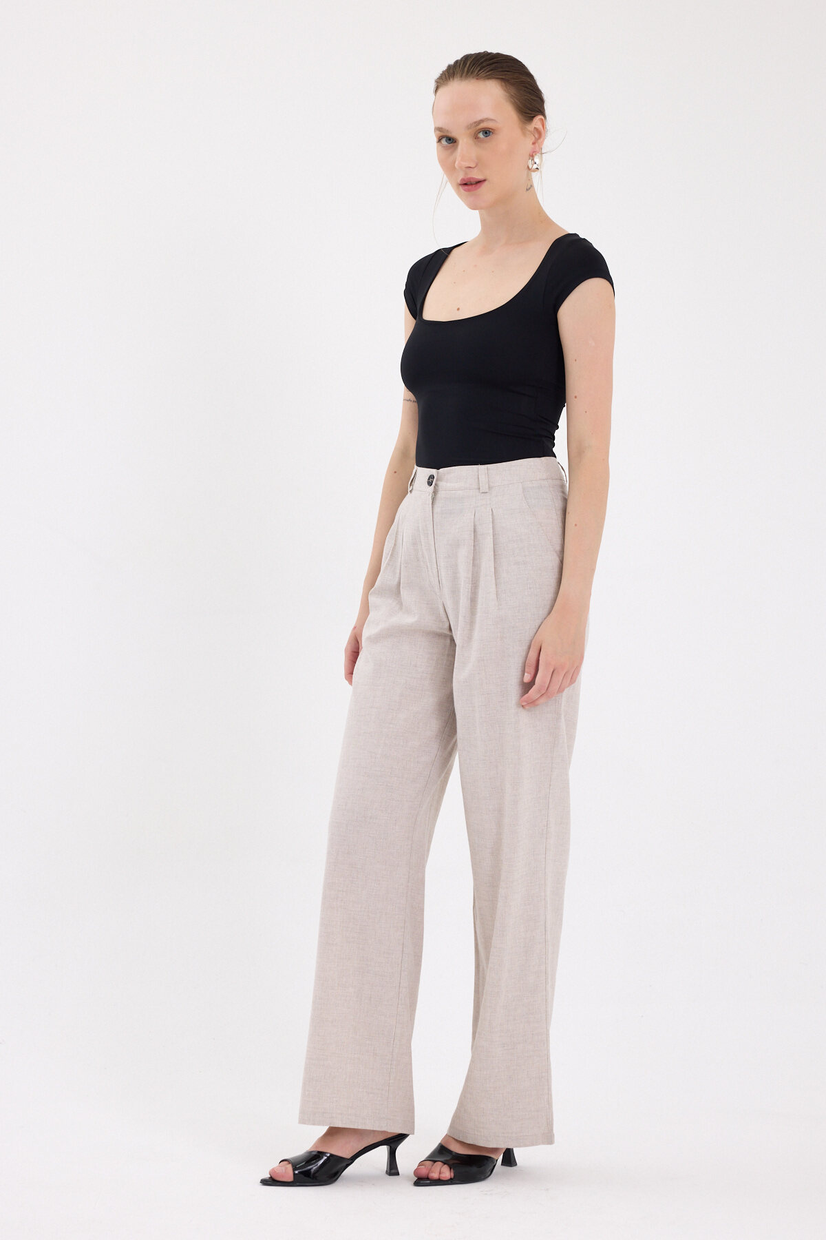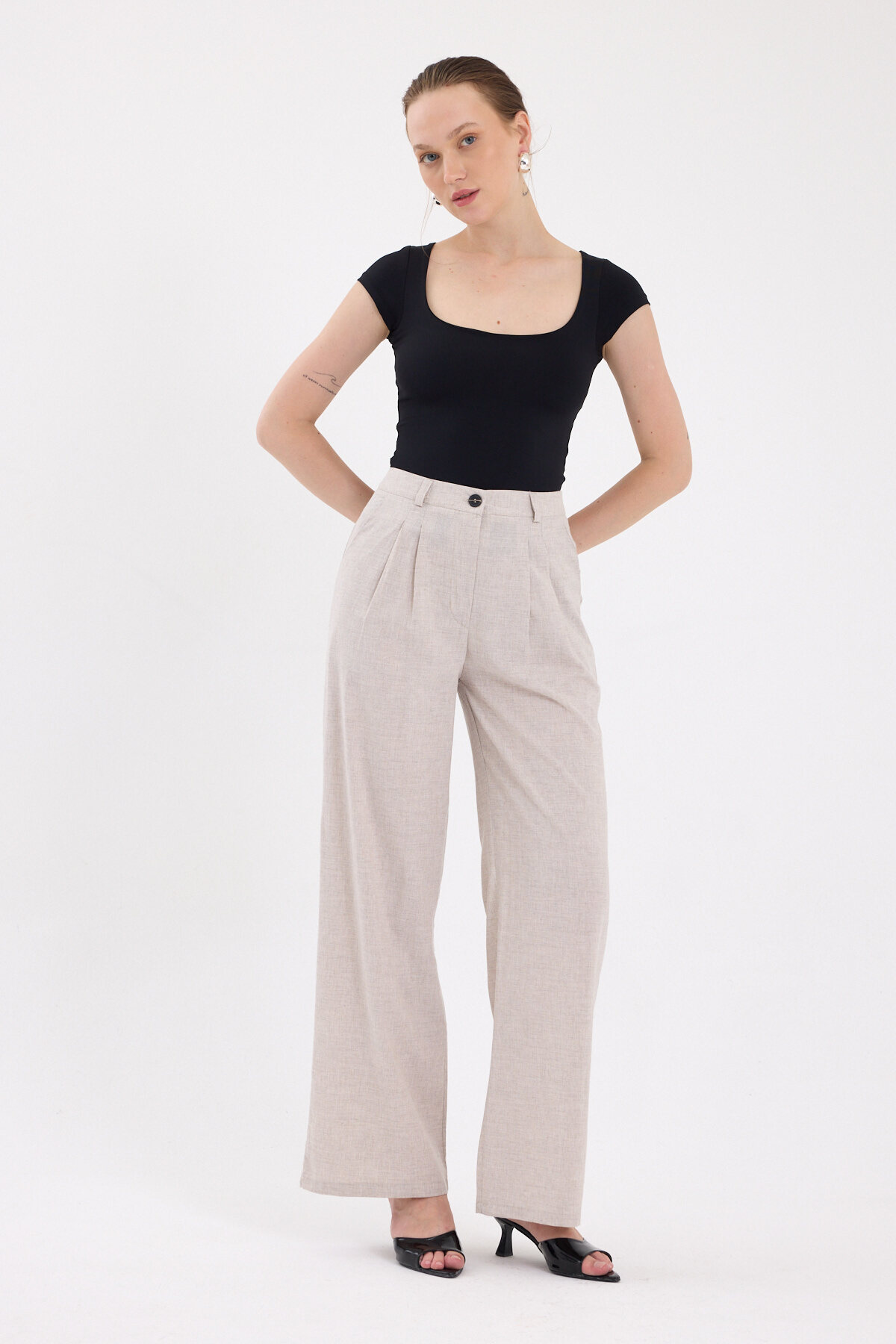 Vizon Pileli Geniş Paça Pantolon 3867 - RAYS Vizon Pileli Geniş Paça Pantolon 3867 - RAYS (1)