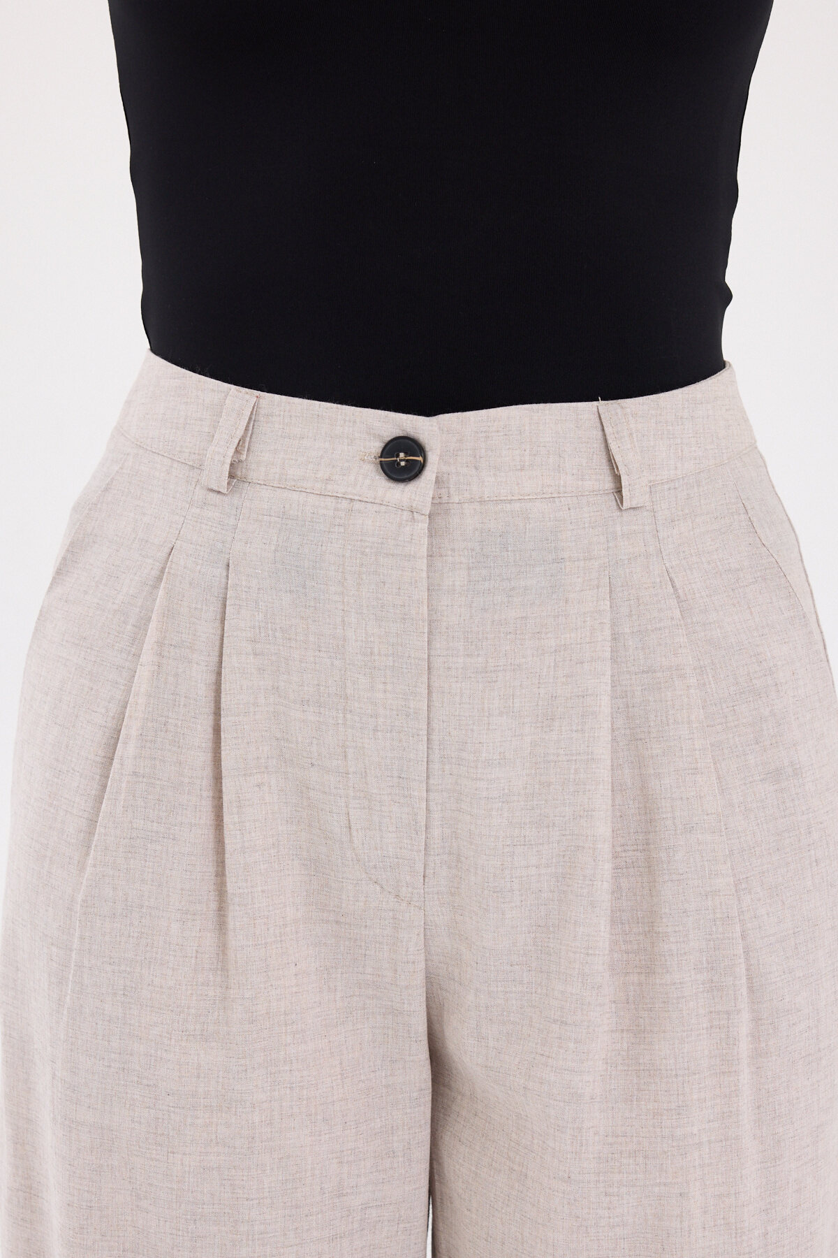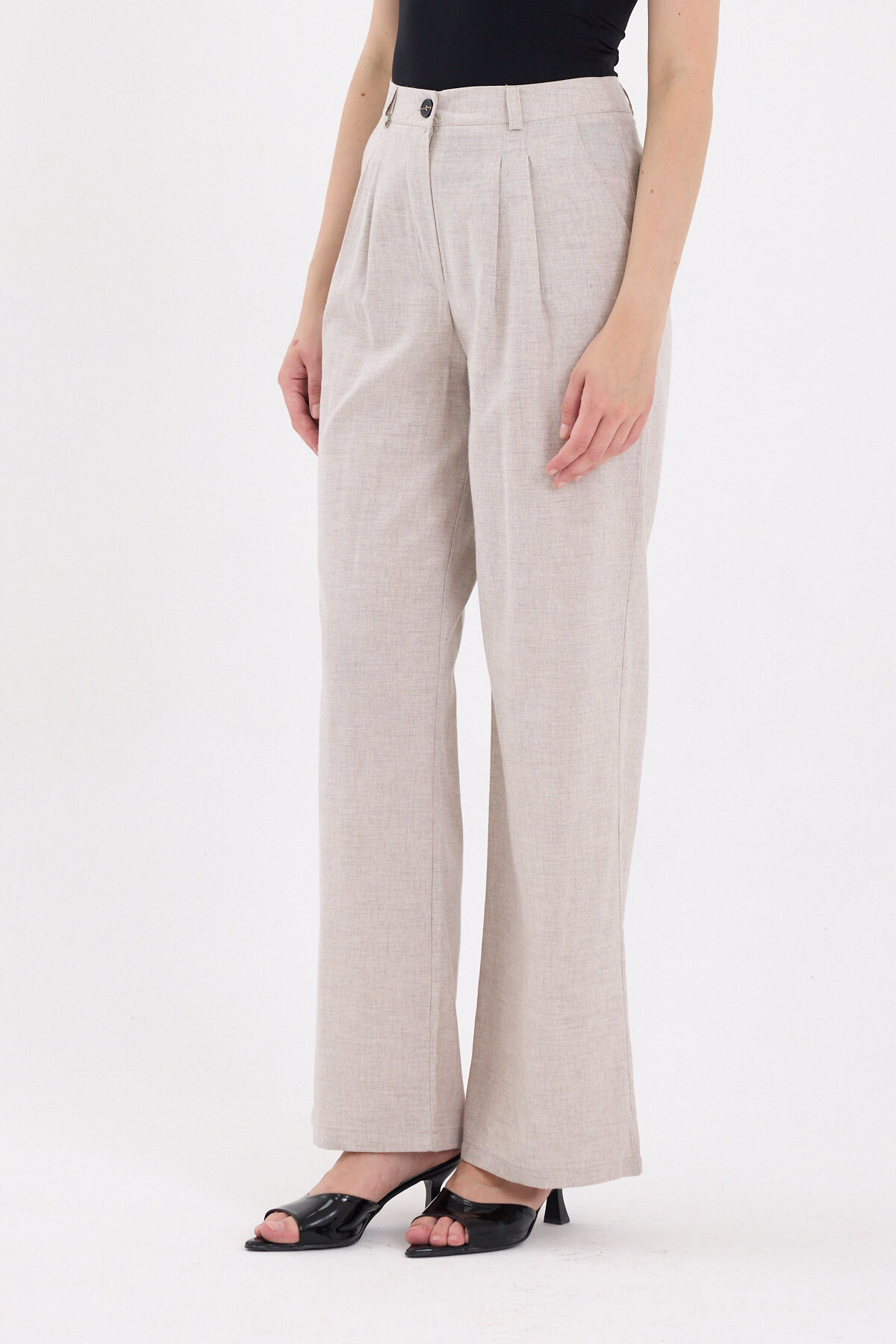 Bej Pileli Palazzo Bol Paça Kadın Pantolon 4755A
