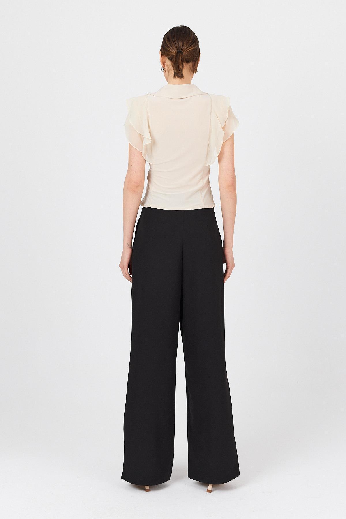 Siyah V Yaka Önü Fırfırlı Dantelli Bluz 8490