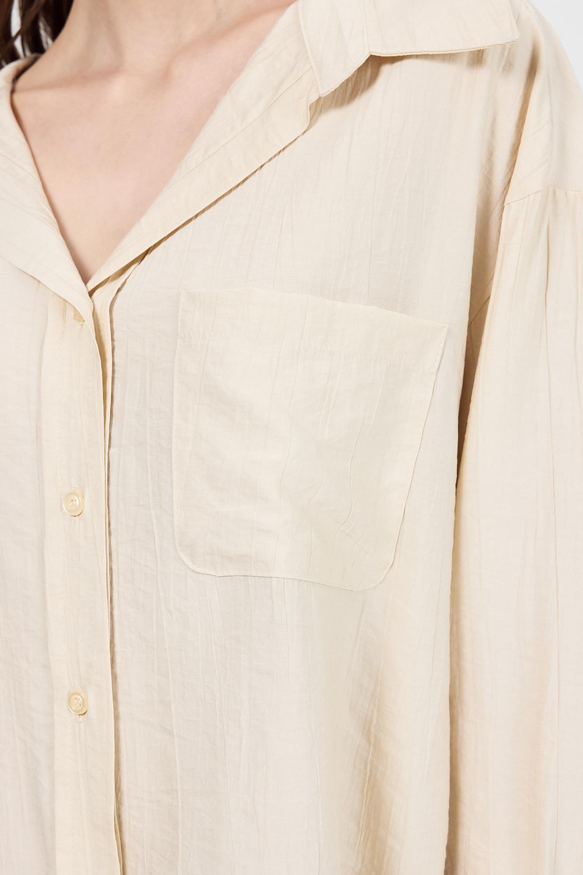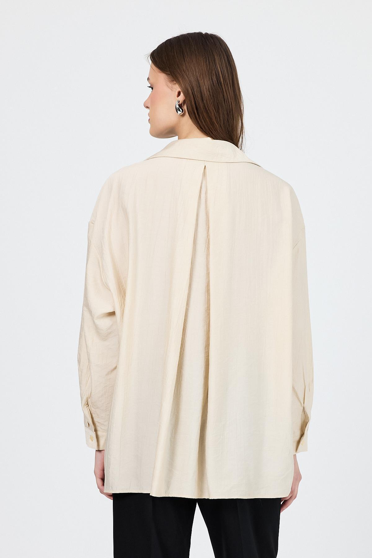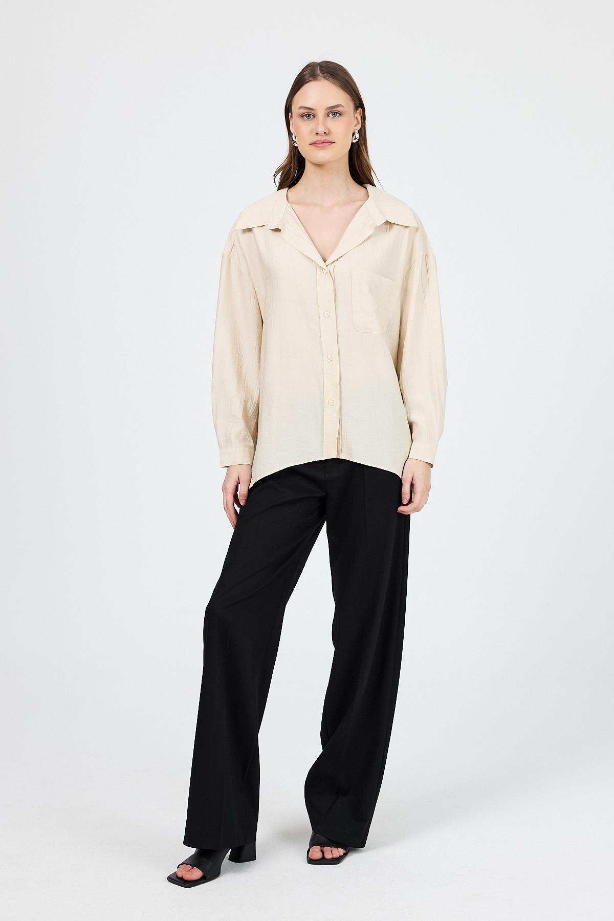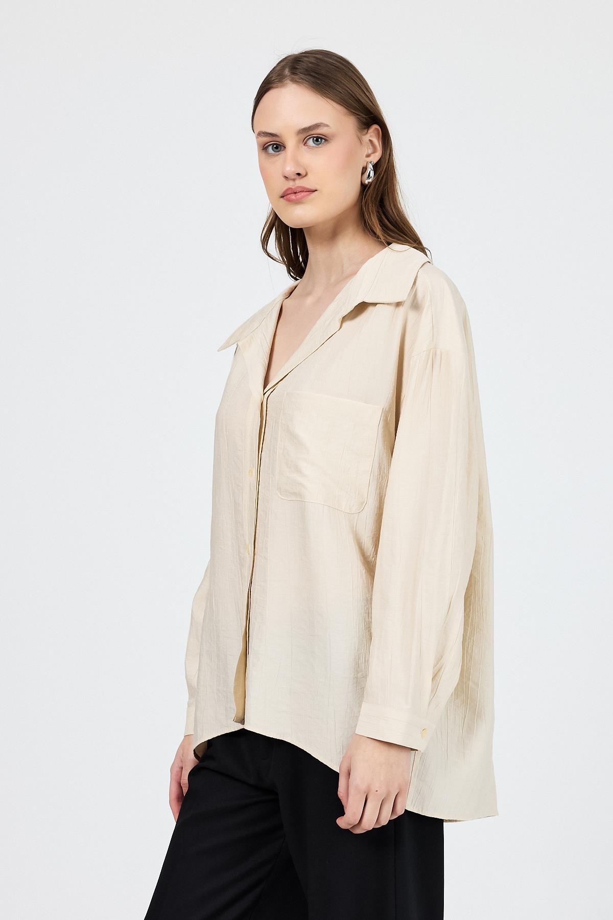 Bej Tek Cep Detaylı Dokuma Gömlek 4641A