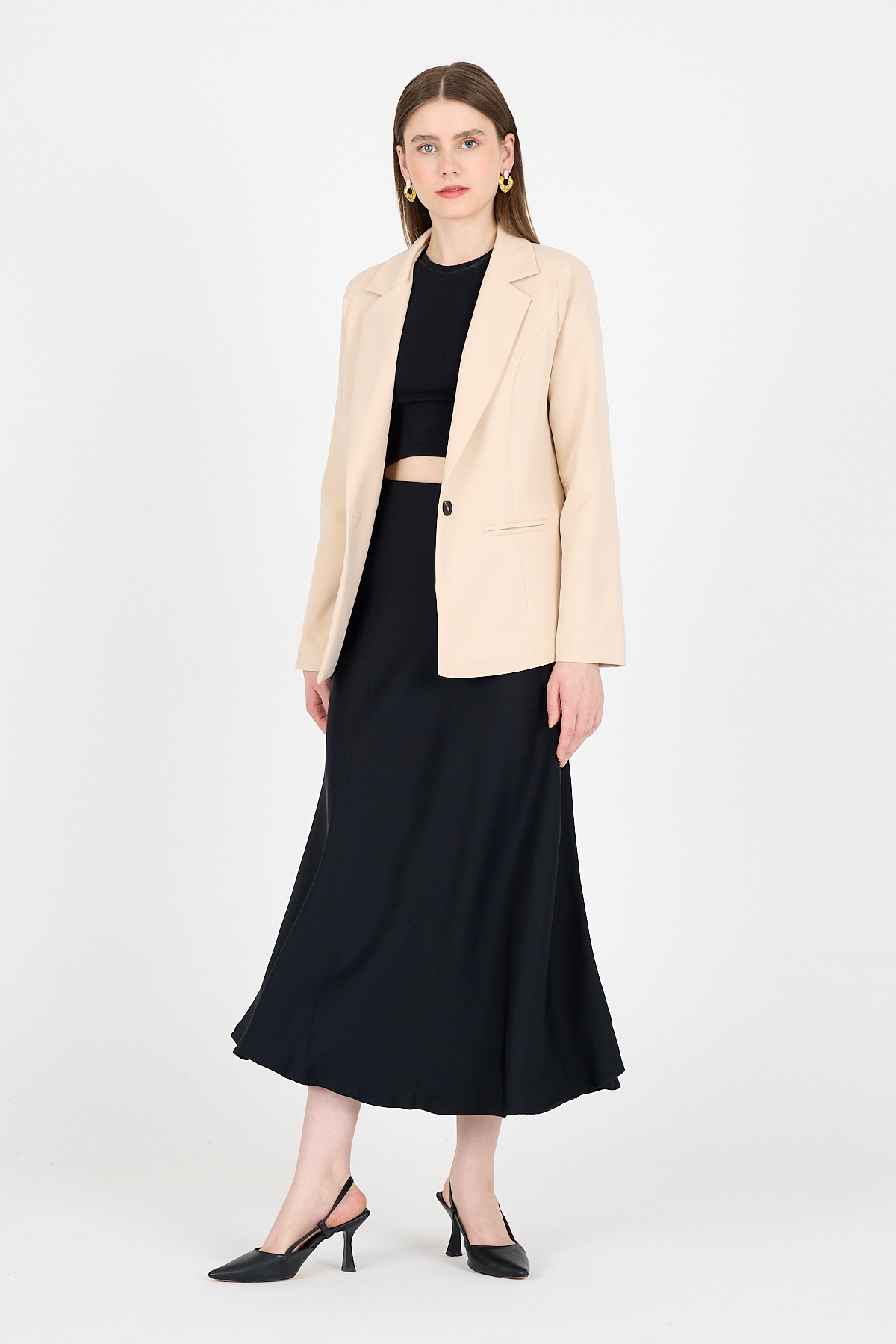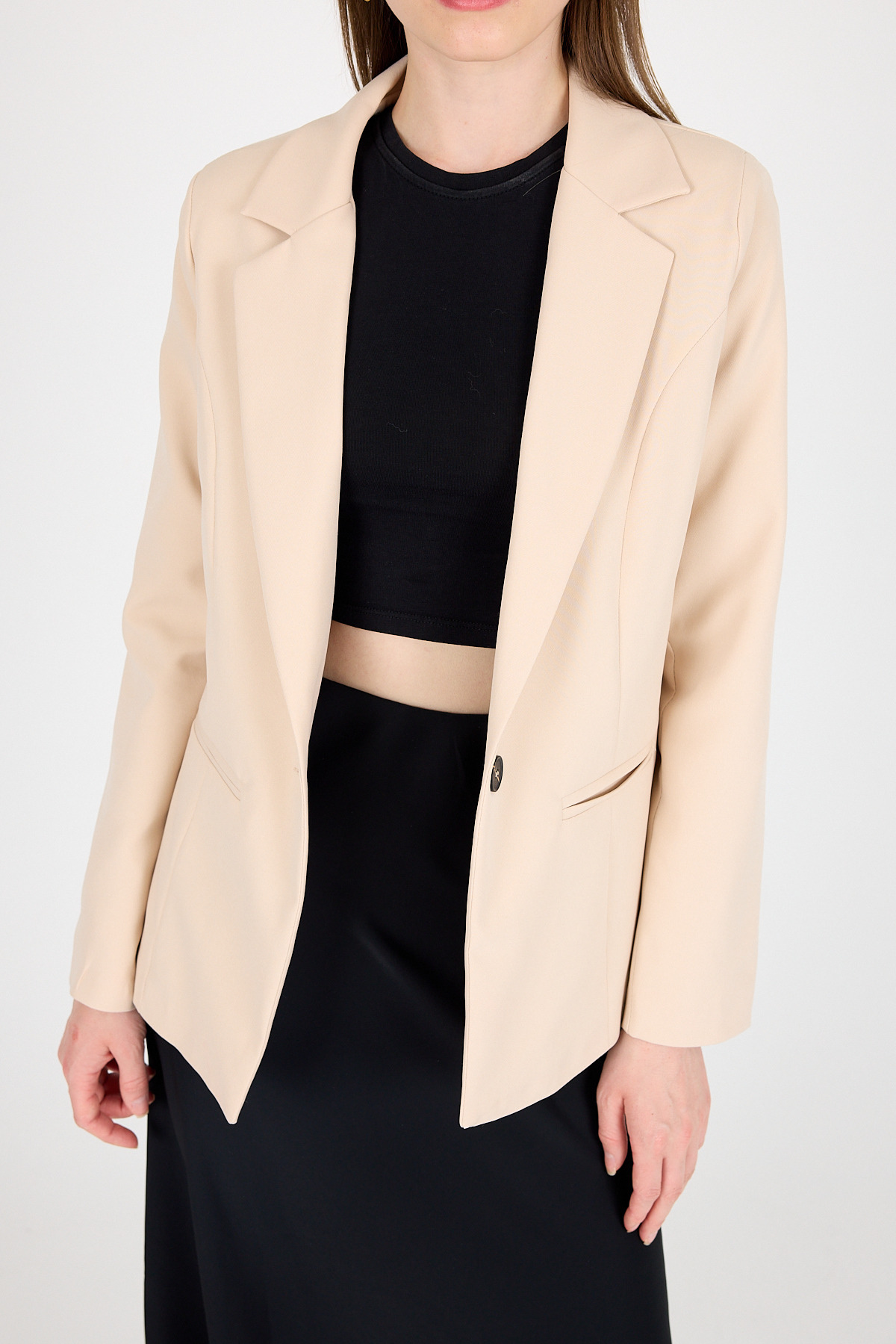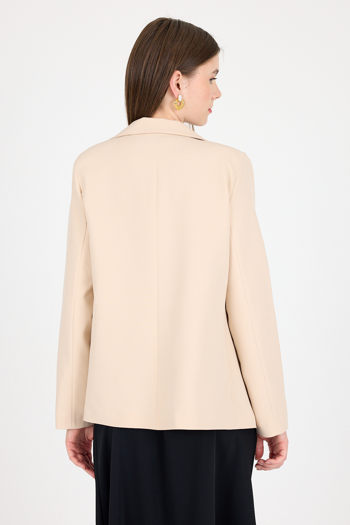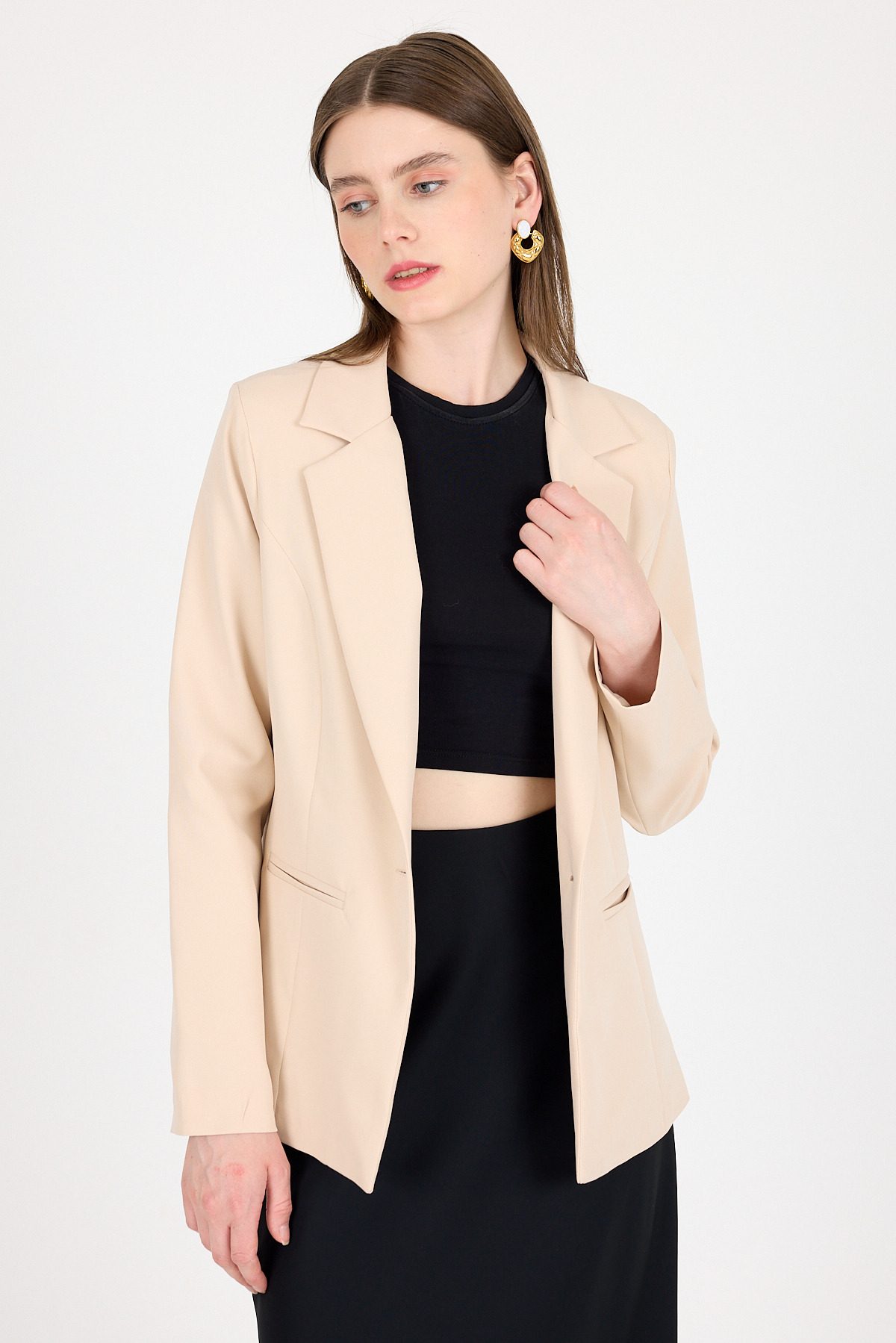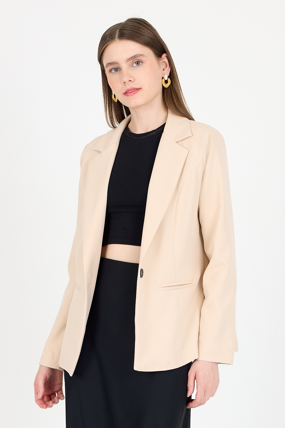Bej Tek Düğmeli Klasik Kebem Blazer Ceket 4612A
