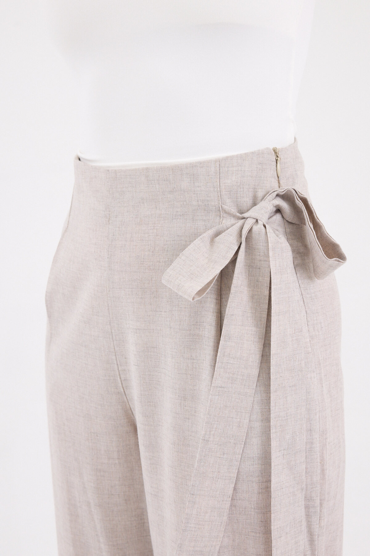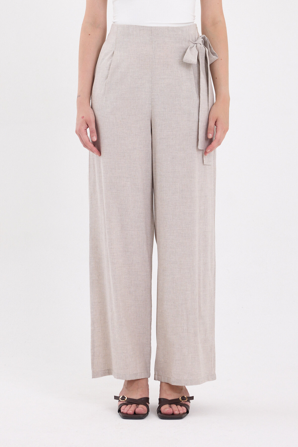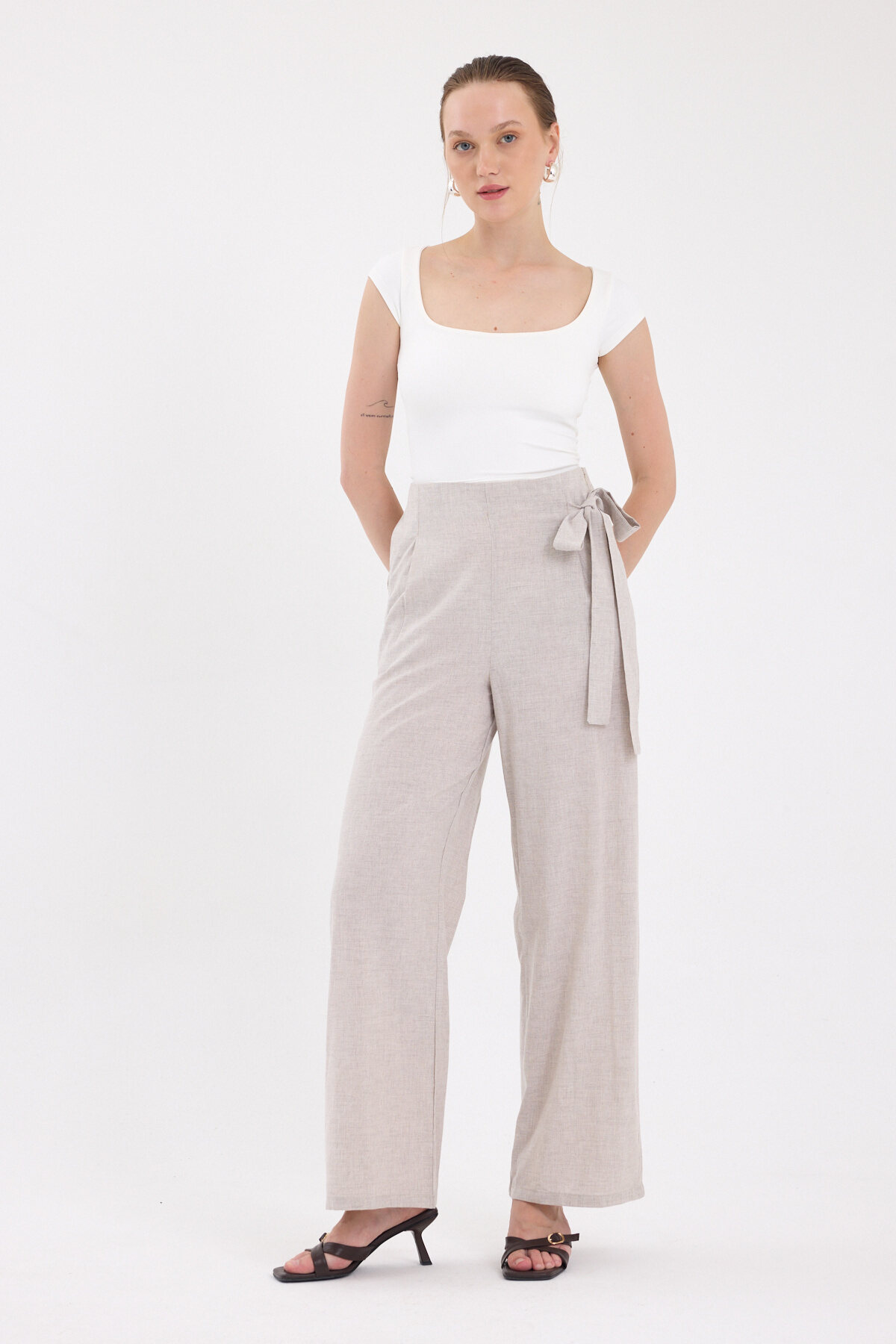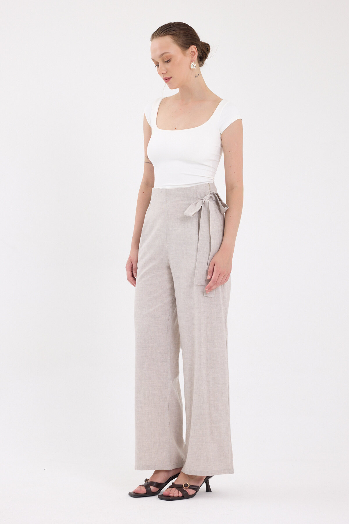Bej Yan Bağlama Detaylı Palazzo Kadın Pantolon 4779A