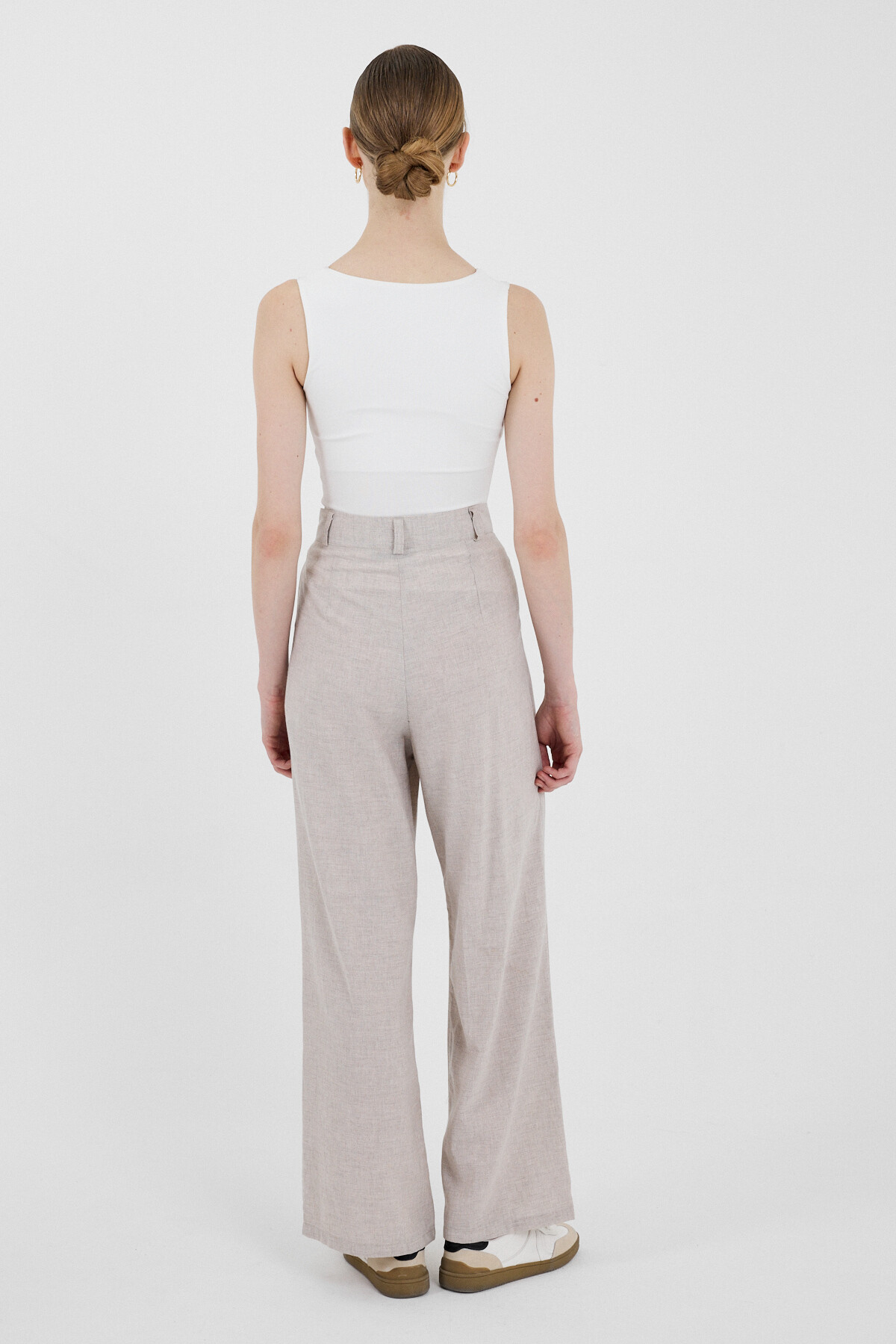 Bej Yüksek Bel Cırt Kapama Detaylı Pamuklu Palazzo Pantolon 8062A