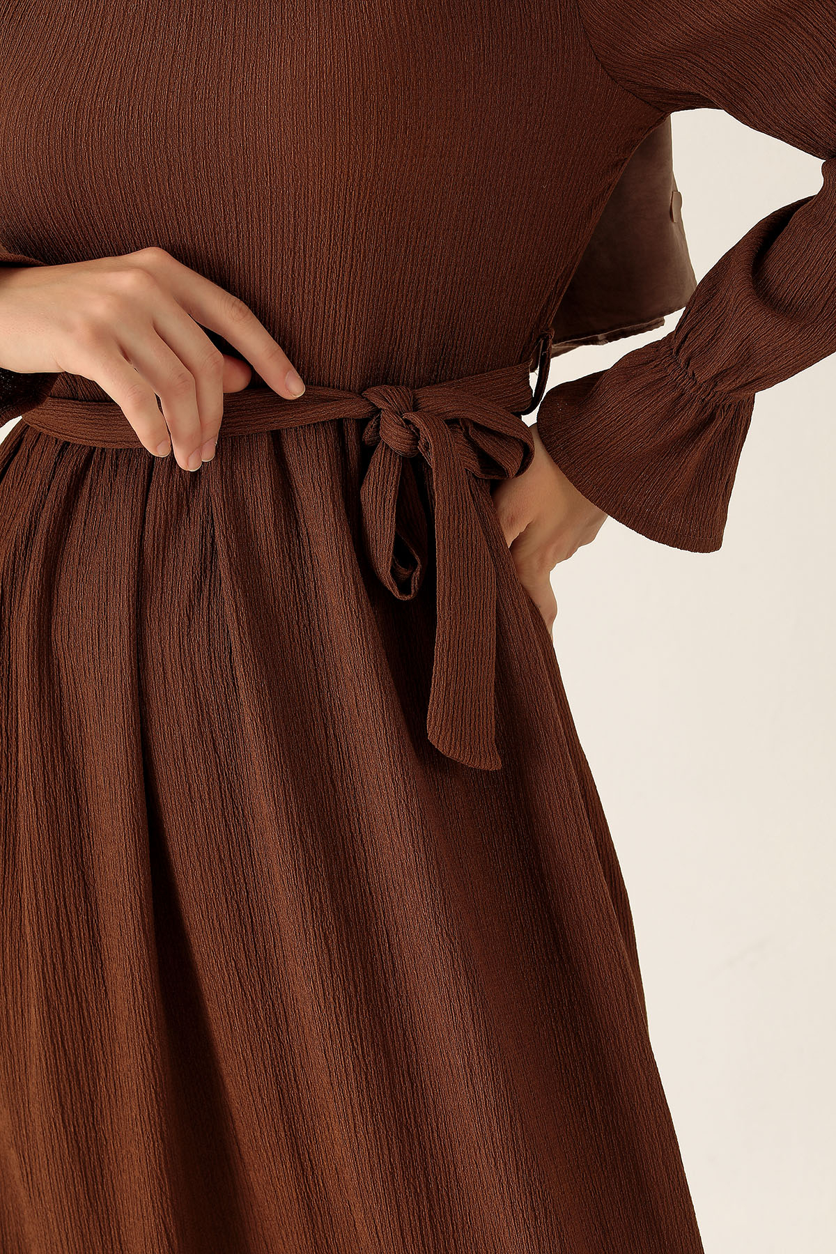 Bel Kuşaklı Elbise - 2613 Acı Kahve