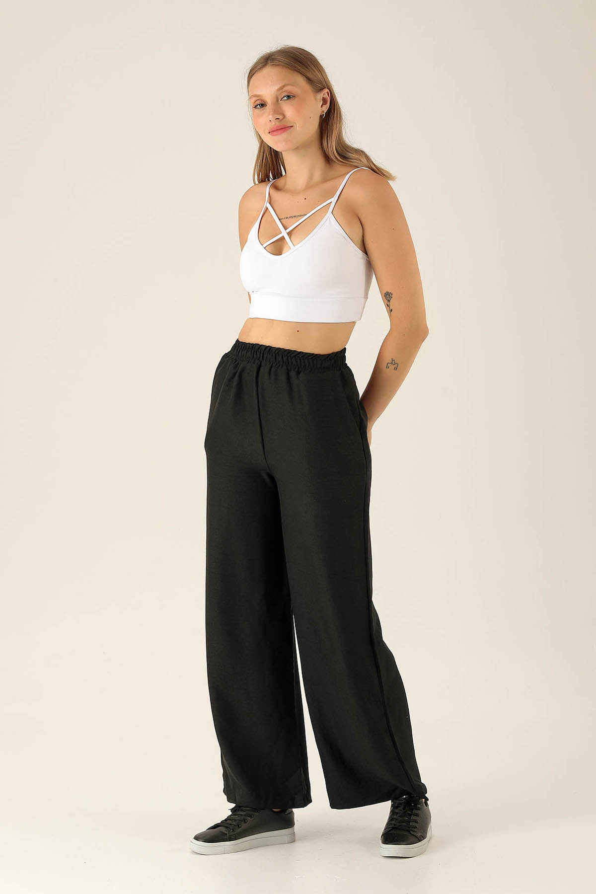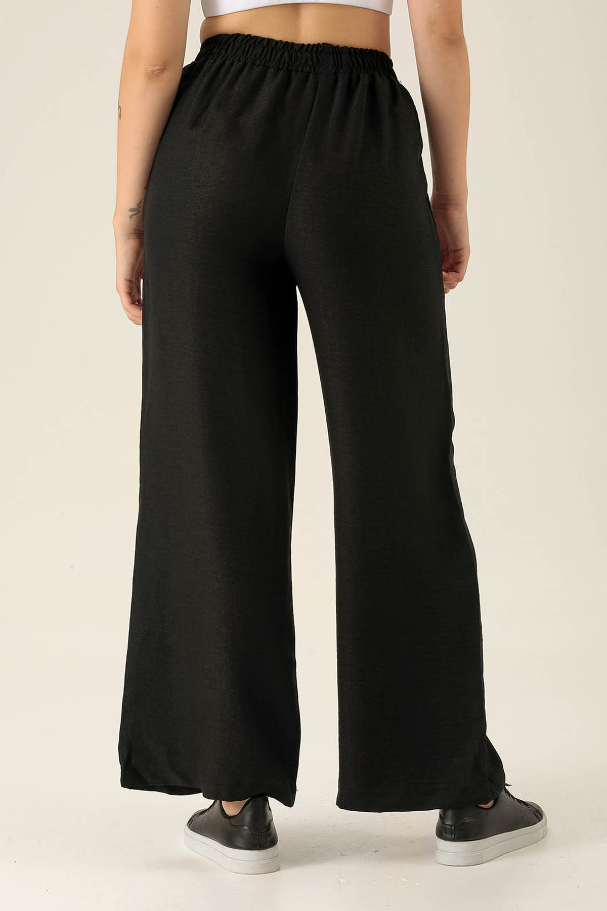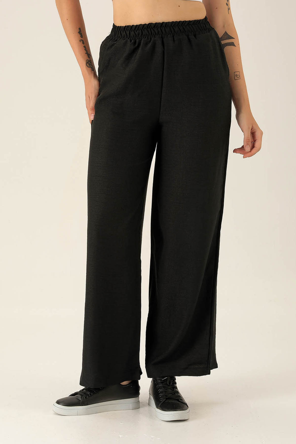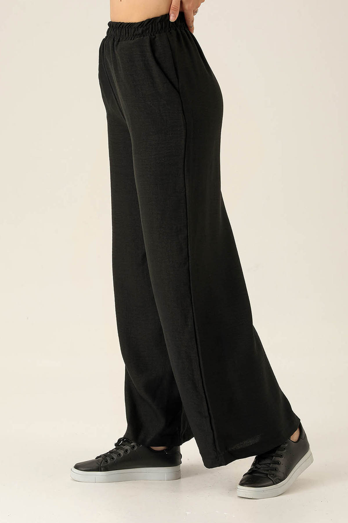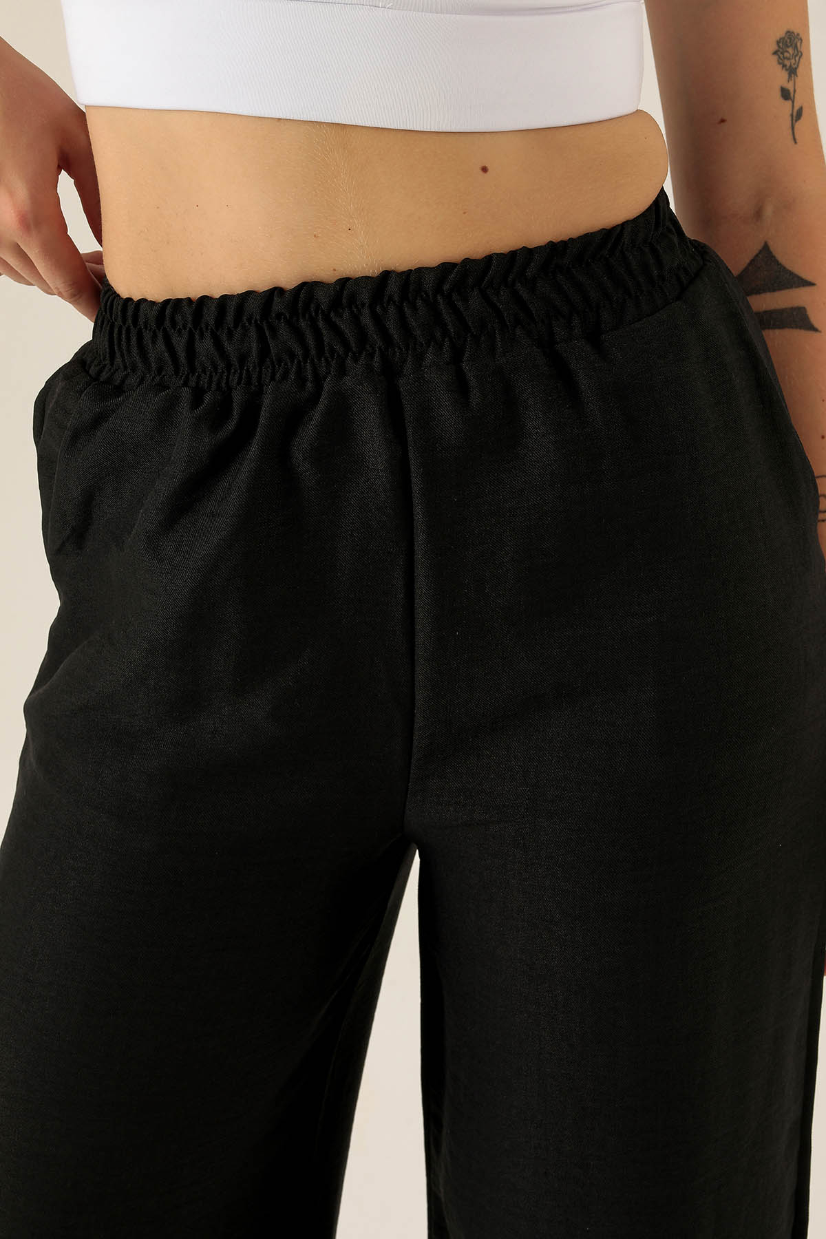Bel Lastikli Keten Bayan Pantolon - 1836 Siyah