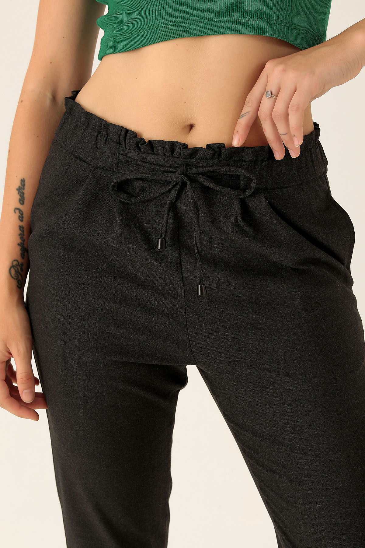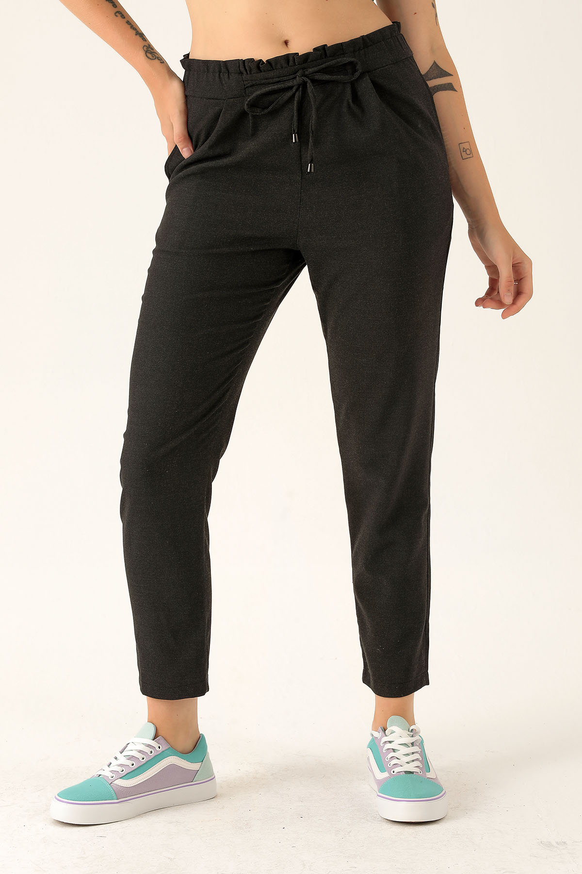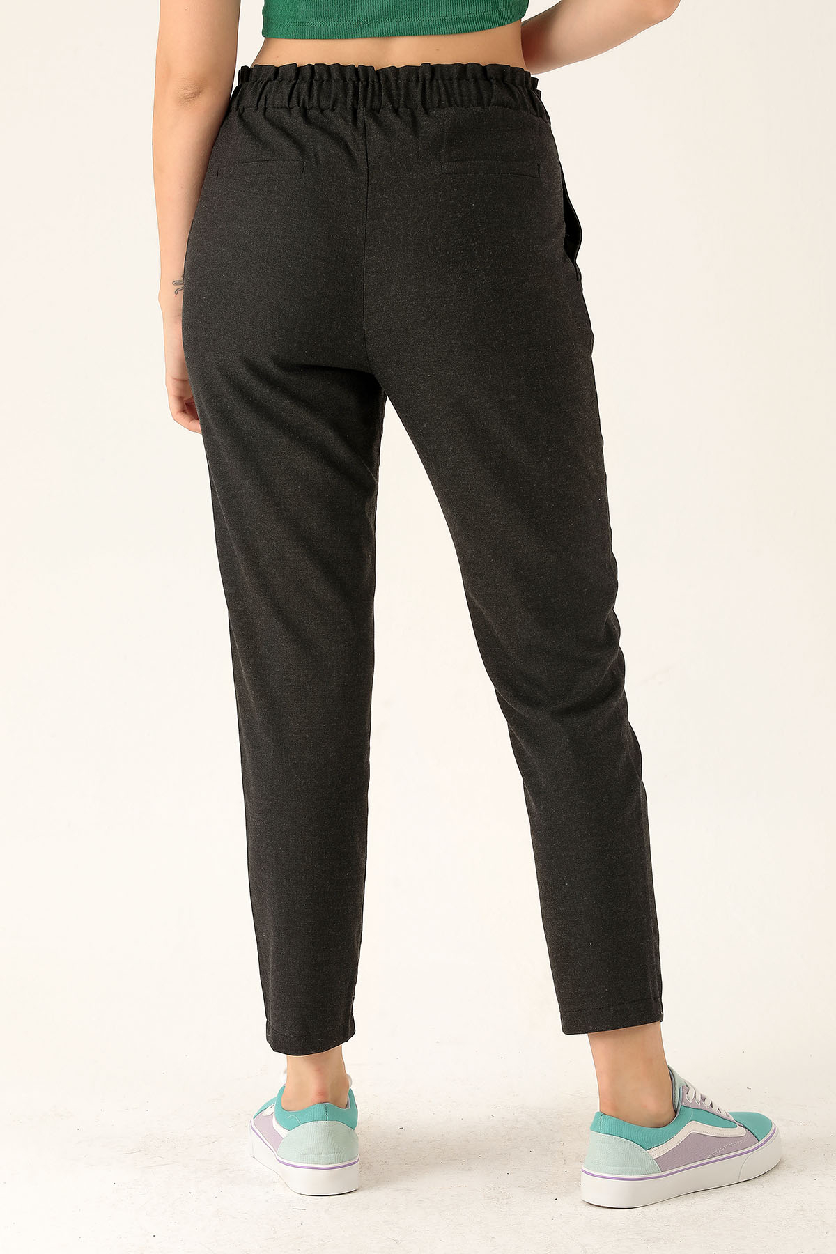 Beli Fırfırlı Pile Detay Bayan Pantolon - 6608A Antrasit