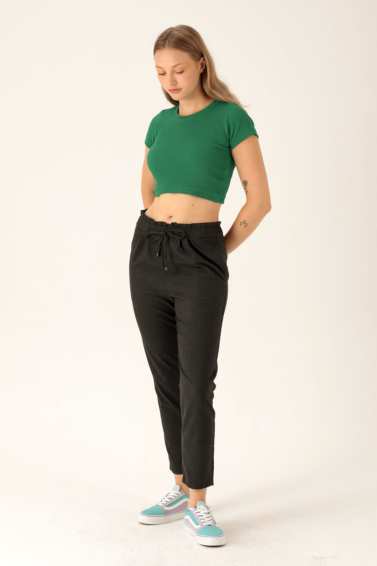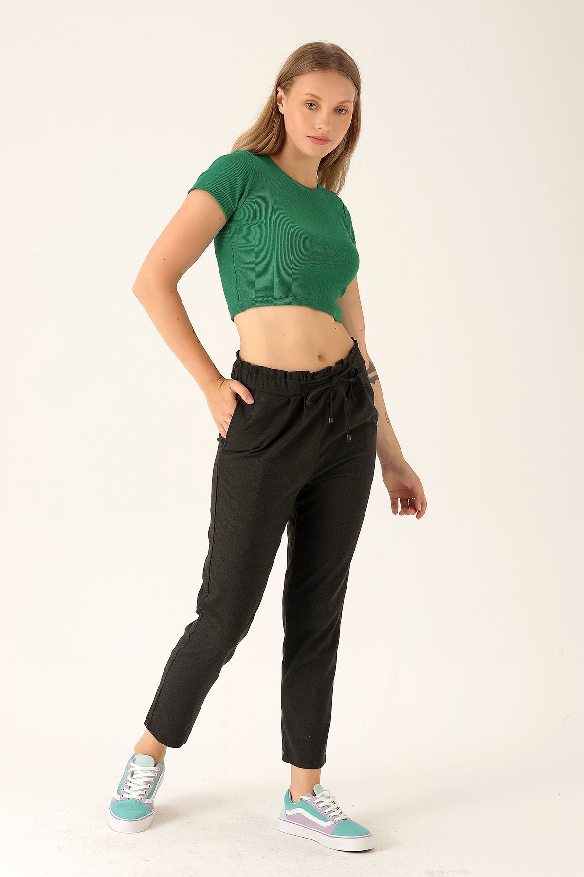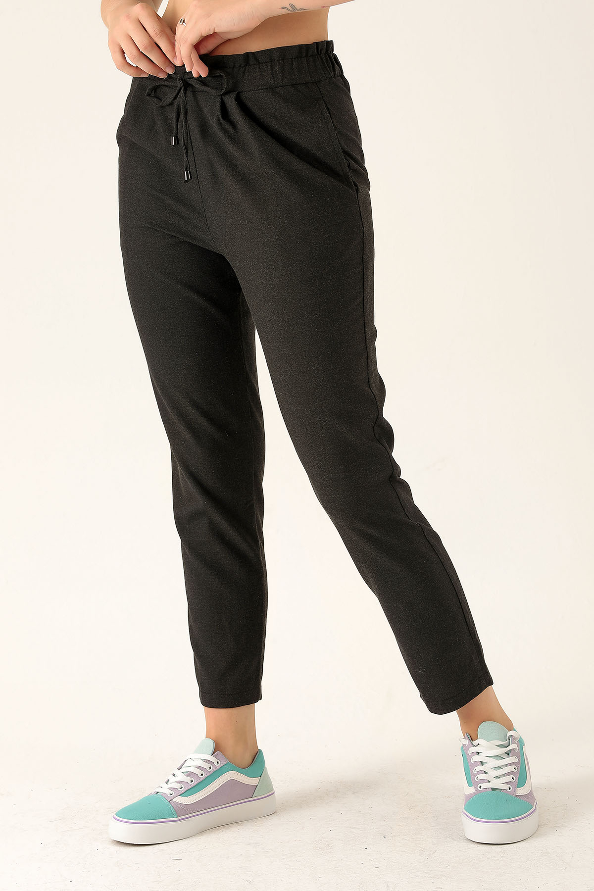 Beli Fırfırlı Pile Detay Bayan Pantolon - 6608A Antrasit