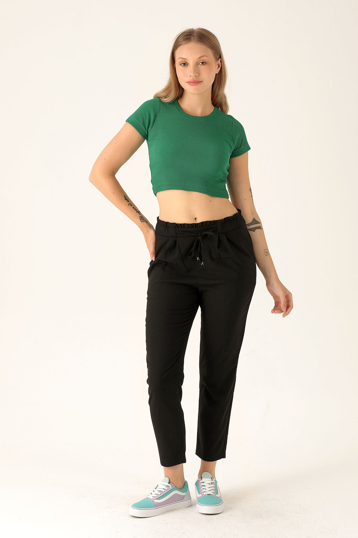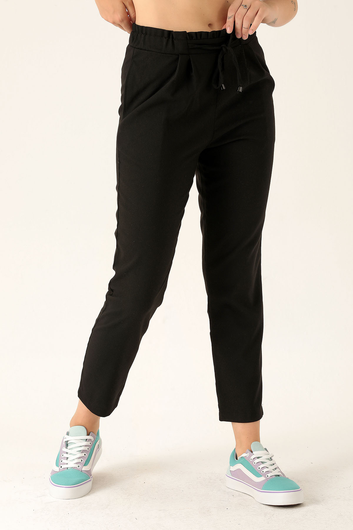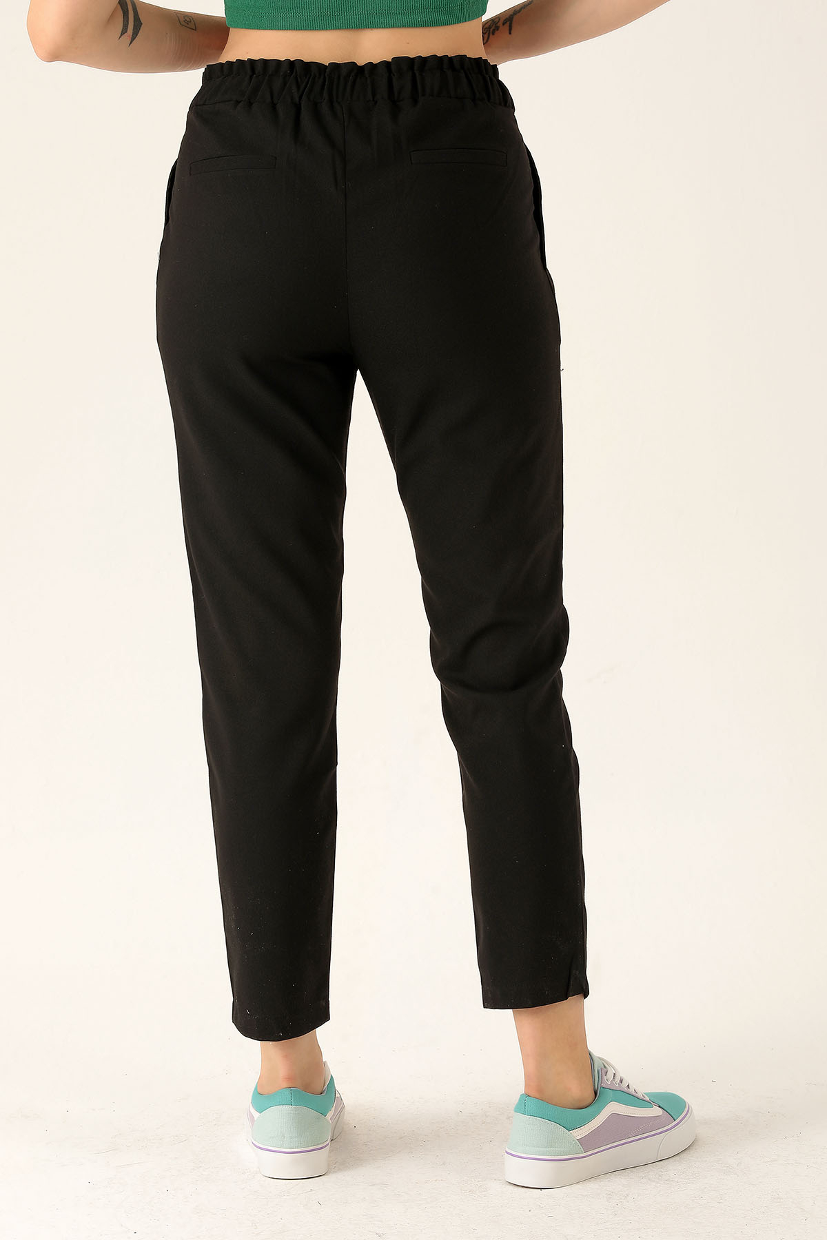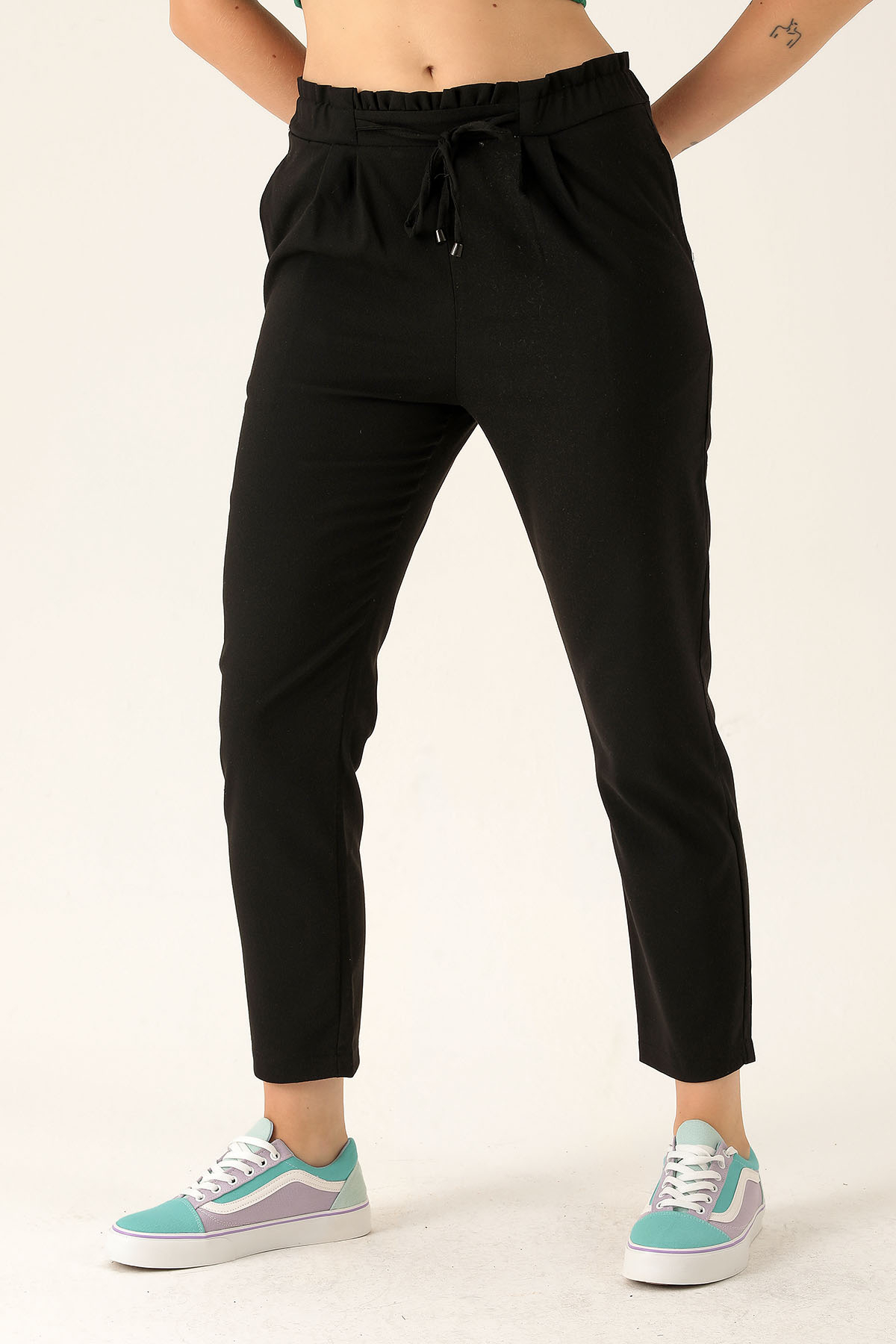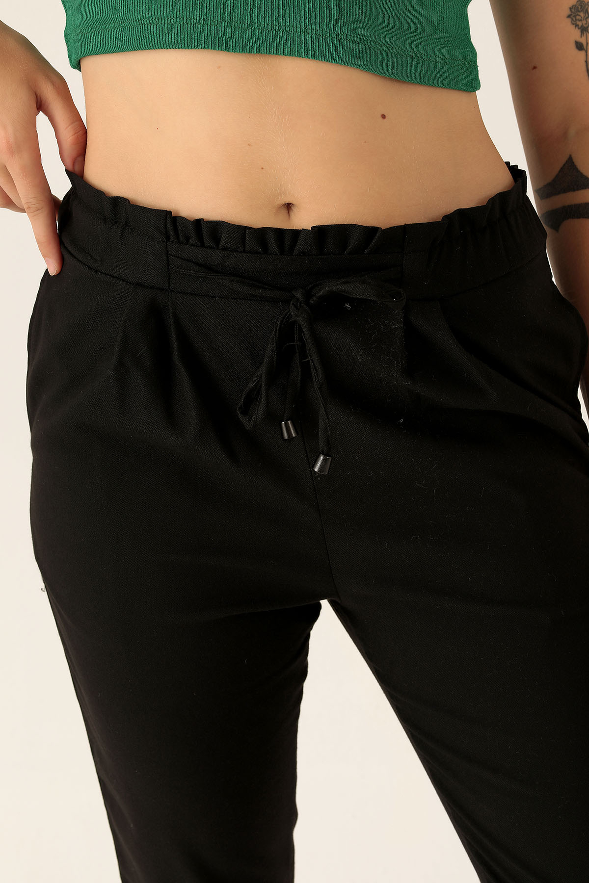 Beli Fırfırlı Pile Detay Bayan Pantolon - 6608A Siyah
