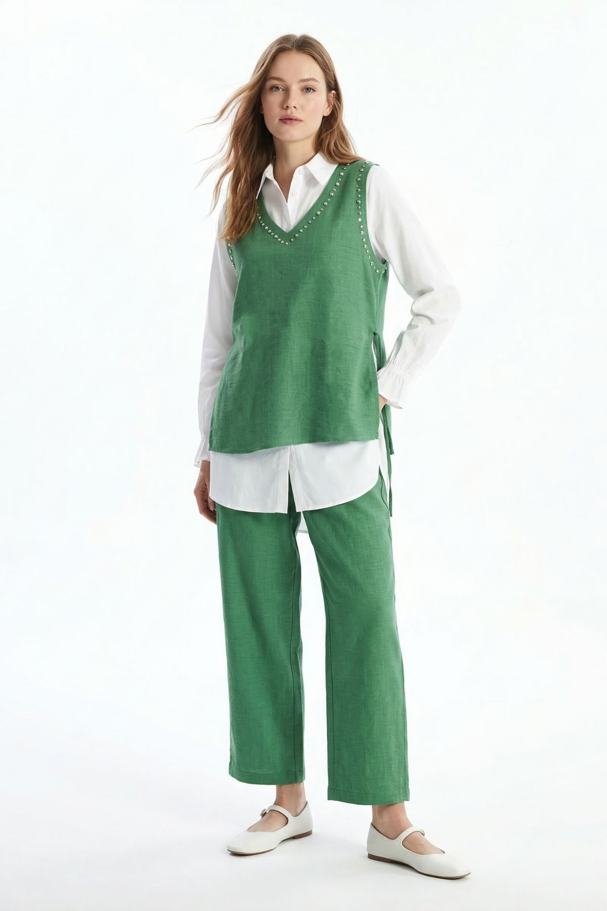 Benetton Yeşili Taş Detay 3'lü Takım 4053A