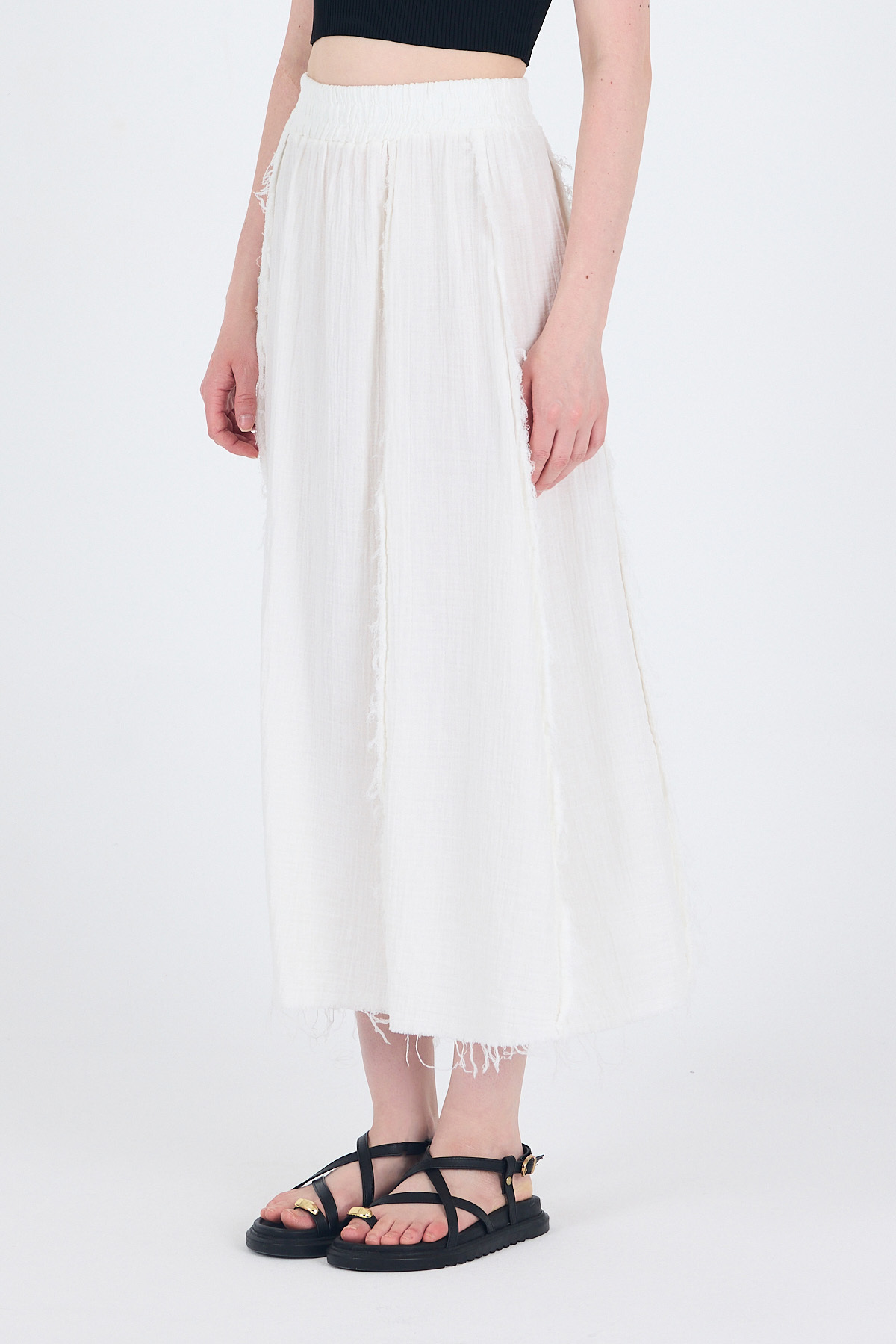 Beyaz %100 Pamuk Müslin Midi Etek 7038