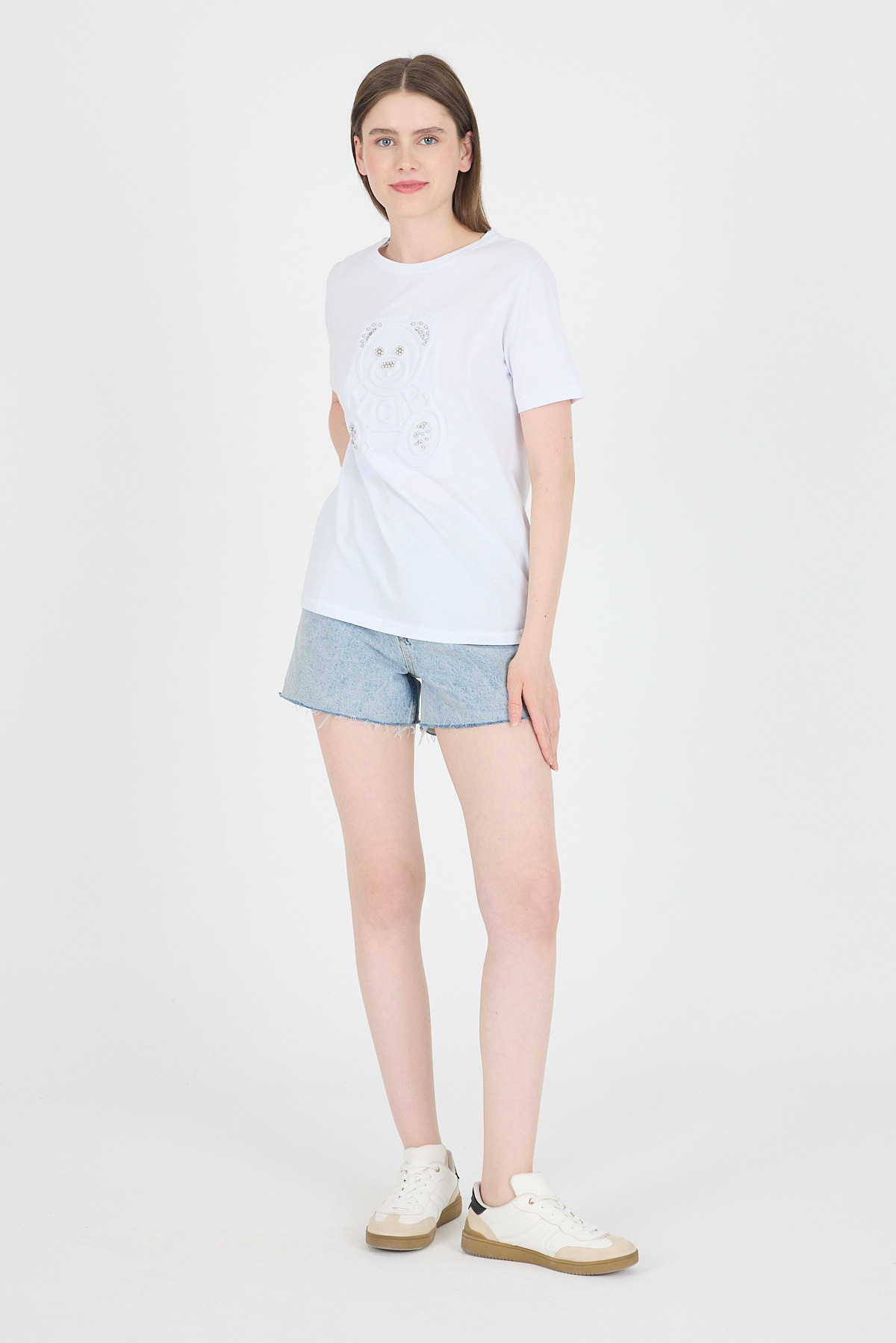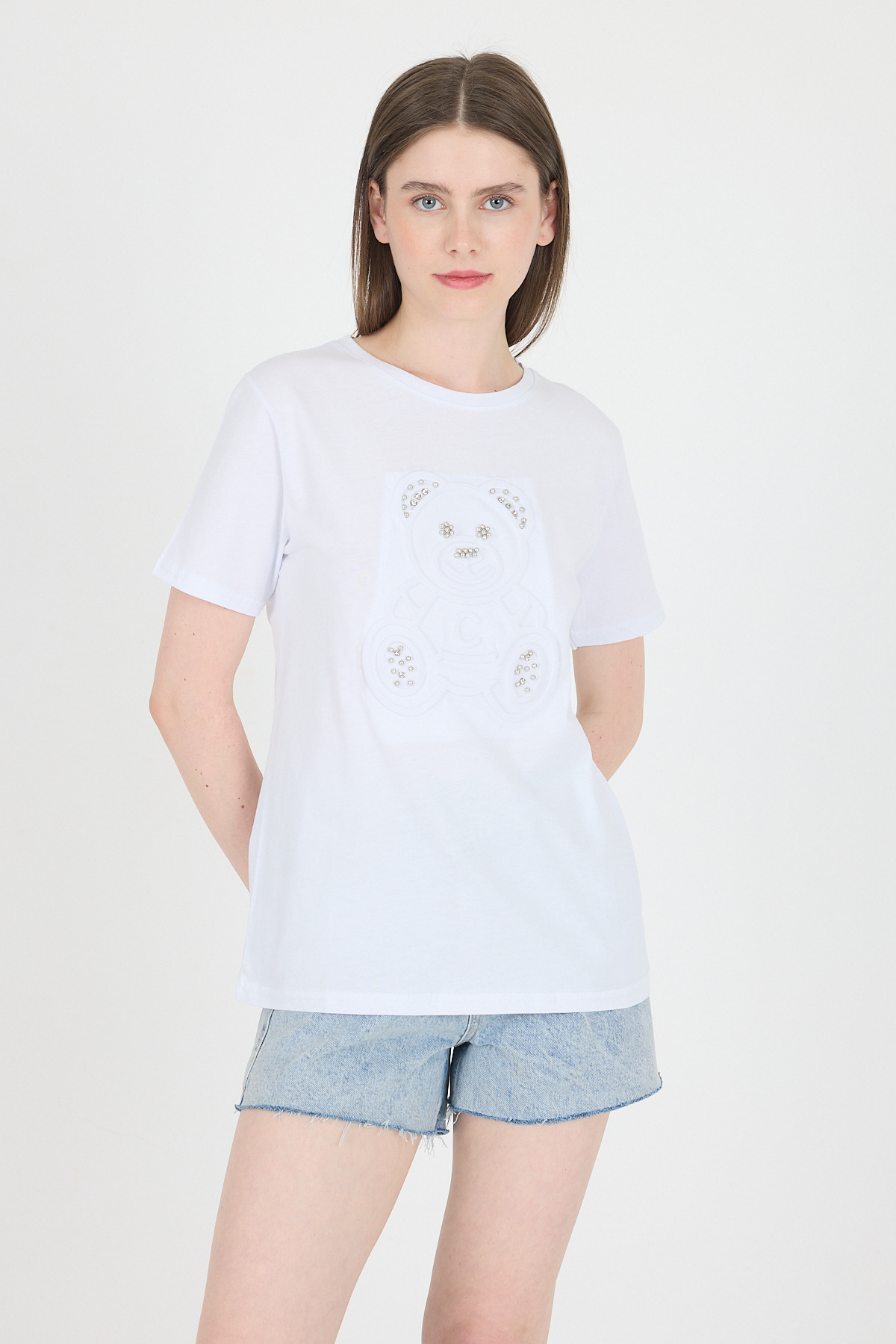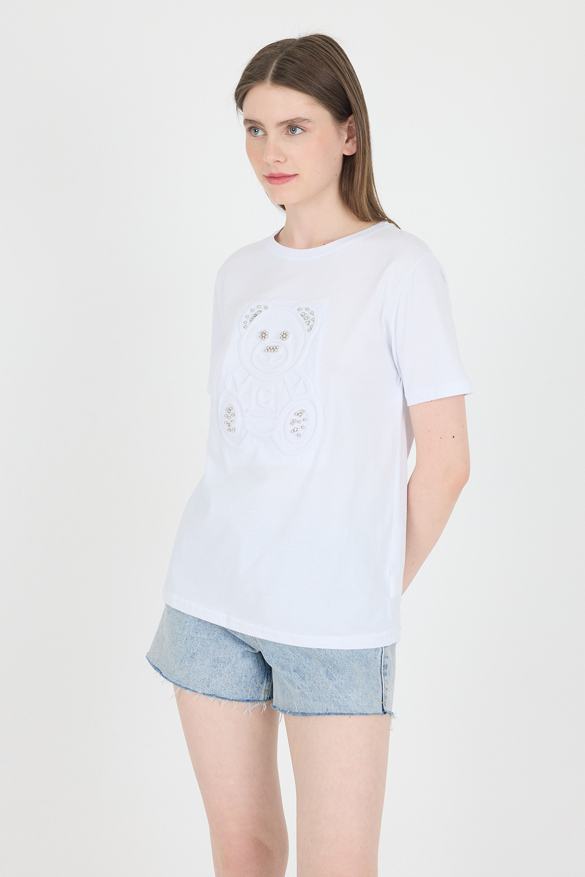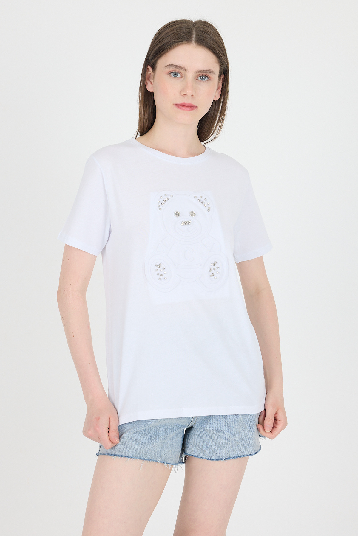 Beyaz Ayıcık Kabartmalı Tişört 25221