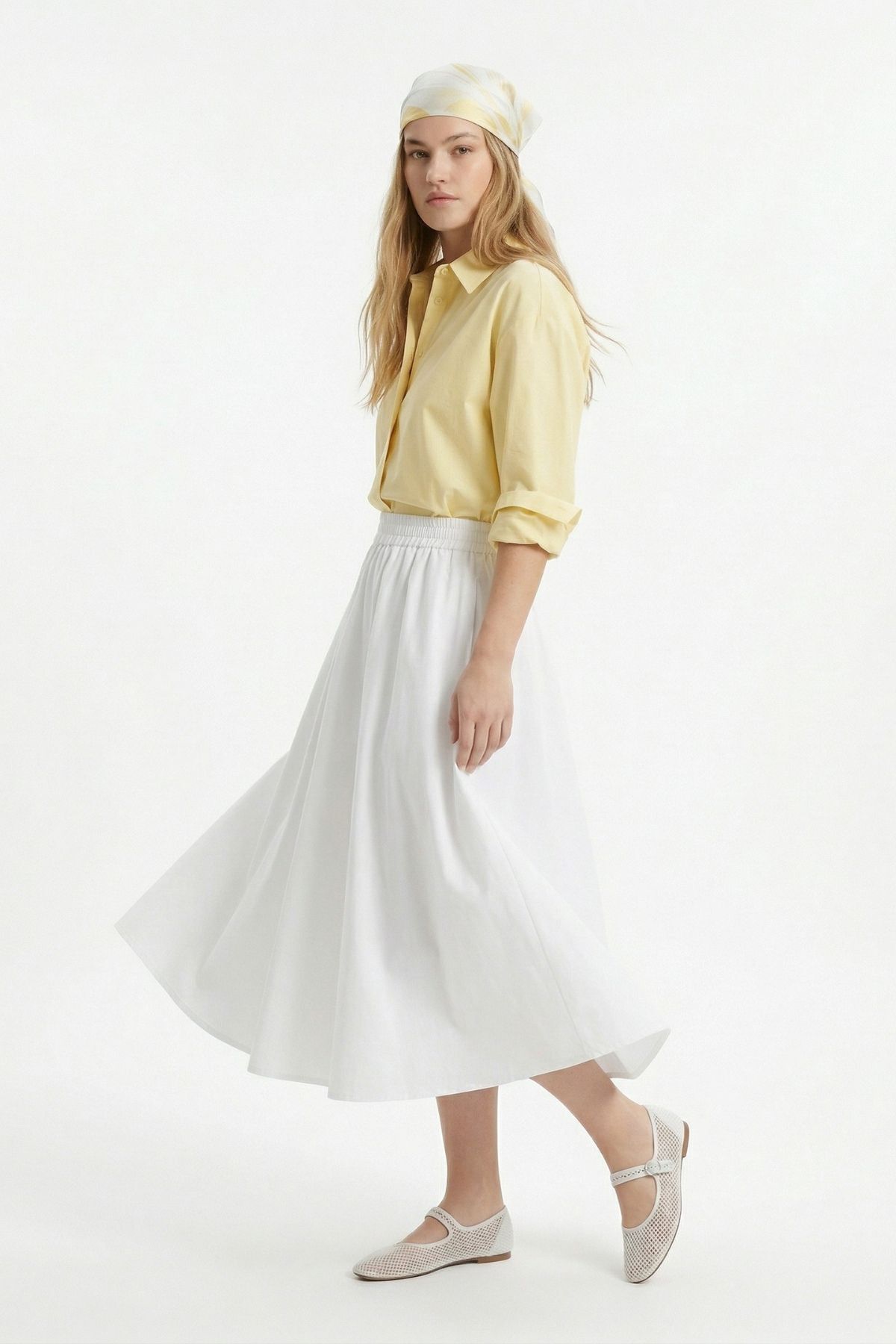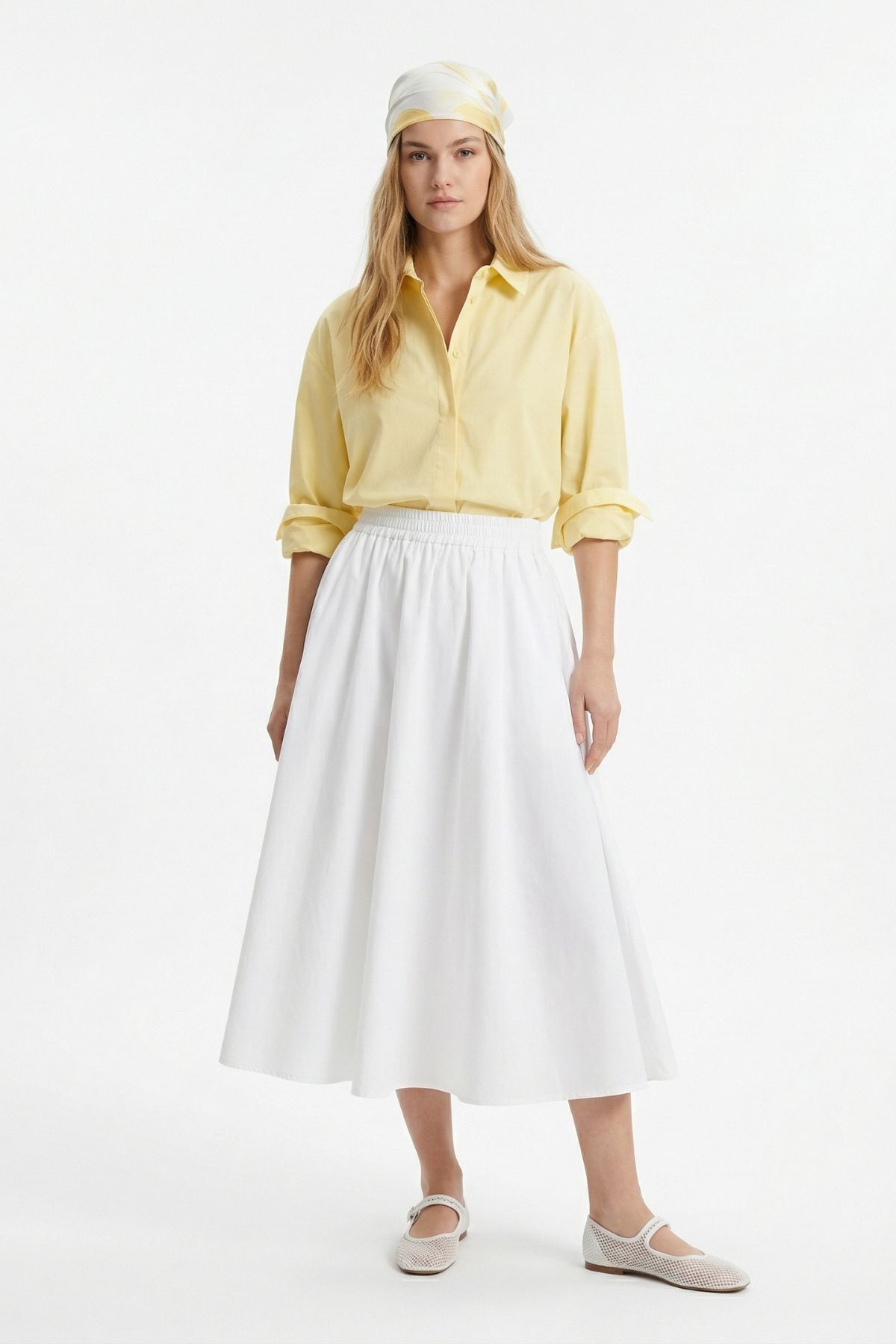 Beyaz Bel Lastik Cep Detay Etek 8457A