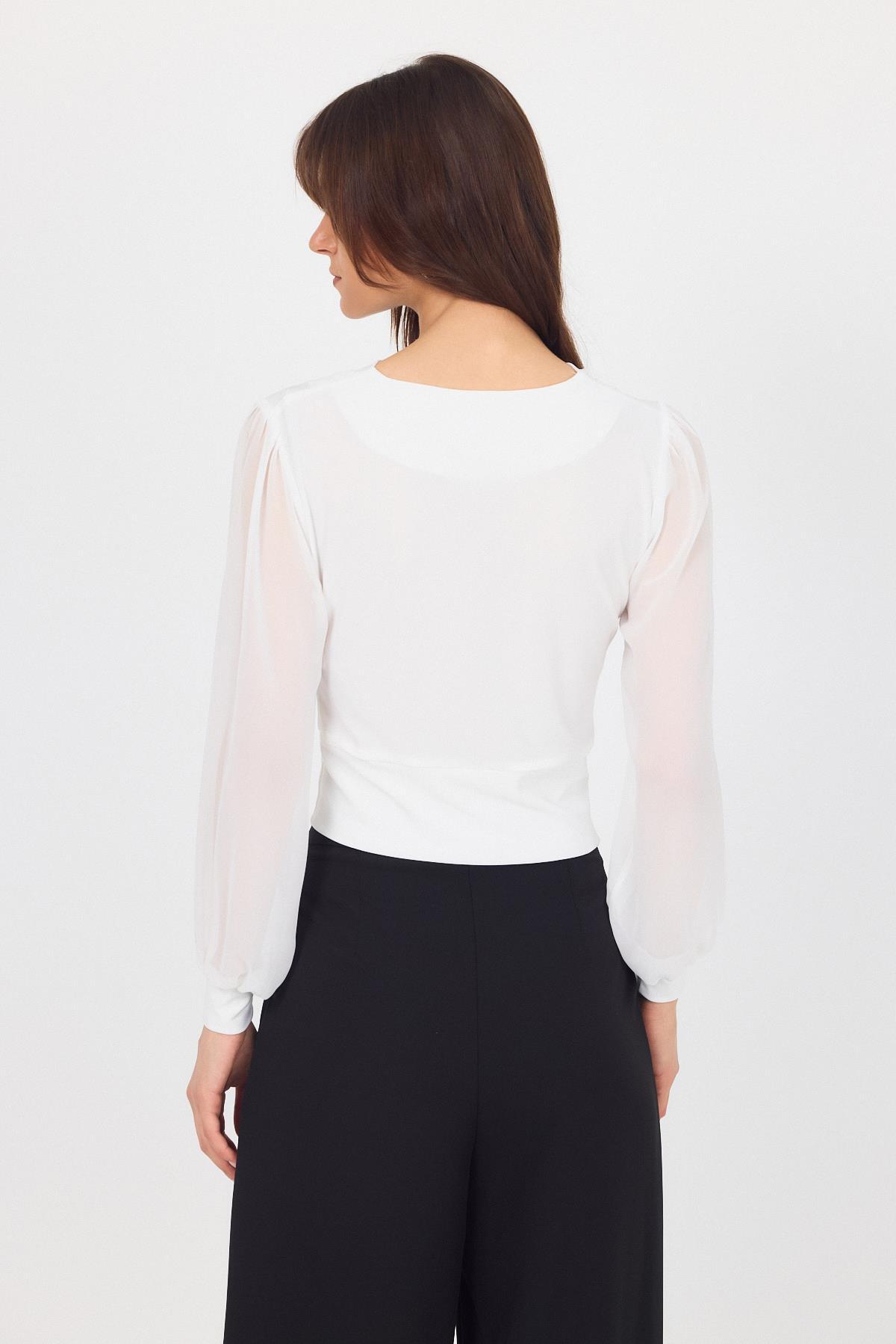 Beyaz Drapeli Tül Kol Detaylı Bluz 9474