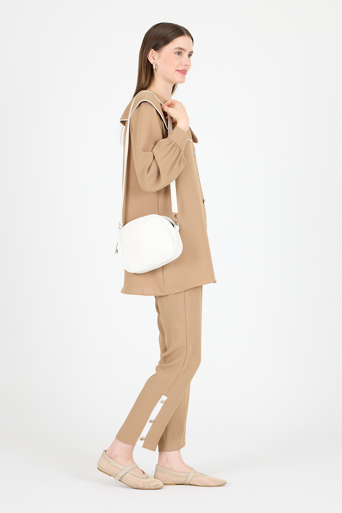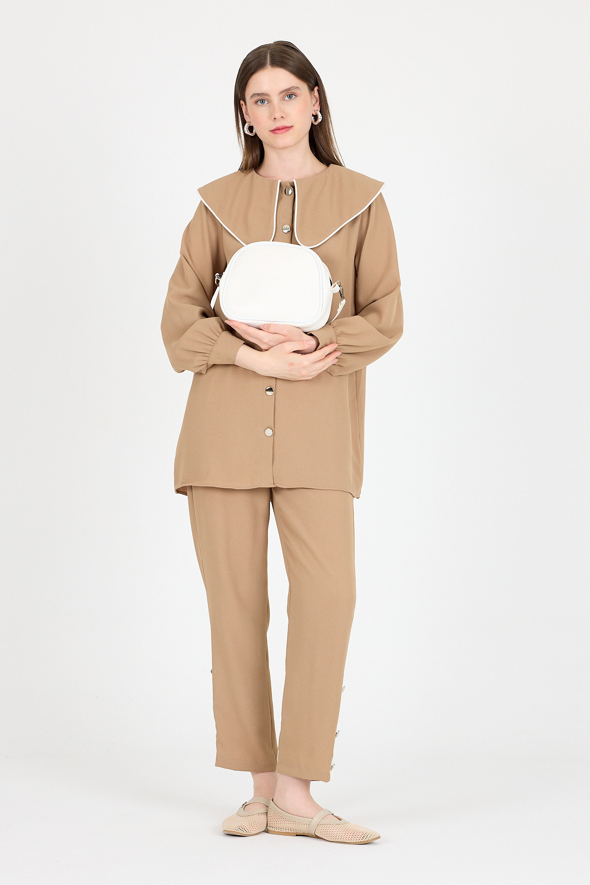 9229 Göz Detay Omuz Çantası Vizon