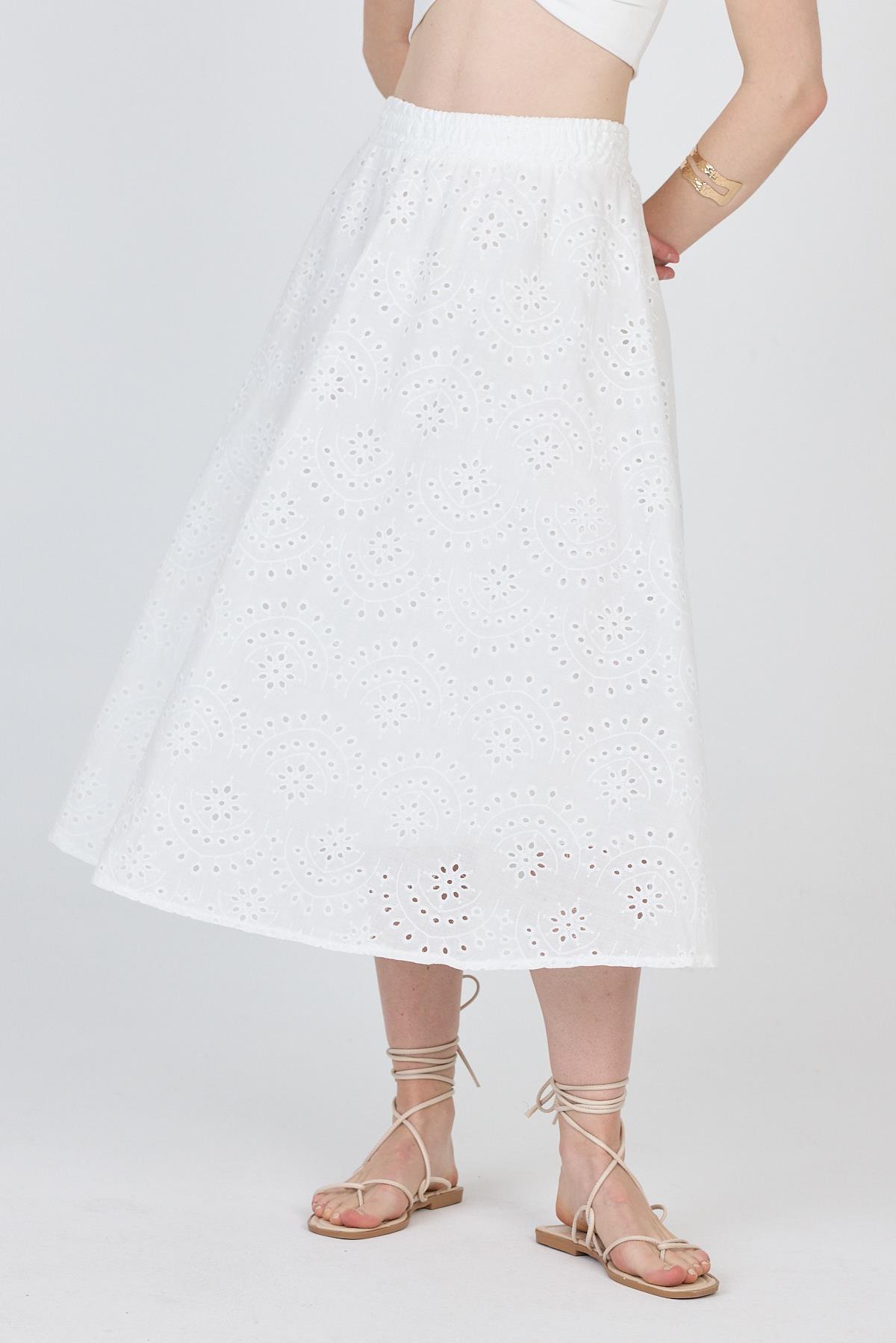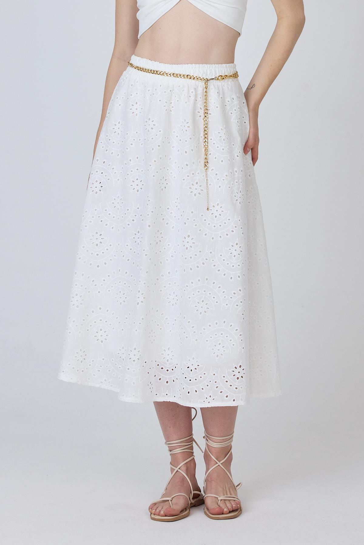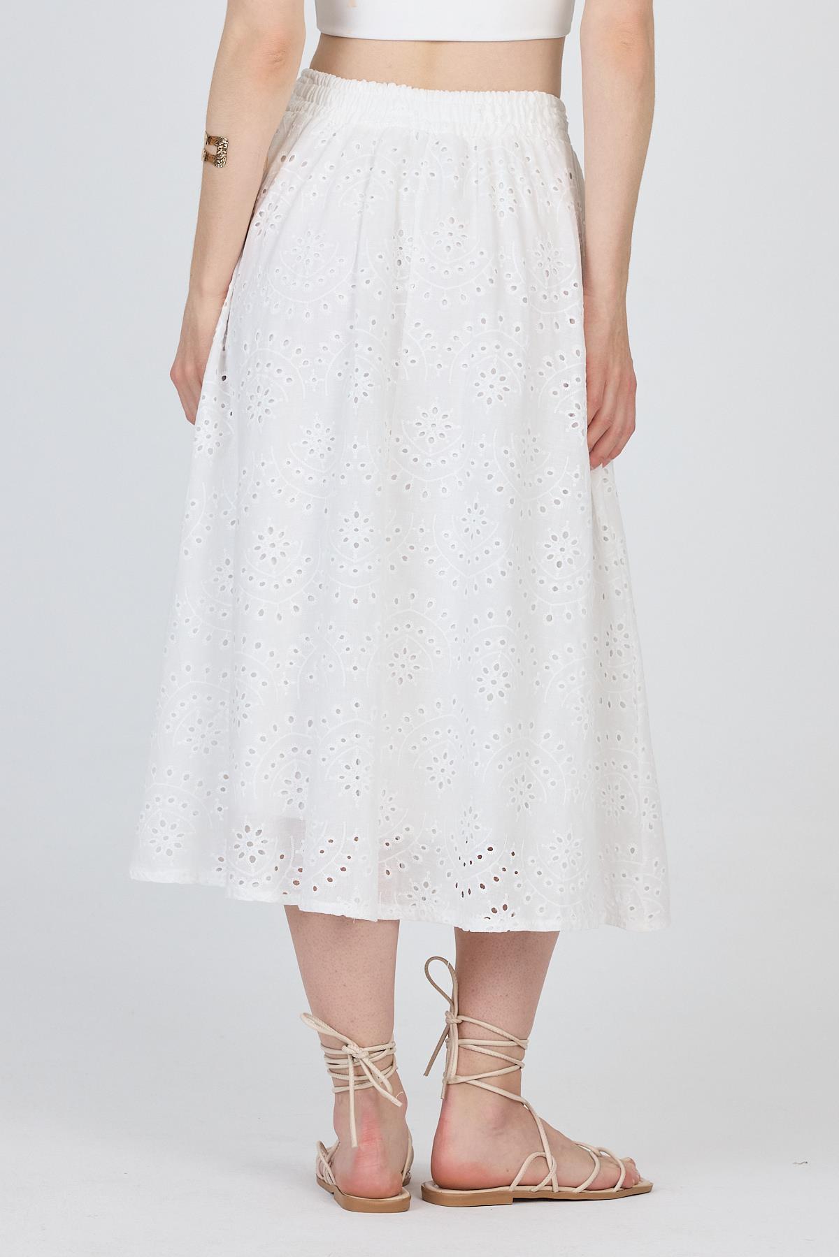 Beyaz Fisto Detaylı Midi Etek 4762A
