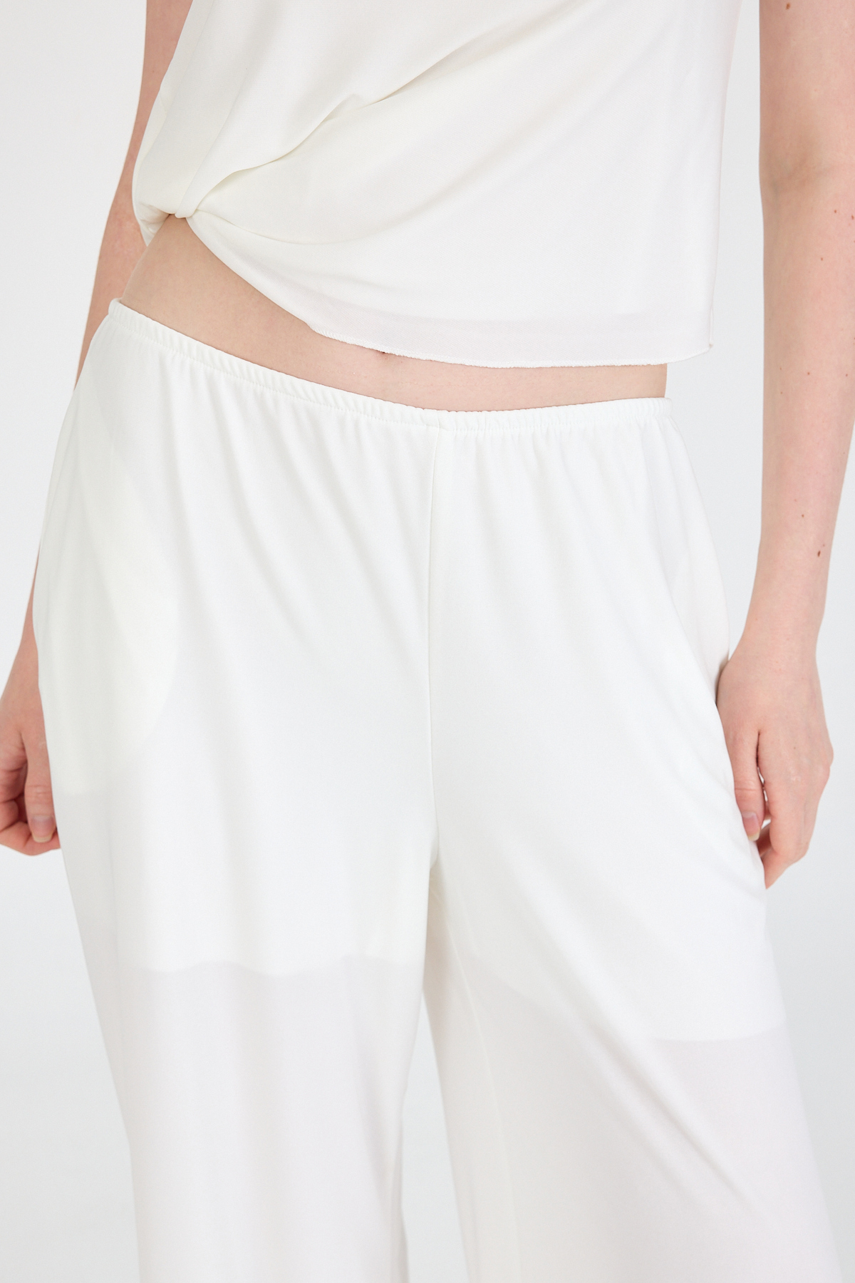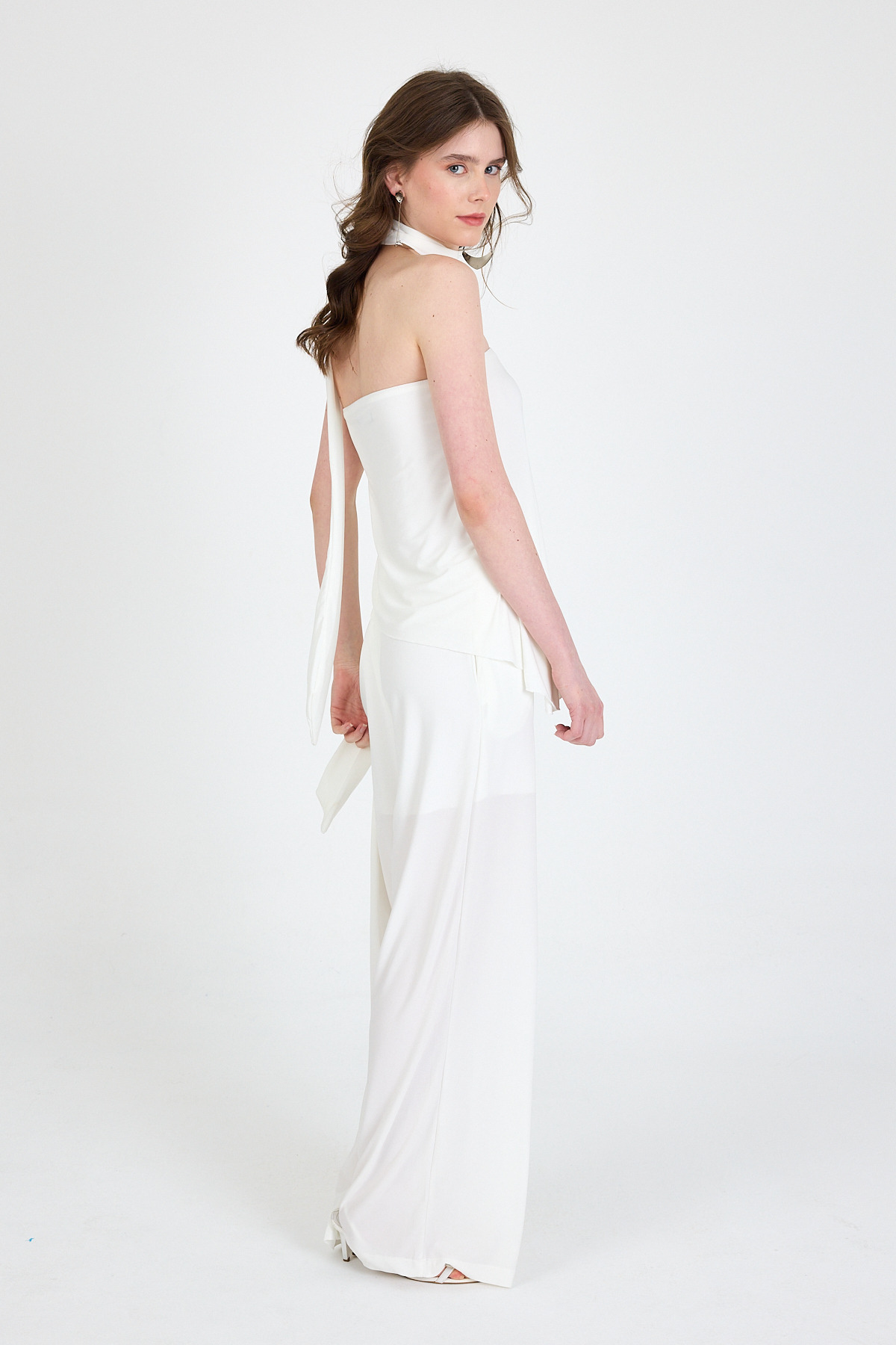 Beyaz Fularlı Pantolon Bluz İkili Takım 5224