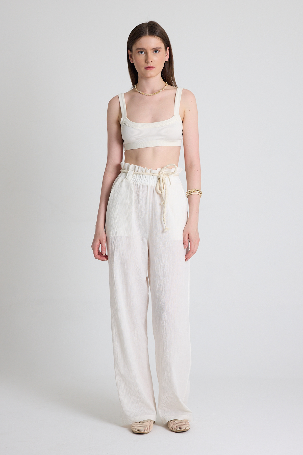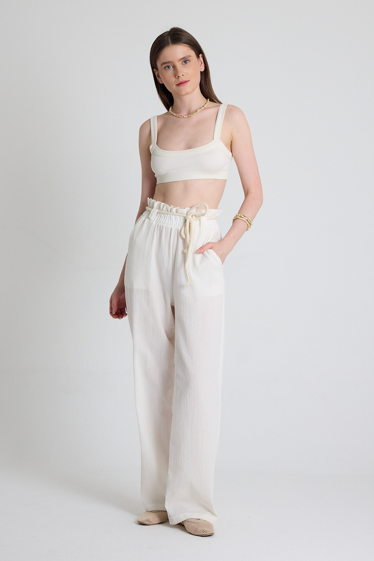 Beyaz Bağlamalı Palazzo Pantolon 3884 - RAYS