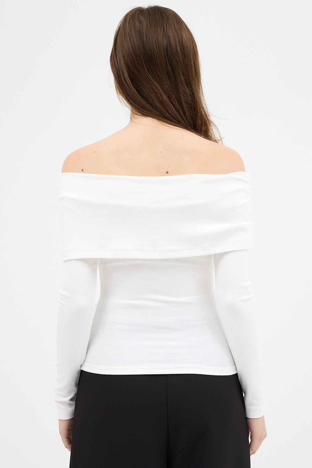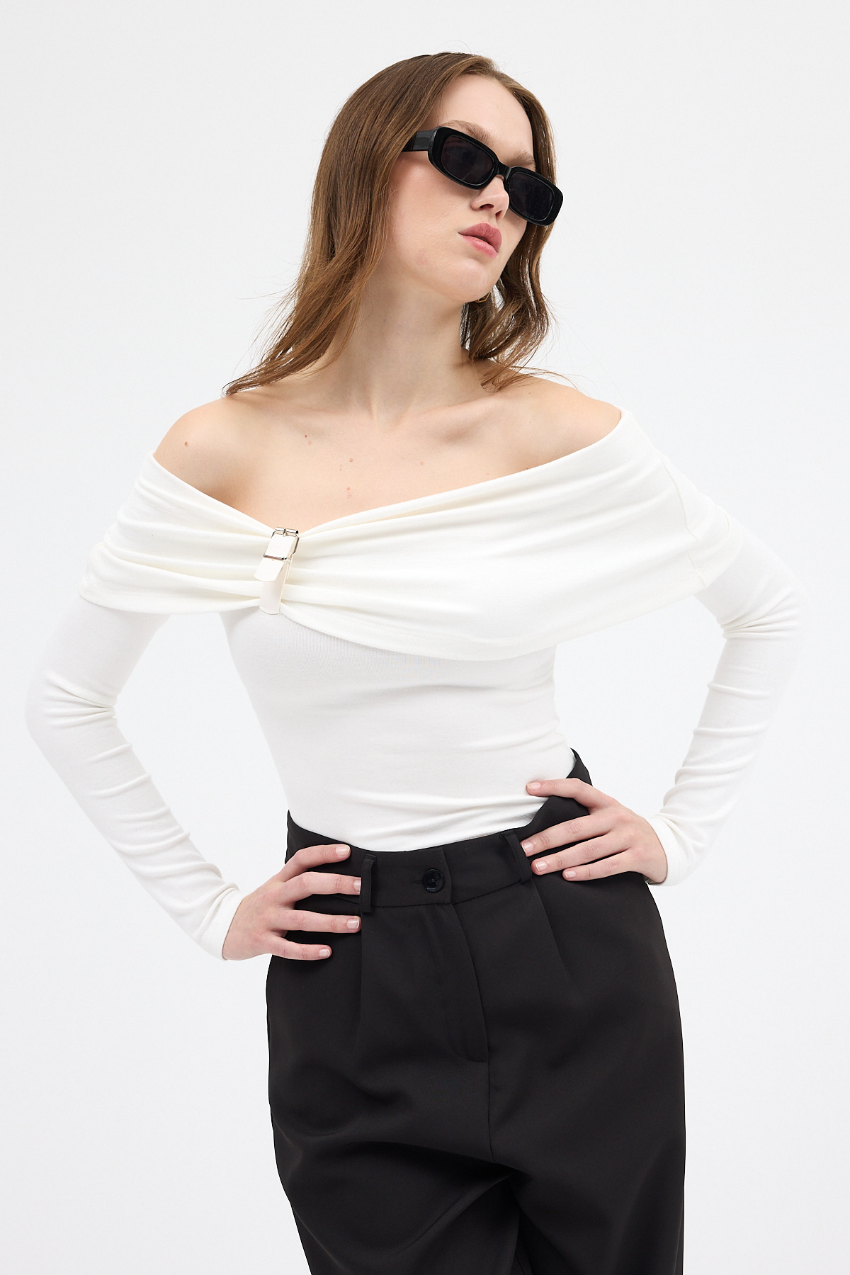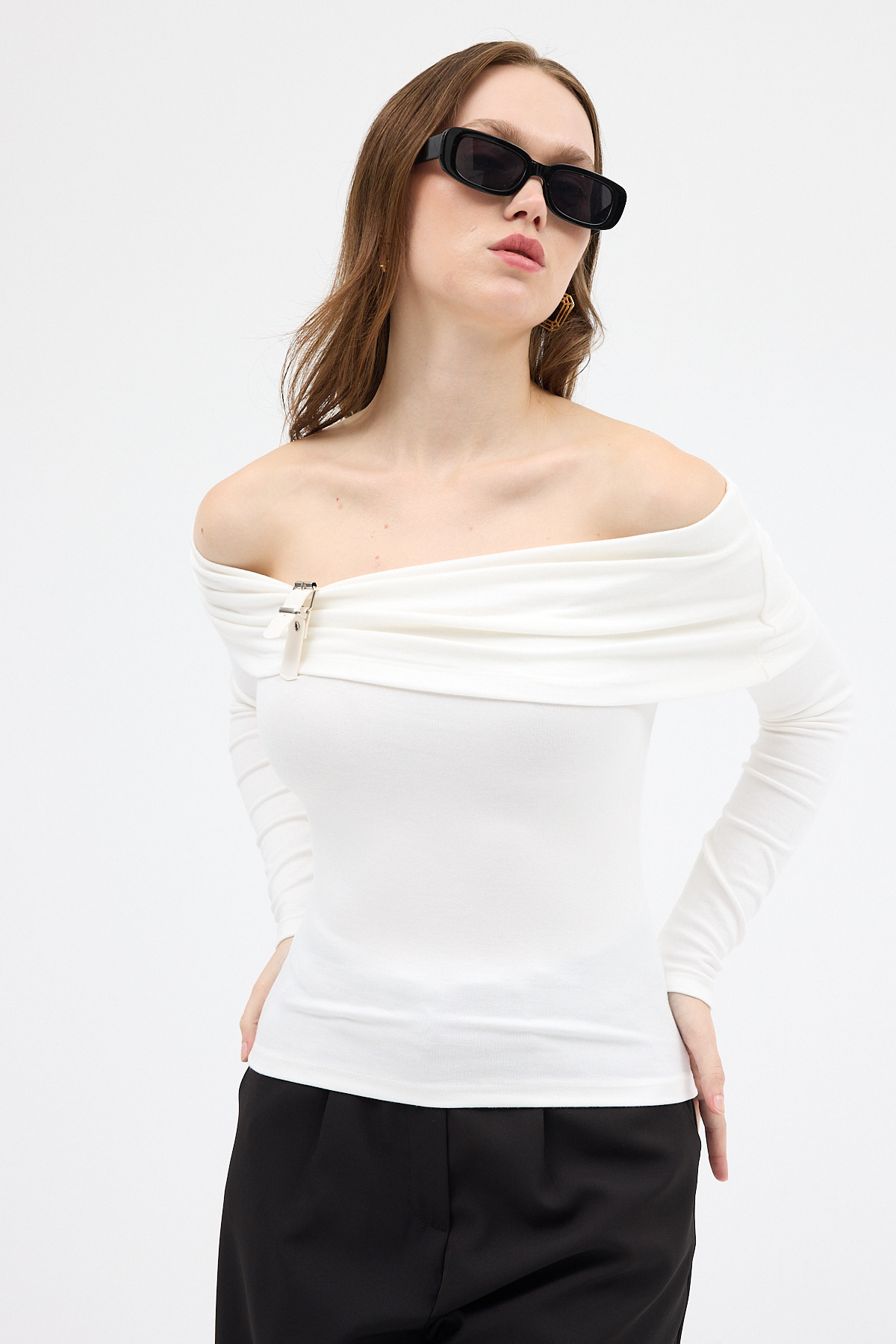 Beyaz Kayık Yaka Uzun Kollu Kadın Bluz 1465