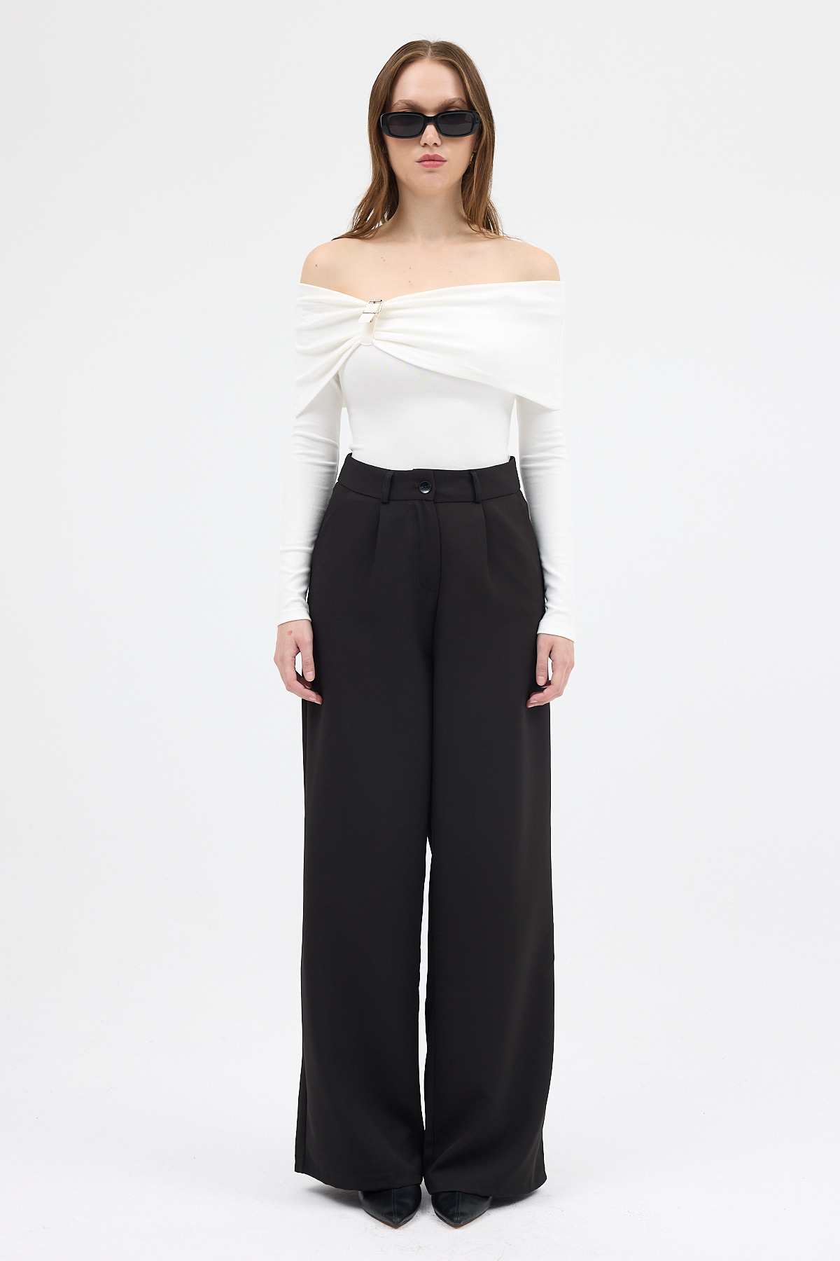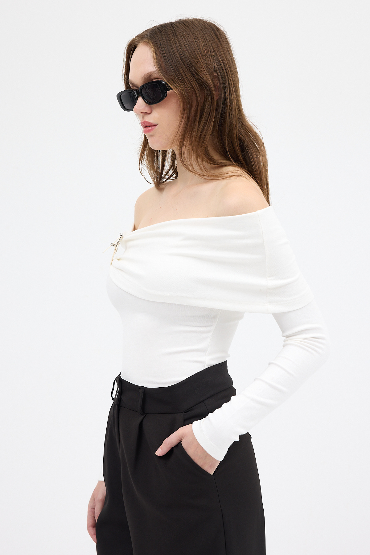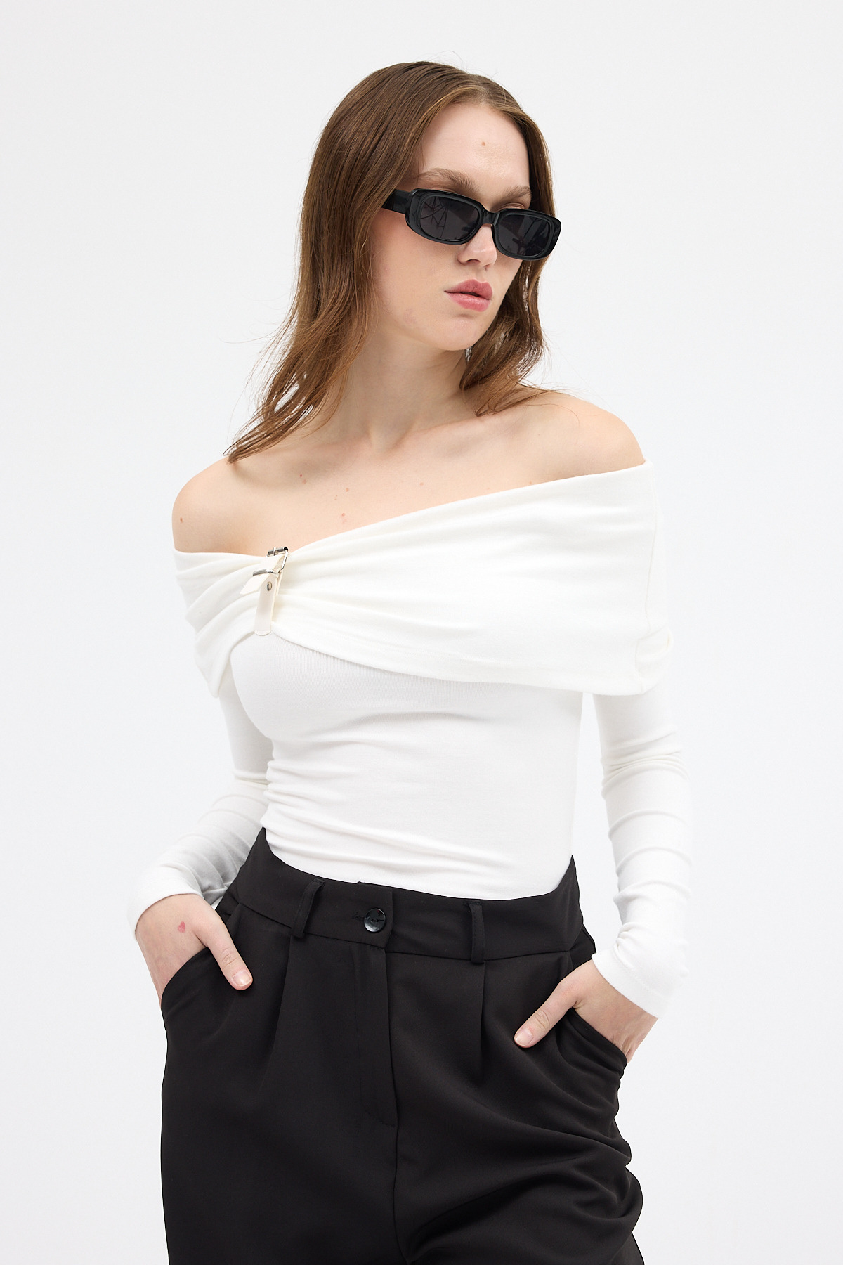 Beyaz Kayık Yaka Uzun Kollu Kadın Bluz 1465