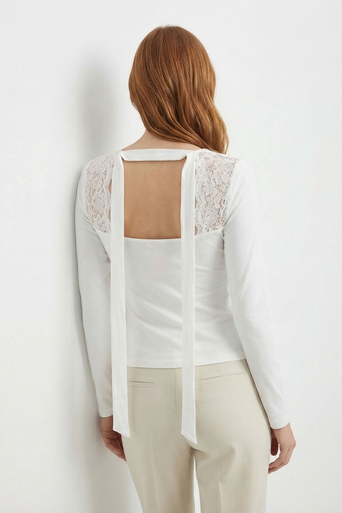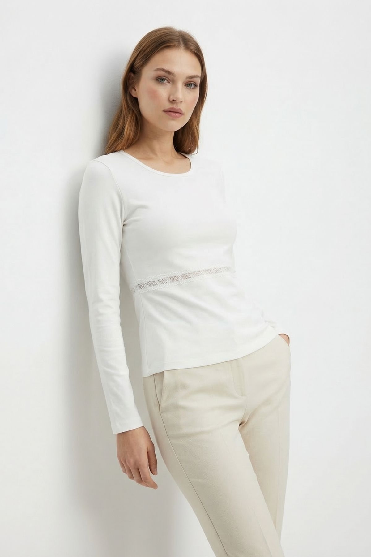 Beyaz Omuz Dantel Uzun Kol Bluz 14371