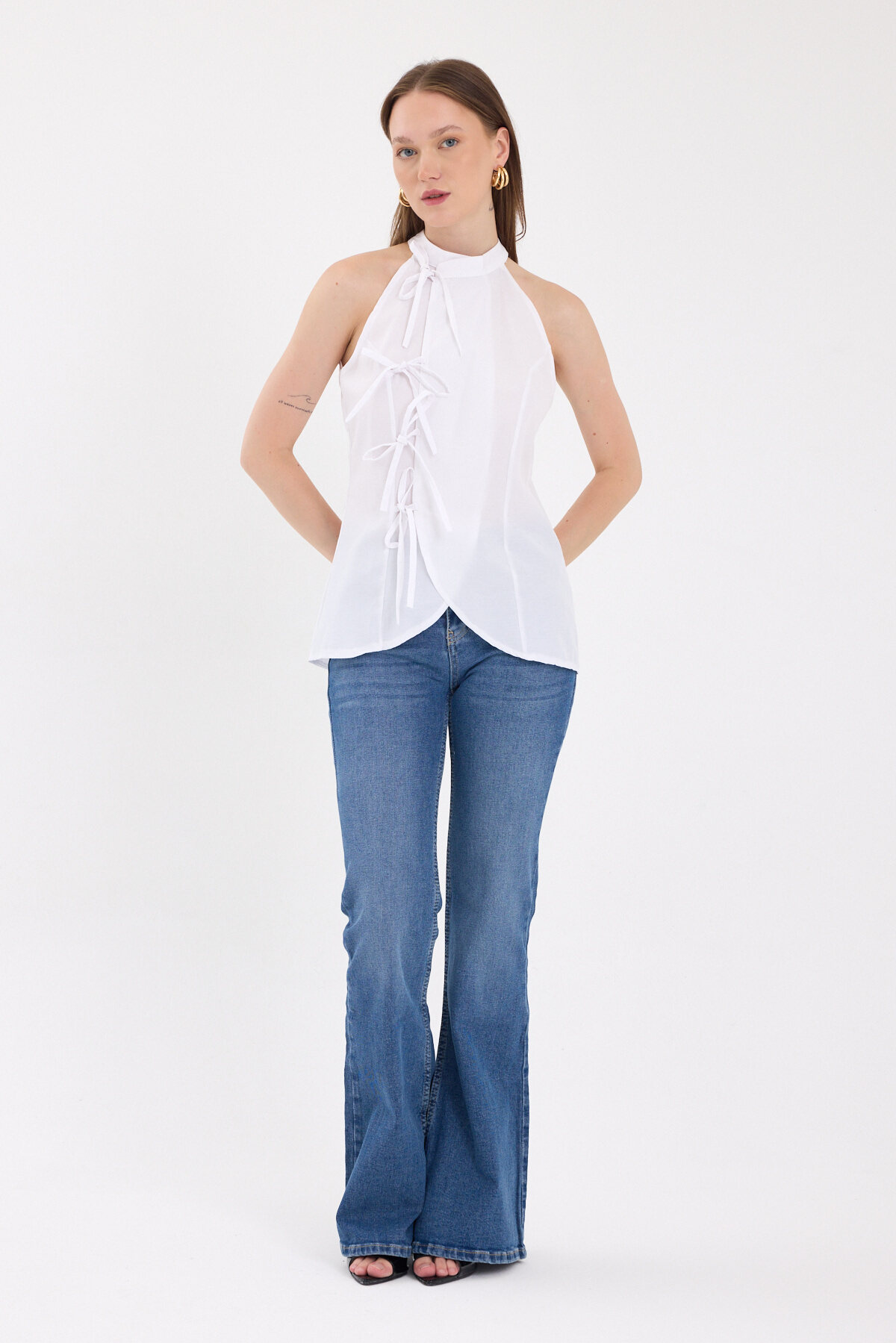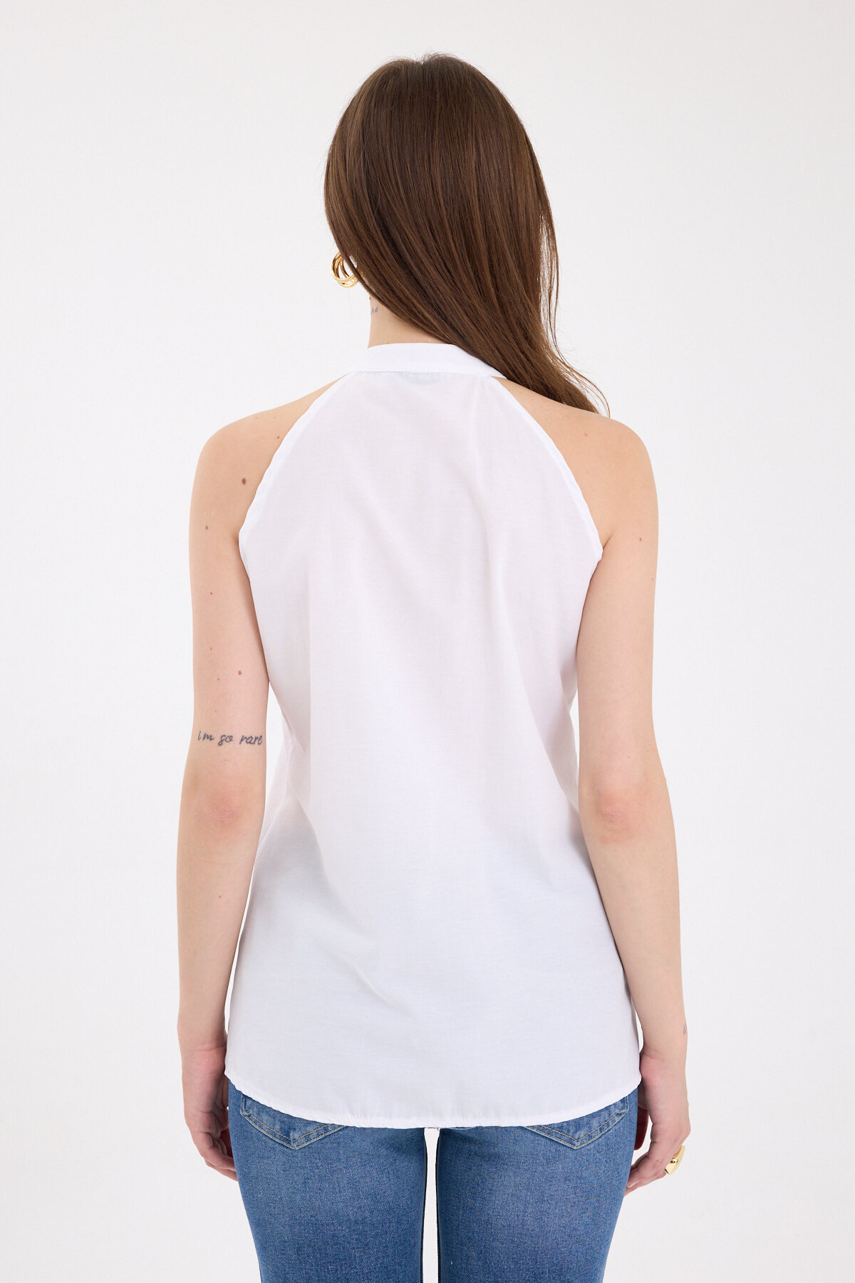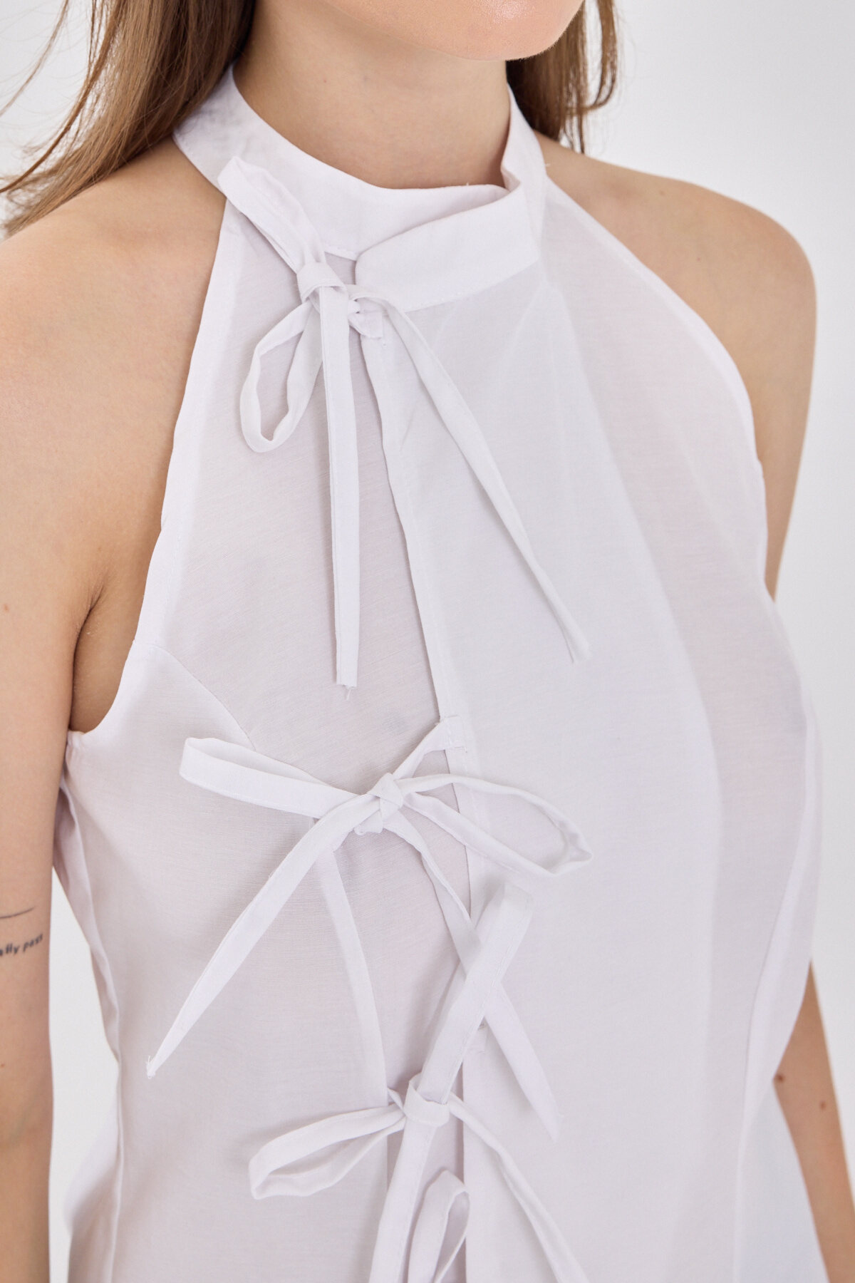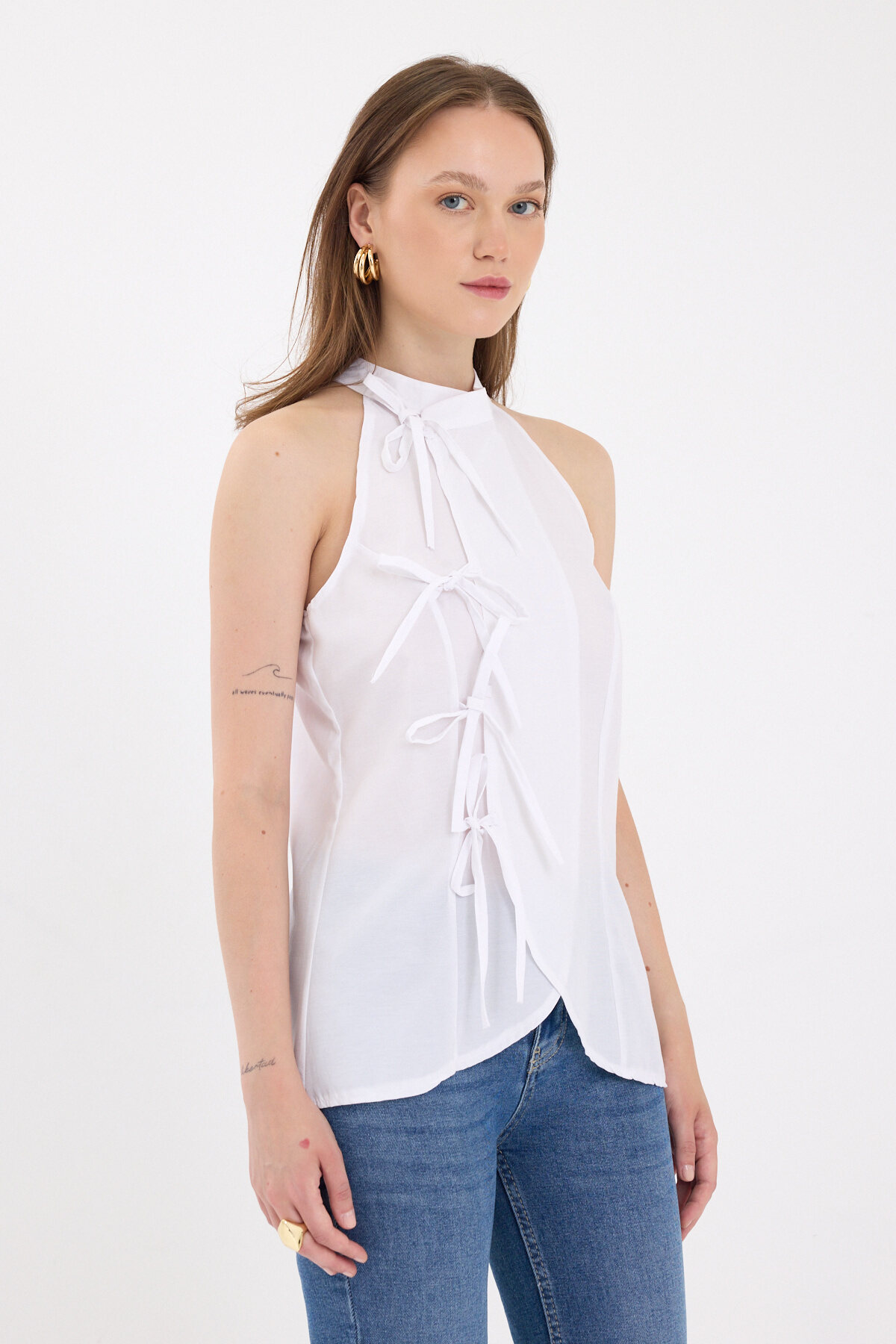 Beyaz Ön Bağlama Detaylı Halter Yaka Bluz 8094A