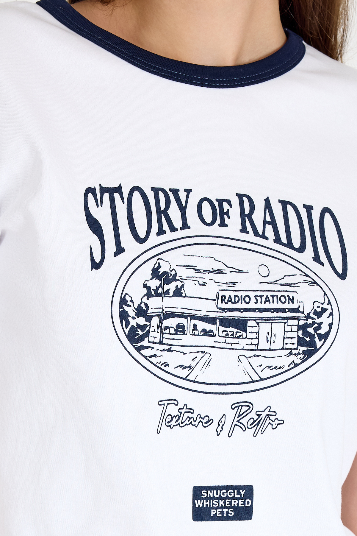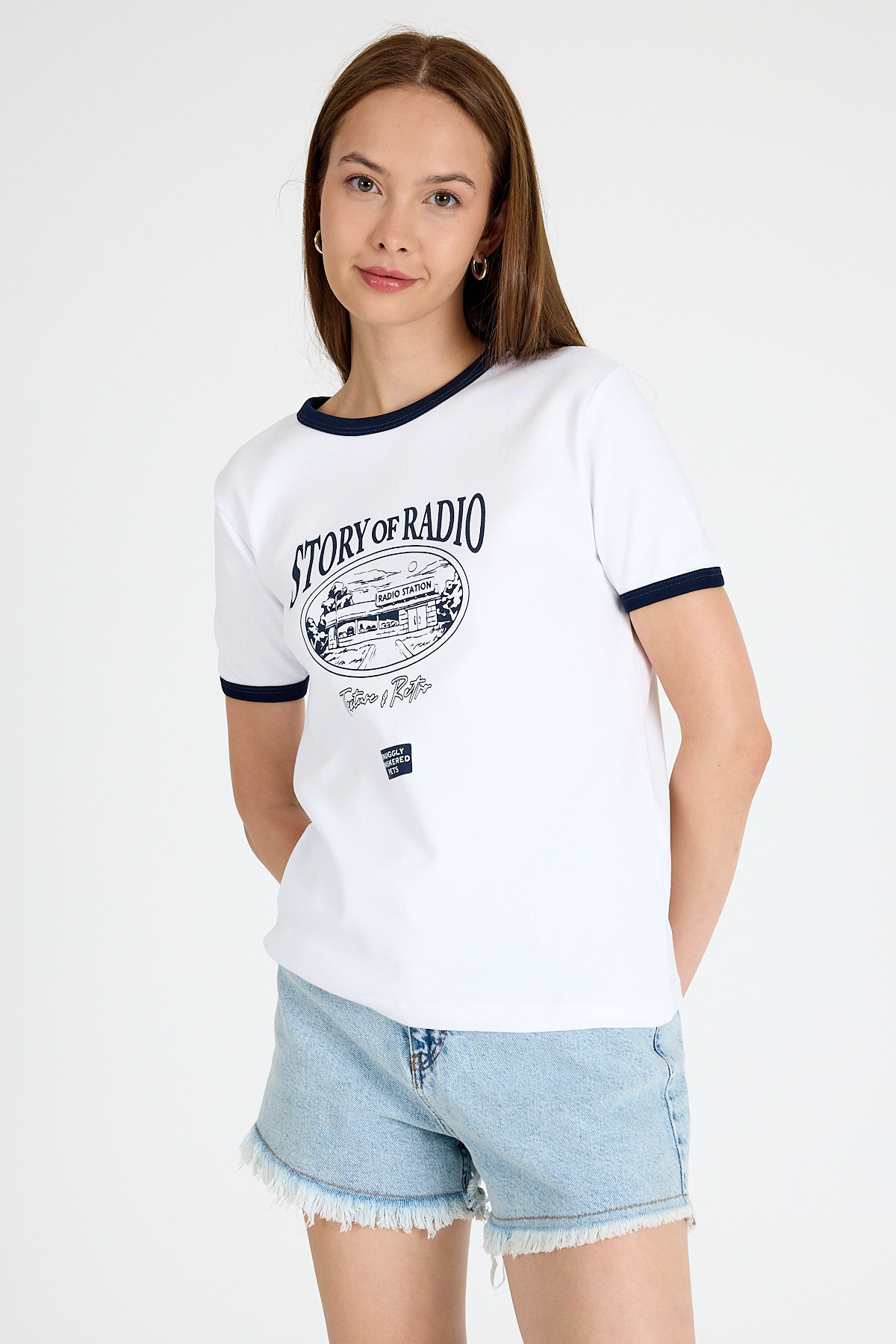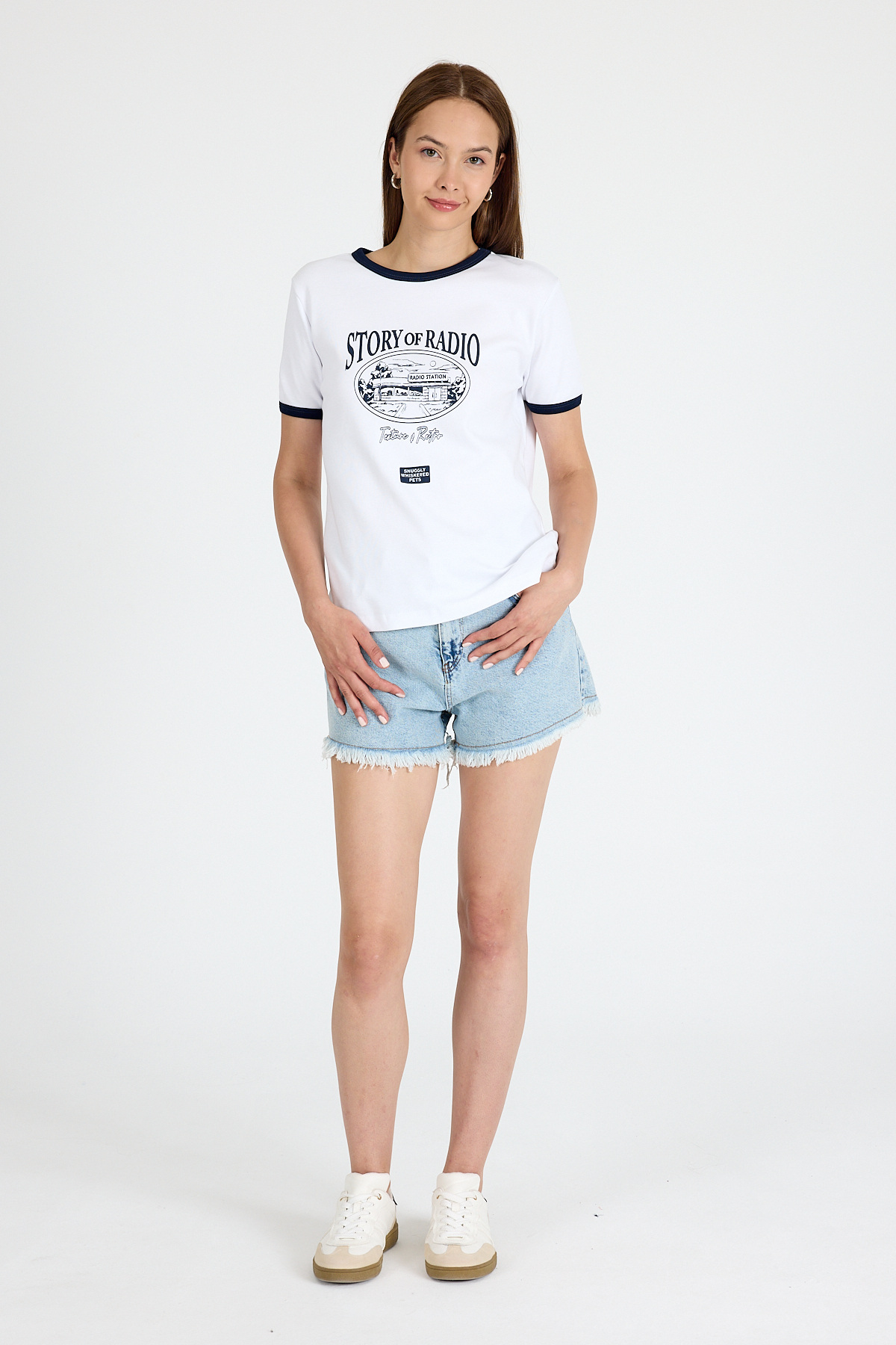 Beyaz Ribana Yaka ve Kol Detaylı Yazı Baskılı Tişört 5875