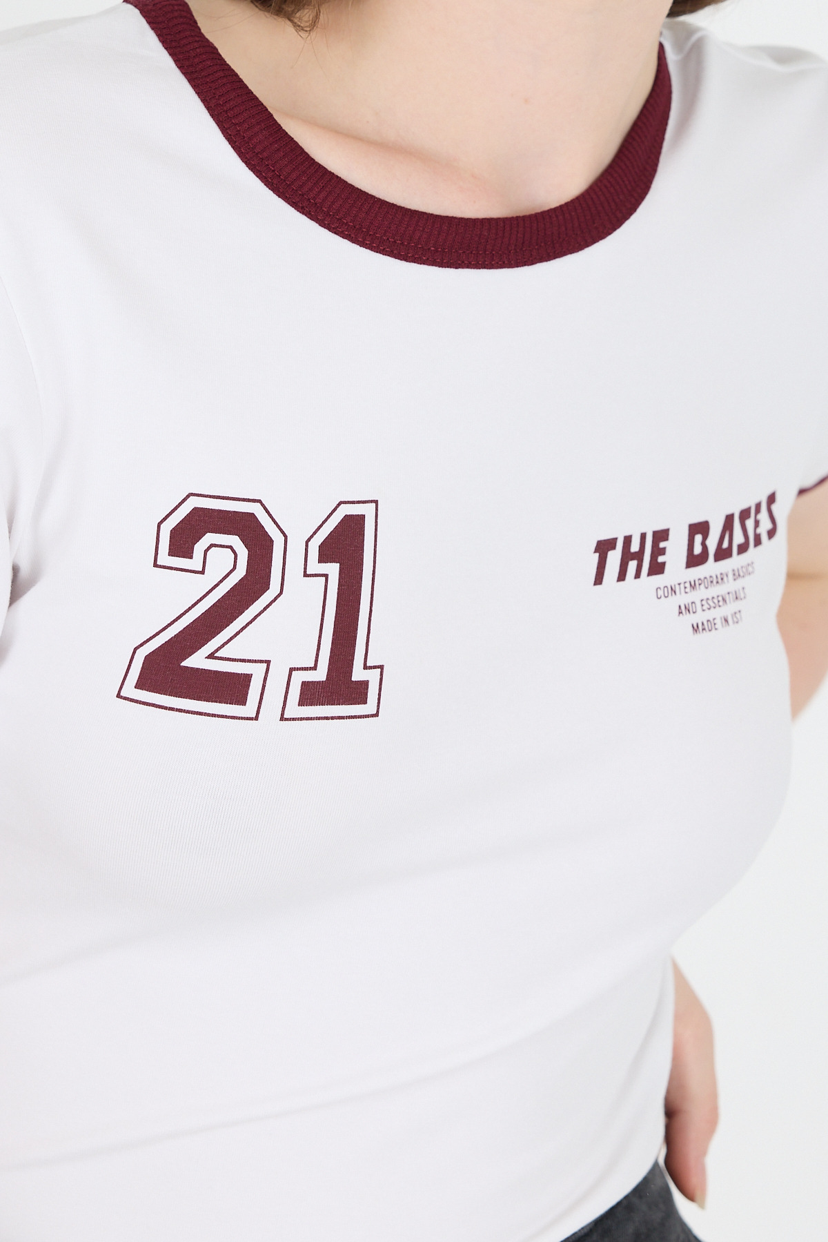 Beyaz Ribanalı Yazı Baskılı Slim Fit Tişört 5981