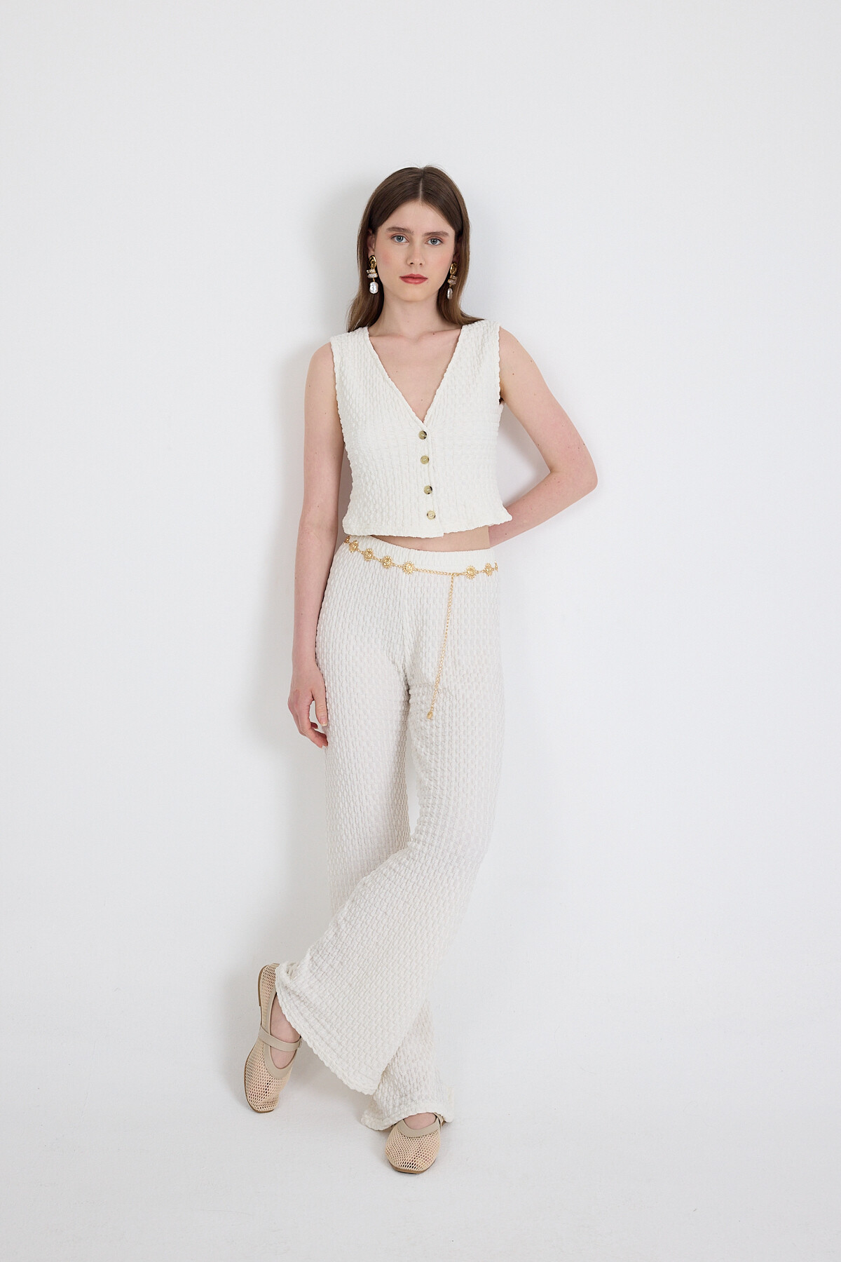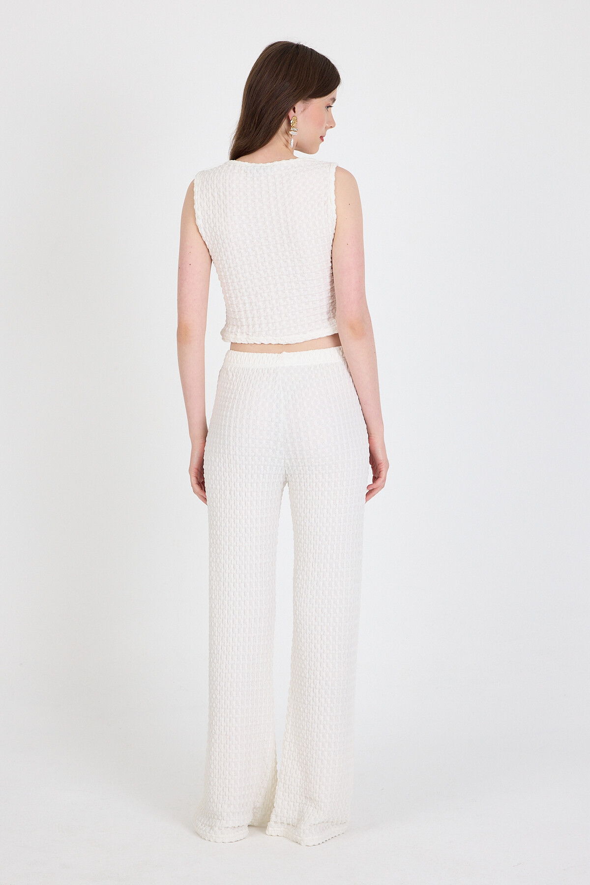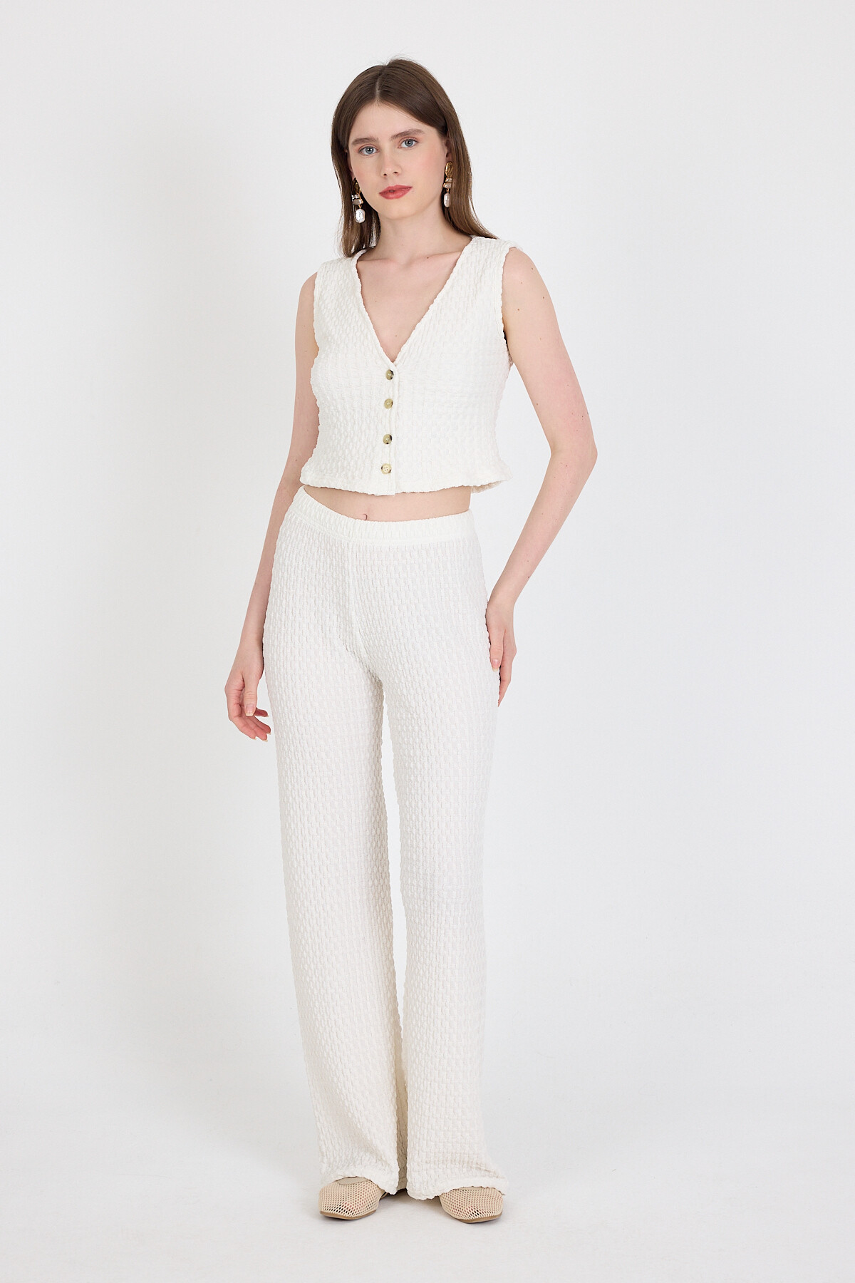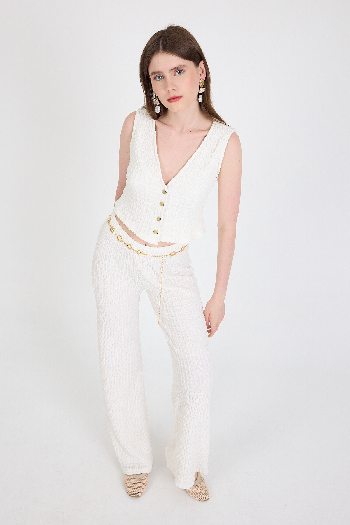 Beyaz V Yaka Yelek ve Pantolon Takımı 3000