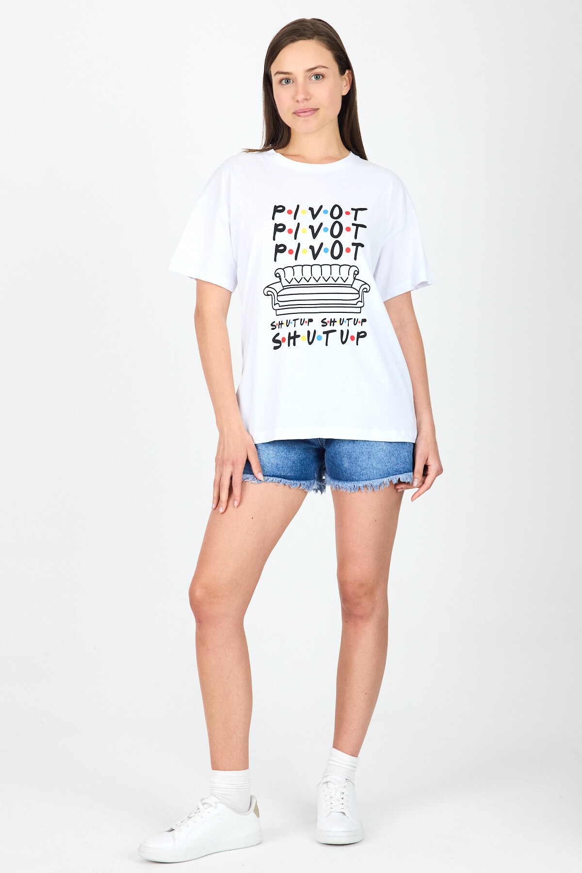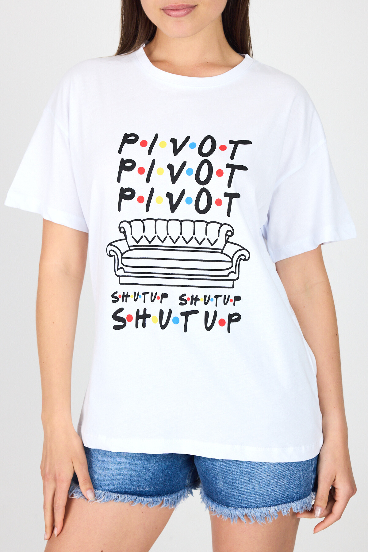 Beyaz Yazı Baskılı %100 Pamuk Oversize Tişört 2150-10M