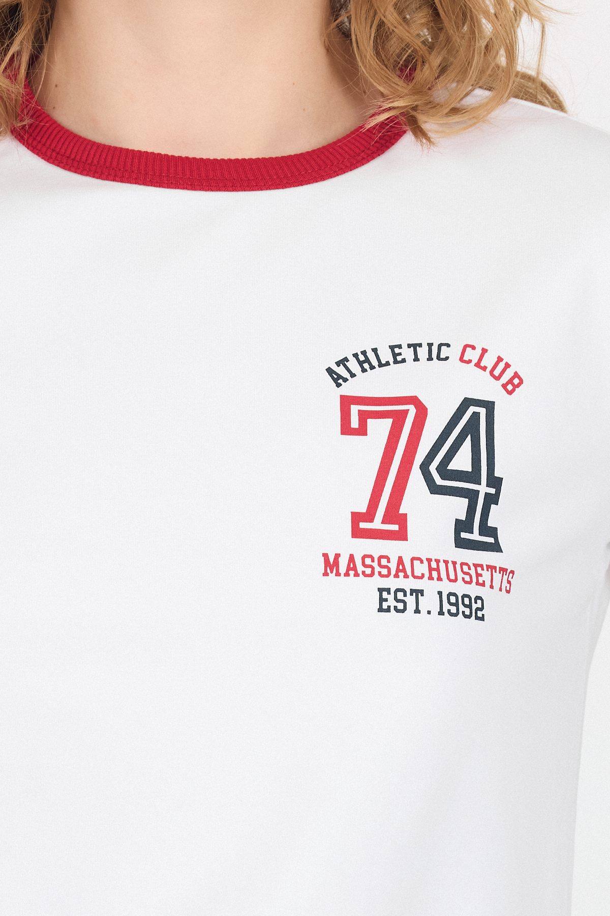 Beyaz Yazı Baskılı Regular Fit Ribana Detaylı Tişört 6325