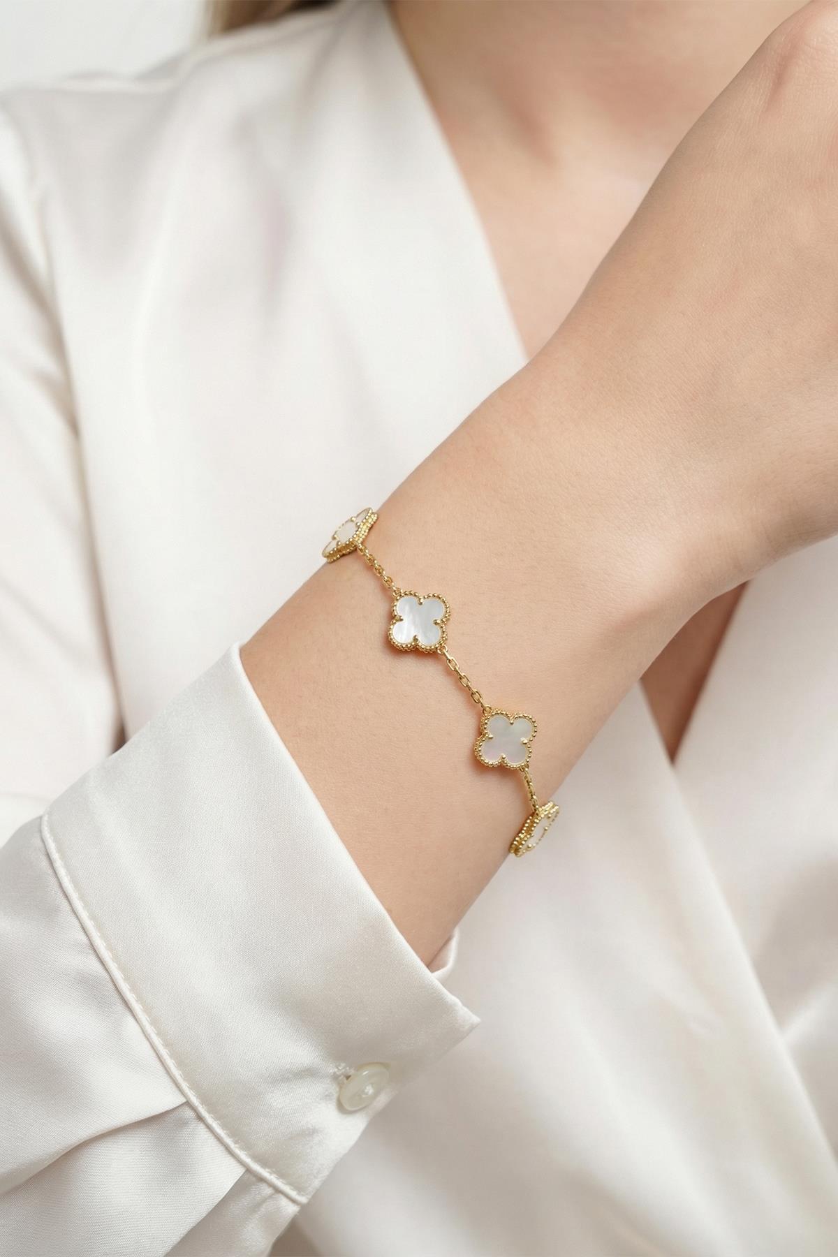 Beyaz Yonca Figürlü Gold Renk Bileklik 0127